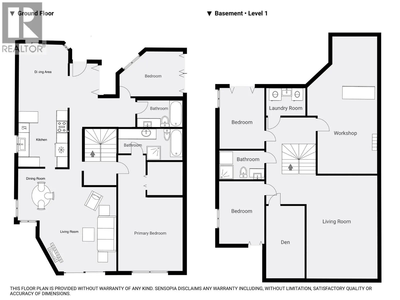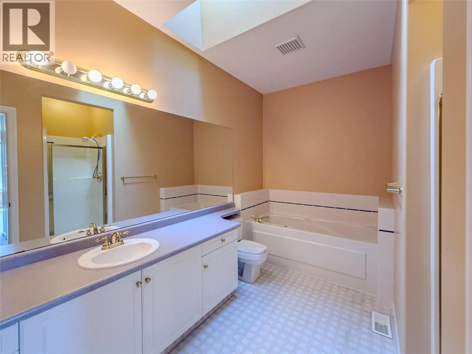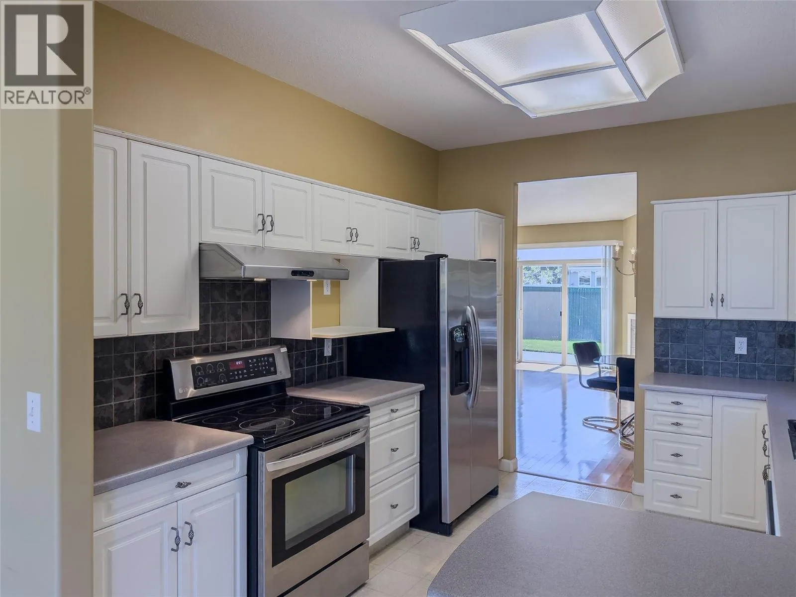 Located in the secure, well-maintained gated community of West Pine Villas in Westsyde, this rancher-style home with basement features 4 bedrooms plus a den, 3 bathrooms, and over 2,900 sq.ft. of living space. The complex borders the Dunes golf course, providing a serene setting with access to many amenities nearby including shopping, recreation and more. This home is designed for easy level-entry living, with all of your everyday essentials located on the main floor. The living room is highlighted by vaulted ceilings, genuine hardwood floors, a formal dining area, and direct access to a private patio framed by mature landscaping and mountain views. The kitchen includes stainless steel appliances and a breakfast nook, which opens to a second patio through sliding glass doors. On the main floor, youâll also find the spacious primary bedroom complete with walk-in closet and 4-piece ensuite, as well as a second bedroom / office and full bathroom. The fully finished basement has a family/media room, two additional bedrooms, a den or storage space, 3-piece bathroom, laundry, and a utility/workshop area. Additional features include a semi-detached double garage with a workshop space, plus room for two more vehicles in the driveway. Central A/C, pets allowed (one dog and one cat) and a strata fee of $458.26/month. Quick possession possible! Buyer to verify all listing details and measurements if deemed important. (id:27476)