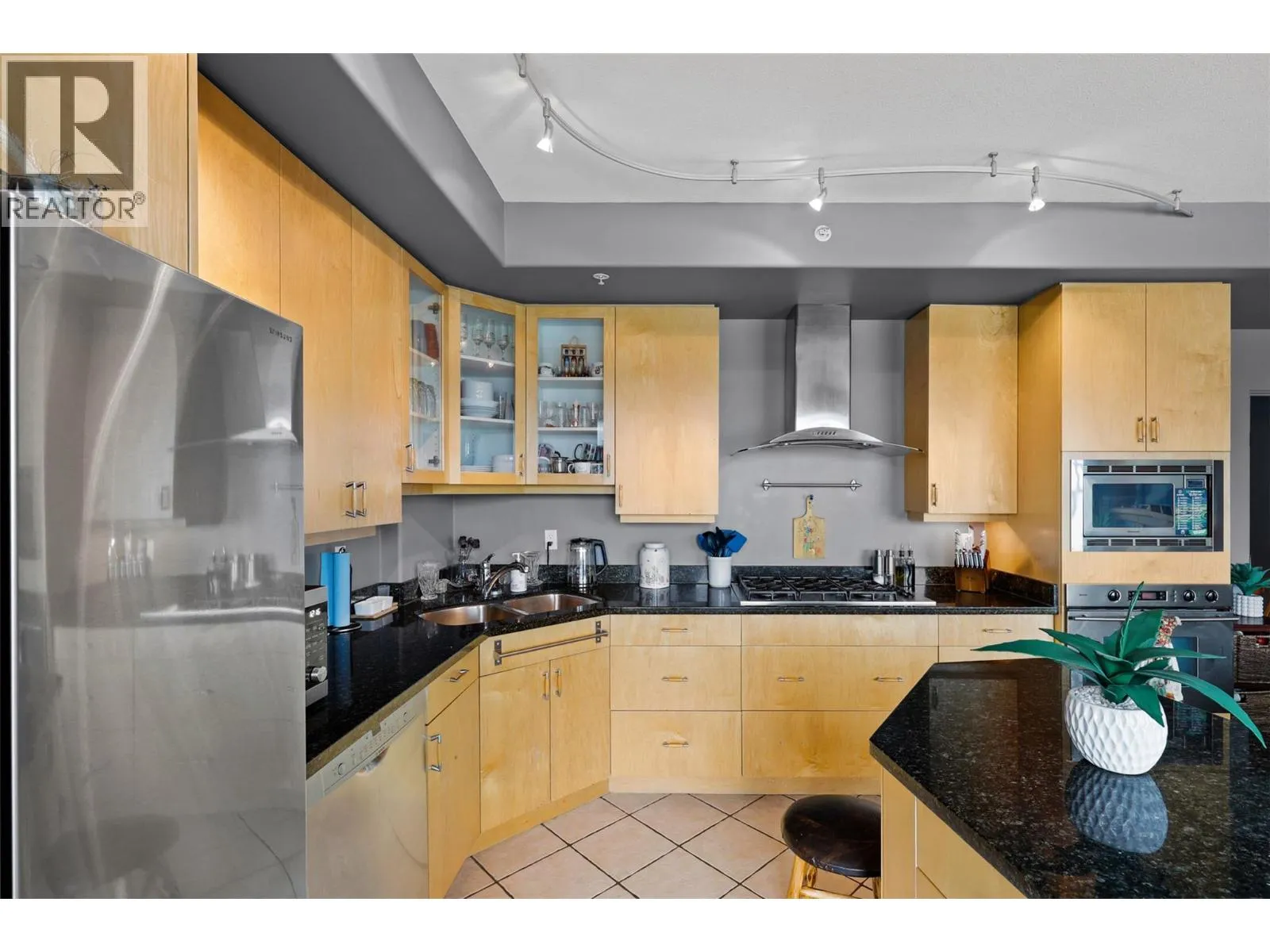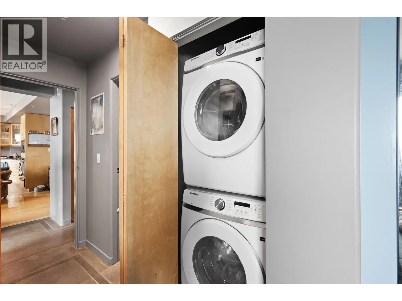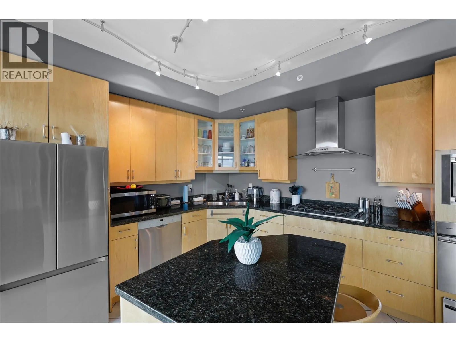 Perched on the 9th floor of the sought-after Victoria Landing, this spacious 2-bedroom, 2-bathroom condo offers stunning north-facing views and two private decks to take it all in. Located in the heart of downtown, youâre just steps from shops, restaurants, transit, and everything the city has to offer. Inside, you'll find a thoughtfully designed layout with an intimate-style dining room and a cozy living area featuring a gas fireplace and custom built-in shelving. The kitchen is both stylish and functional, with granite countertops, an undermount sink, and stainless steel appliancesâperfect for cooking or entertaining. The primary bedroom includes built-in cabinetry in the closet, offering sleek and practical storage. A second bedroom and full bathroom provide flexibility for guests or a home office setup. Enjoy the convenience of secure underground parking. With comfortable living spaces, modern finishes, and unbeatable access to downtown amenities, this home is the perfect blend of lifestyle and location. All meas are approx, buyer to confirm if important. (id:27476)