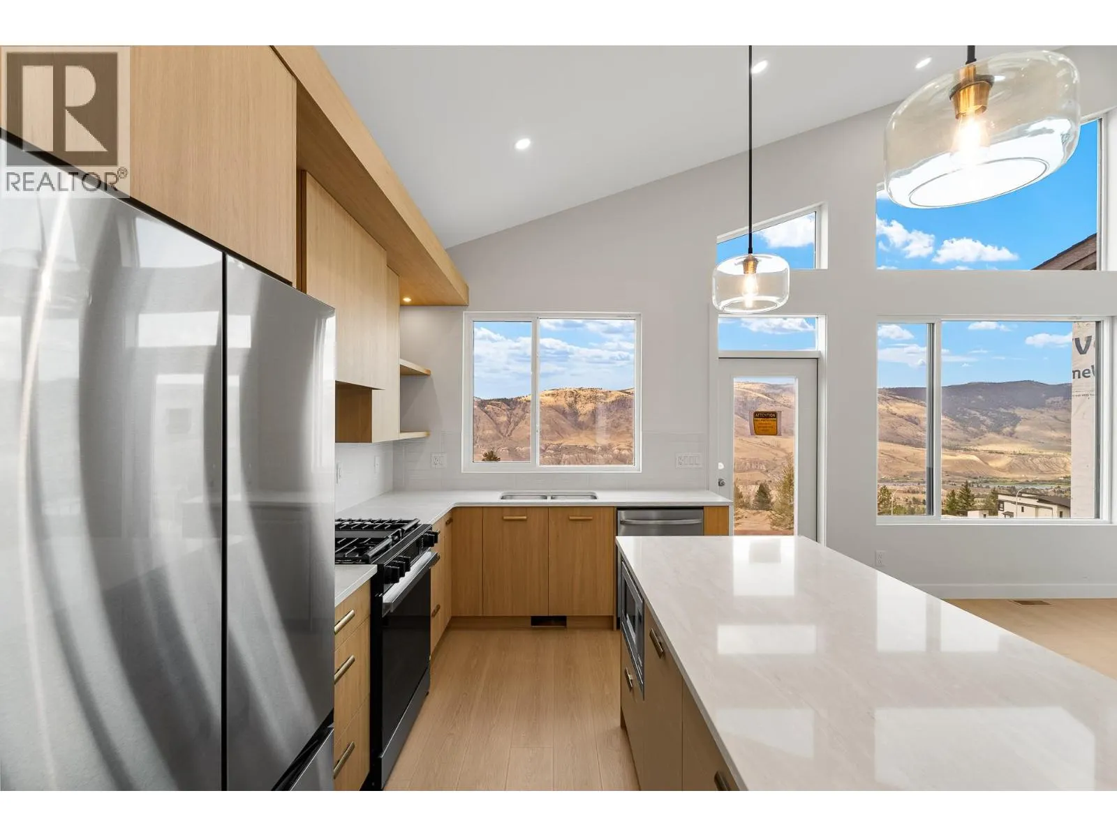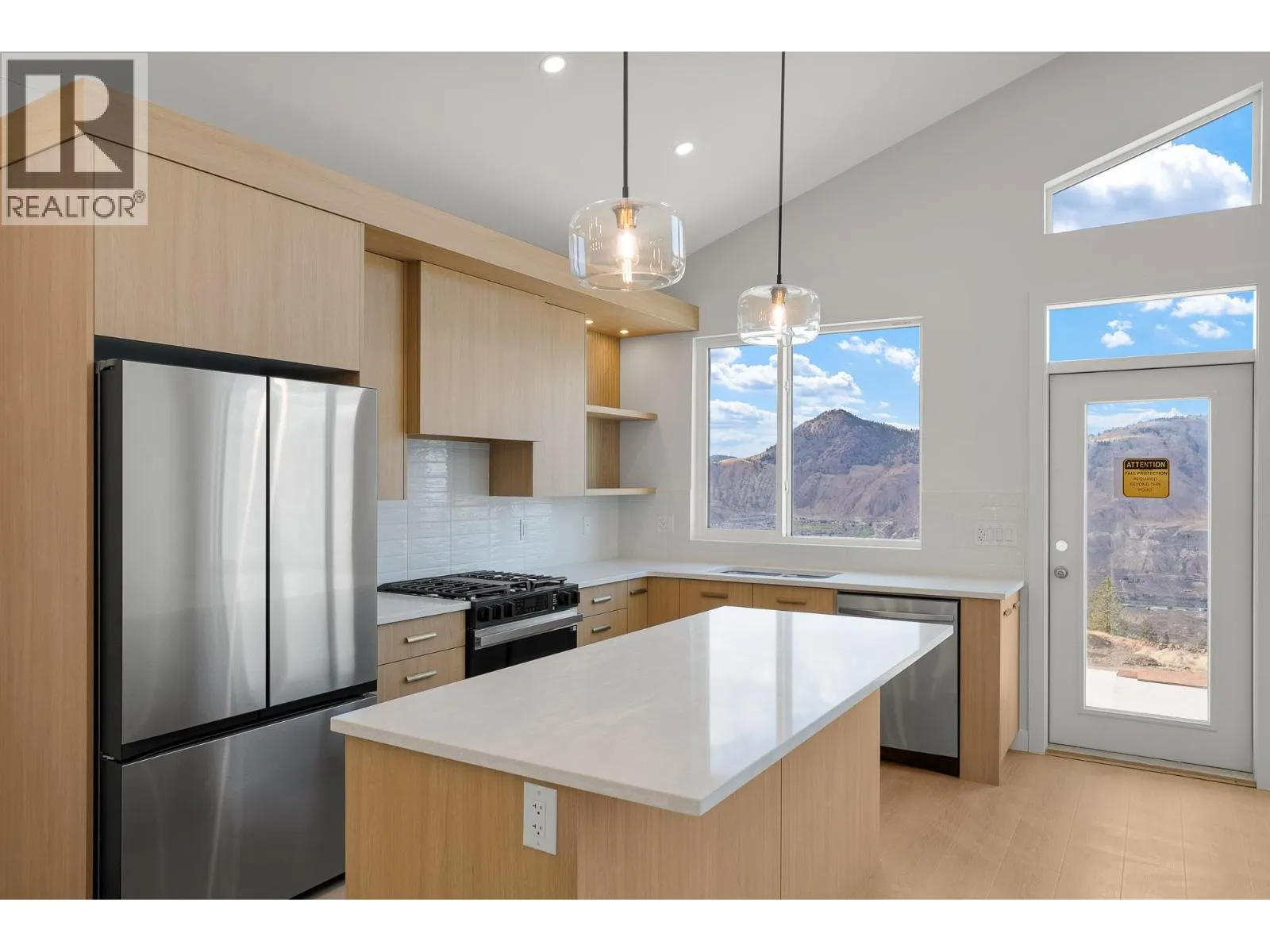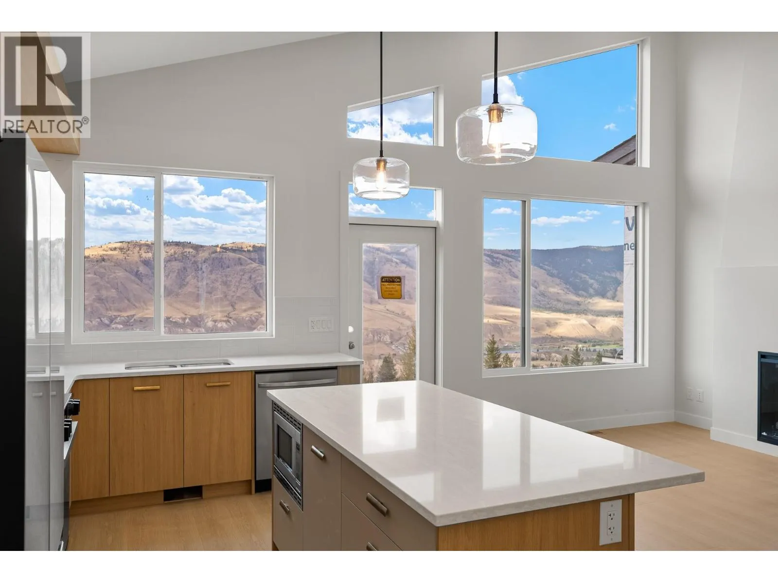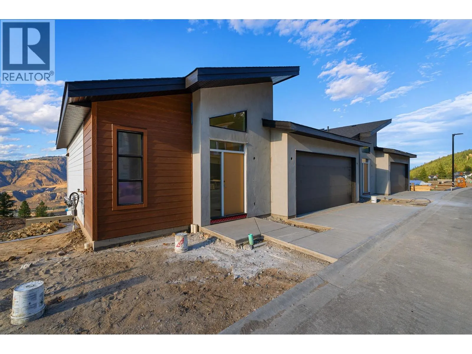 Welcome to The Landing at Juniper West – an exclusive collection of 3-bedroom duplex homes perched atop Juniper Ridge on scenic Coldwater Drive. Showcasing striking modern architecture, each home seamlessly blends style, functionality, and breathtaking natural surroundings into one perfect package. Thoughtfully crafted entry-level layouts feature a bright, open-concept floor plan that flows effortlessly between the living, kitchen, and dining spaces. Vaulted ceilings and expansive windows frame unobstructed river and city views, inviting the beauty of the outdoors into your everyday living. With the primary suite and laundry conveniently located on the main floor, you have everything you need within easy reach. The rancher-style design includes a walkout basement offering two additional bedrooms and a full bathroom—delivering flexibility and comfort for every stage of life. This duplex also contains a Bonus space with the suspended slab under the basement, providing additional square footage to your home! Outside, enjoy professionally landscaped, low-maintenance yards and the added ease of a low Bareland Strata fee. Every home comes turn-key ready, complete with a full appliance package, stylish window coverings, and contemporary finishes—so you can settle in and start enjoying immediately. This is elevated living in one of Kamloops’ most sought-after neighbourhoods. *Please note, listing photos are of Unit 140 (id:27476)