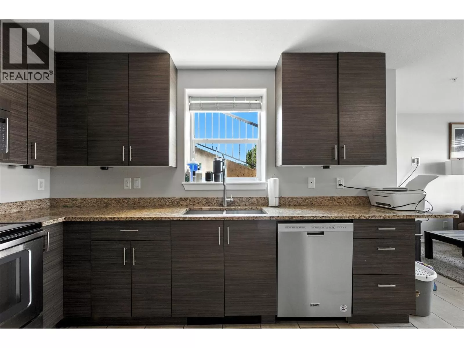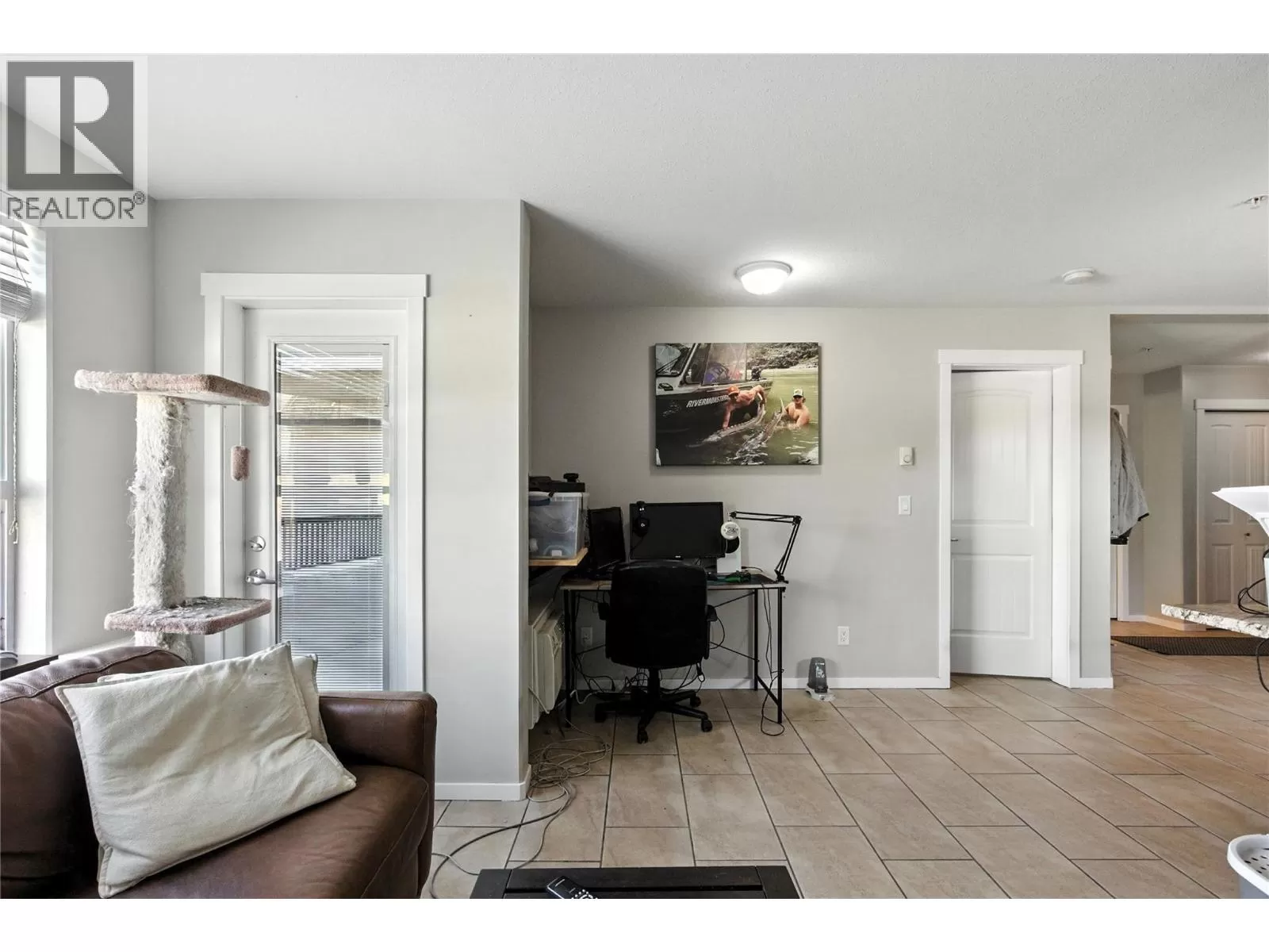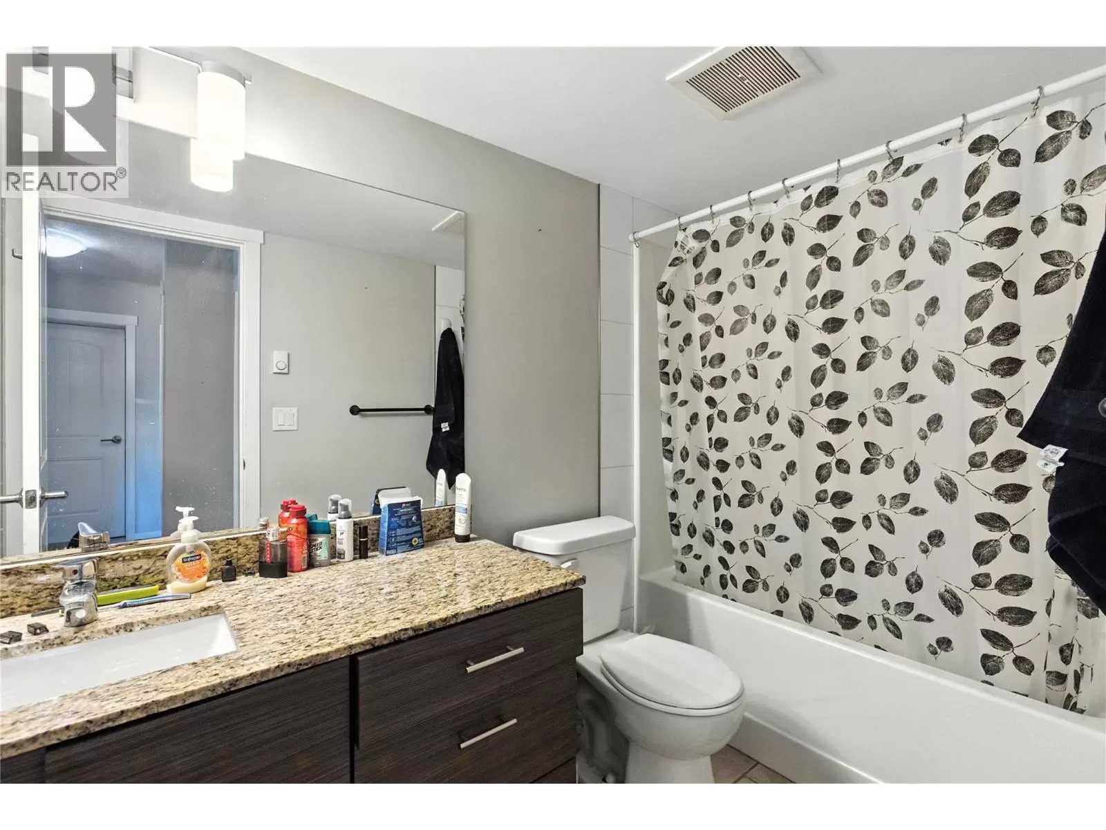 Welcome to this rare and ultra-convenient one-bedroom condo at Harrison Place in the heart of Aberdeen. This thoughtfully upgraded home is the only unit in the building with its own private front entrance and direct access to the parkade just steps away. Inside, enjoy a bright and modern living space with porcelain tile flooring throughout, quartz countertops, soft-close cabinetry, wall unit A/C, and a premium stainless steel appliance package. A full-size washer and dryer add to the convenience. Relax on the spacious covered patio with city views. The unit includes two parking stalls and a storage locker. Harrison Place offers excellent amenities, including a fitness room, bike storage, and a landscaped outdoor pergola area. Pets are welcome (one of the few strata buildings in Kamloops that welcomes large dogs!) and there are no rental restrictions, making this a versatile choice for first-time buyers, students, or investors. Close to shopping, restaurants, and transit, this home offers a low-maintenance lifestyle in a prime Aberdeen location. (id:27476)