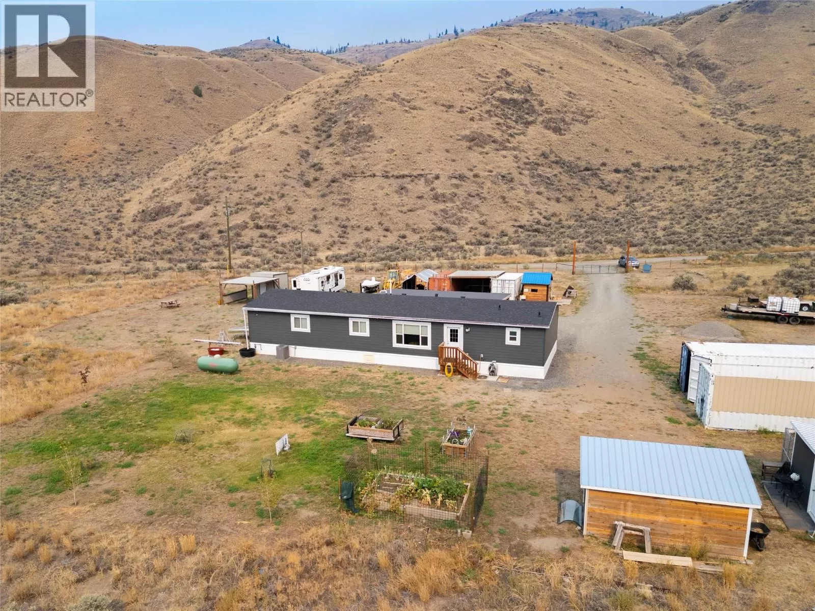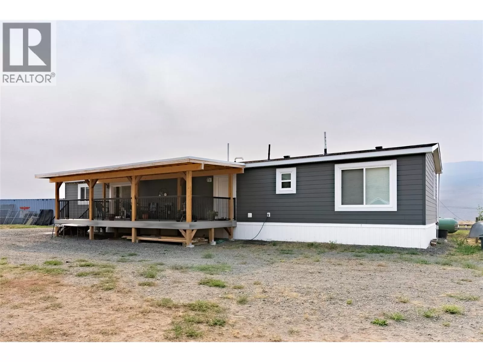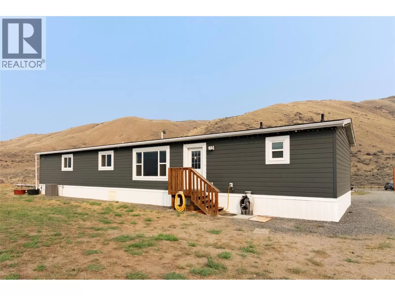 This 4.87-acre property offers the ideal blend of comfort, privacy, and functionality. The 2021 double wide is set on a cement slab and features 3 bedrooms and 2 full bathrooms plus a den/office or 4th bedroom with no closet, great nursery or kids room, making it an excellent choice for a growing family. Built with Hardi board siding for long-lasting durability in our hot summers, the home also includes a reverse osmosis system for clean drinking water and a 200-amp electrical service to power all your needs. Inside, youâll appreciate the bright, open floor plan and plenty of room to spread out. Step outside to the 30â x 13â covered deck and take in the surrounding mountain views. The property is flat, fully usable, and fully fenced with three gated access points, giving you versatility for animals, equipment, or future projects. A chicken house with a large chain link run is already in place, along with two seacans, a garden shed, and a negotiable 30â x 60â double truss coverall. Additional items such as the backhoe and post pounder may also be available. The property is well supplied with an 8 GPM well for reliable water. Cedar shed was previously used as a Sauna, now being used for storage. All this is just a short drive to Tobiano Golf Resort and Kamloops Lake, offering the perfect balance of country living and convenience. Bring your horses, build your dream shop, or simply enjoy the space and freedom this property provides. (id:27476)