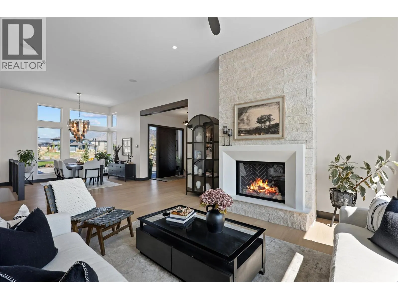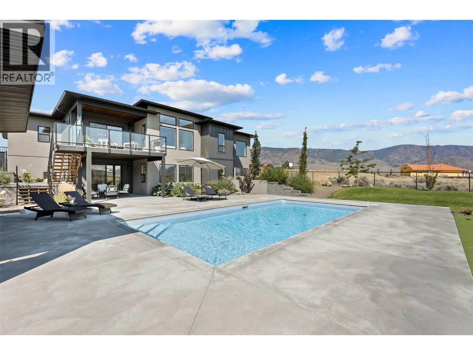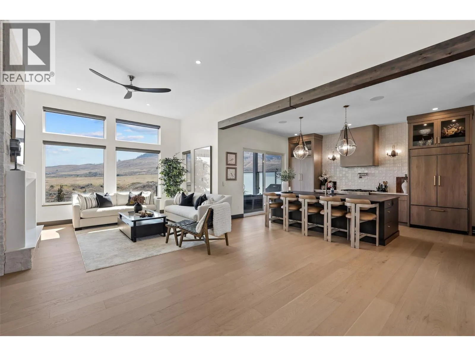 Welcome to 115 Lake Point Court, a masterfully crafted rancher perfectly situated on a 32,900+ sq.ft. estate lot in the sought-after community of Tobiano. Designed with an uncompromising attention to detail, this residence showcases soaring 10ft ceilings on the main level, engineered hardwood floors, custom cabinetry with built-in appliances, and quartz countertops throughout. The expansive great room is anchored by a stunning fireplace feature and framed by walls of windows capturing panoramic mountain views, while the chef-inspired kitchen with walk-in pantry blends beauty with function. The private primary suite offers a spa-like retreat with stone soaker tub, walk-in shower, dual vanities, and a custom walk-in closet. A second bedroom, elegant powder room, and a well-appointed mudroom/laundry complete the main floor. The fully finished walk-out basement is designed for entertaining with a large rec room and games room with wet bar, three additional bedrooms, two full bathrooms, and versatile space to be used as a den or extra storage. Step outside to a resort-inspired backyard featuring a 32x16 saltwater pool with automatic cover, pool shed with pump room, covered patio, and a fully fenced, professionally landscaped yard. Just steps from Kamloops Lake and the award-winning Tobiano Golf Course, this exceptional home offers the perfect blend of refined luxury, modern comfort, and the unparalleled lifestyle that Tobiano is known for. (id:27476)