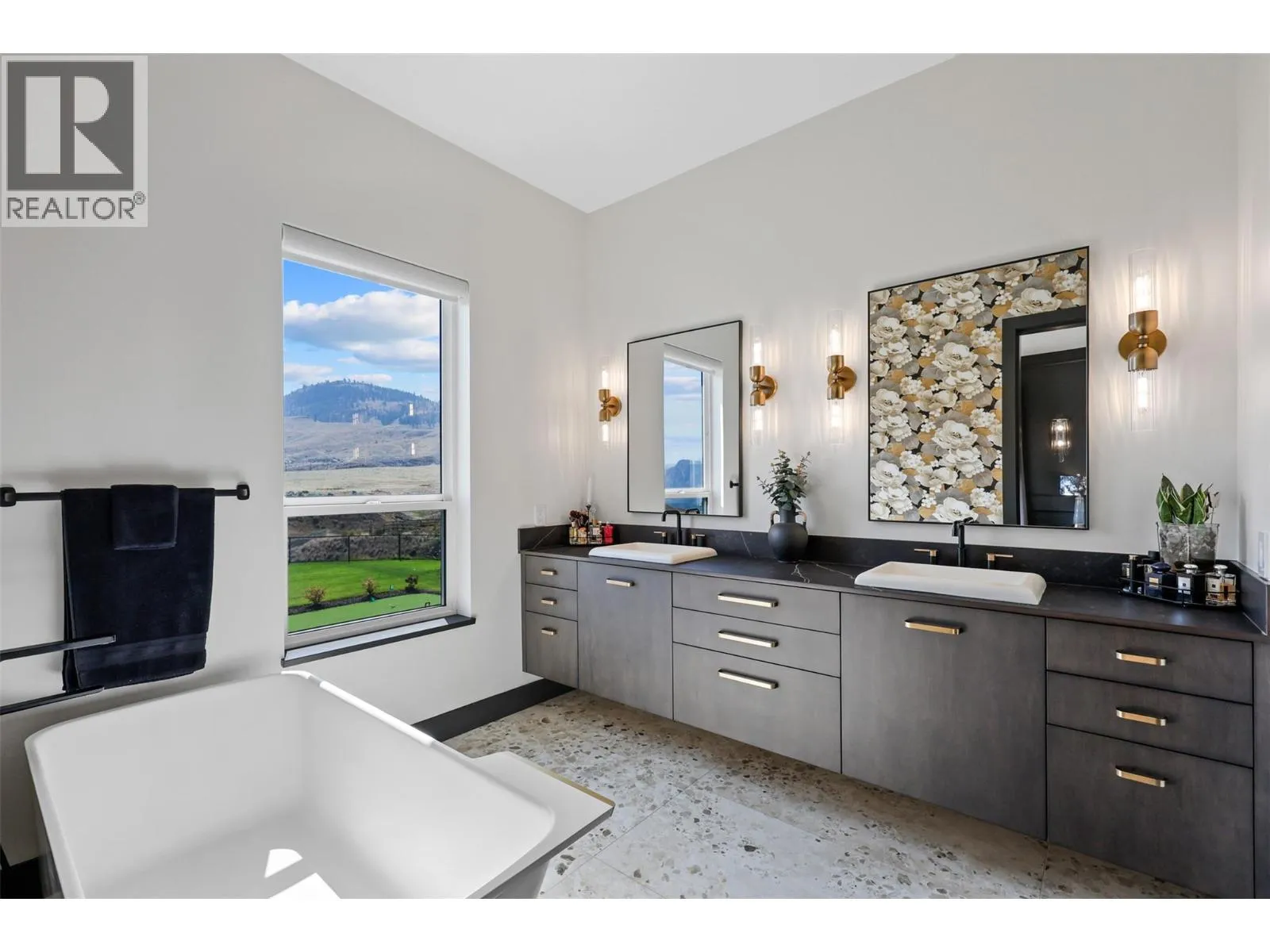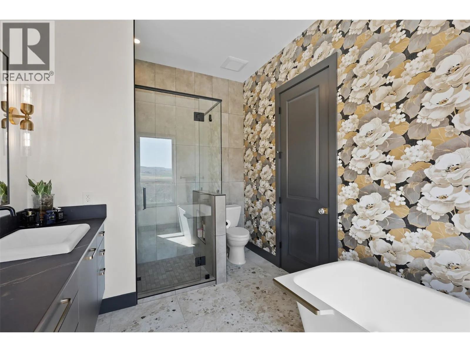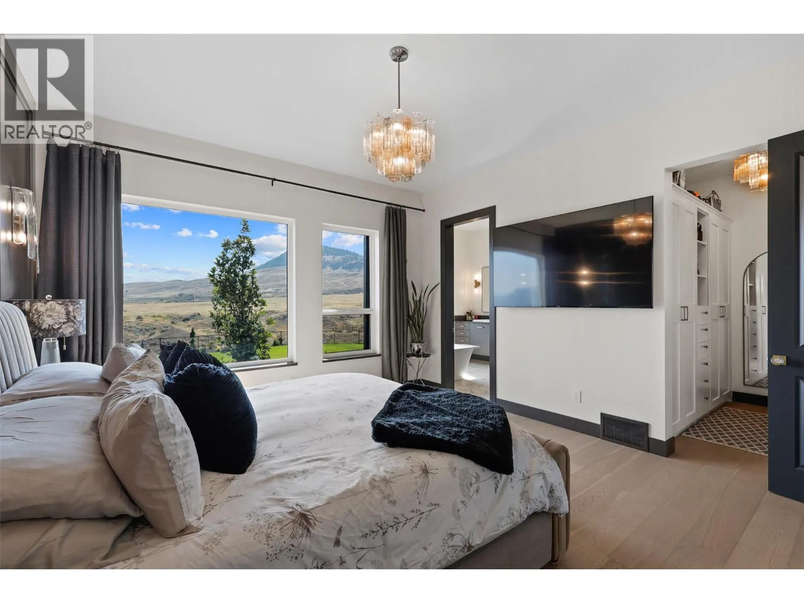 Welcome to 115 Lake Point Court, a masterfully crafted rancher perfectly situated on a 32,900+ sq.ft. estate lot in the sought-after community of Tobiano. Designed with an uncompromising attention to detail, this residence showcases soaring 10ft ceilings on the main level, engineered hardwood floors, custom cabinetry with built-in appliances, and quartz countertops throughout. The expansive great room is anchored by a stunning fireplace feature and framed by walls of windows capturing panoramic mountain views, while the chef-inspired kitchen with walk-in pantry blends beauty with function. The private primary suite offers a spa-like retreat with stone soaker tub, walk-in shower, dual vanities, and a custom walk-in closet. A second bedroom, elegant powder room, and a well-appointed mudroom/laundry complete the main floor. The fully finished walk-out basement is designed for entertaining with a large rec room and games room with wet bar, three additional bedrooms, two full bathrooms, and versatile space to be used as a den or extra storage. Step outside to a resort-inspired backyard featuring a 32x16 saltwater pool with automatic cover, pool shed with pump room, covered patio, and a fully fenced, professionally landscaped yard. Just steps from Kamloops Lake and the award-winning Tobiano Golf Course, this exceptional home offers the perfect blend of refined luxury, modern comfort, and the unparalleled lifestyle that Tobiano is known for. (id:27476)