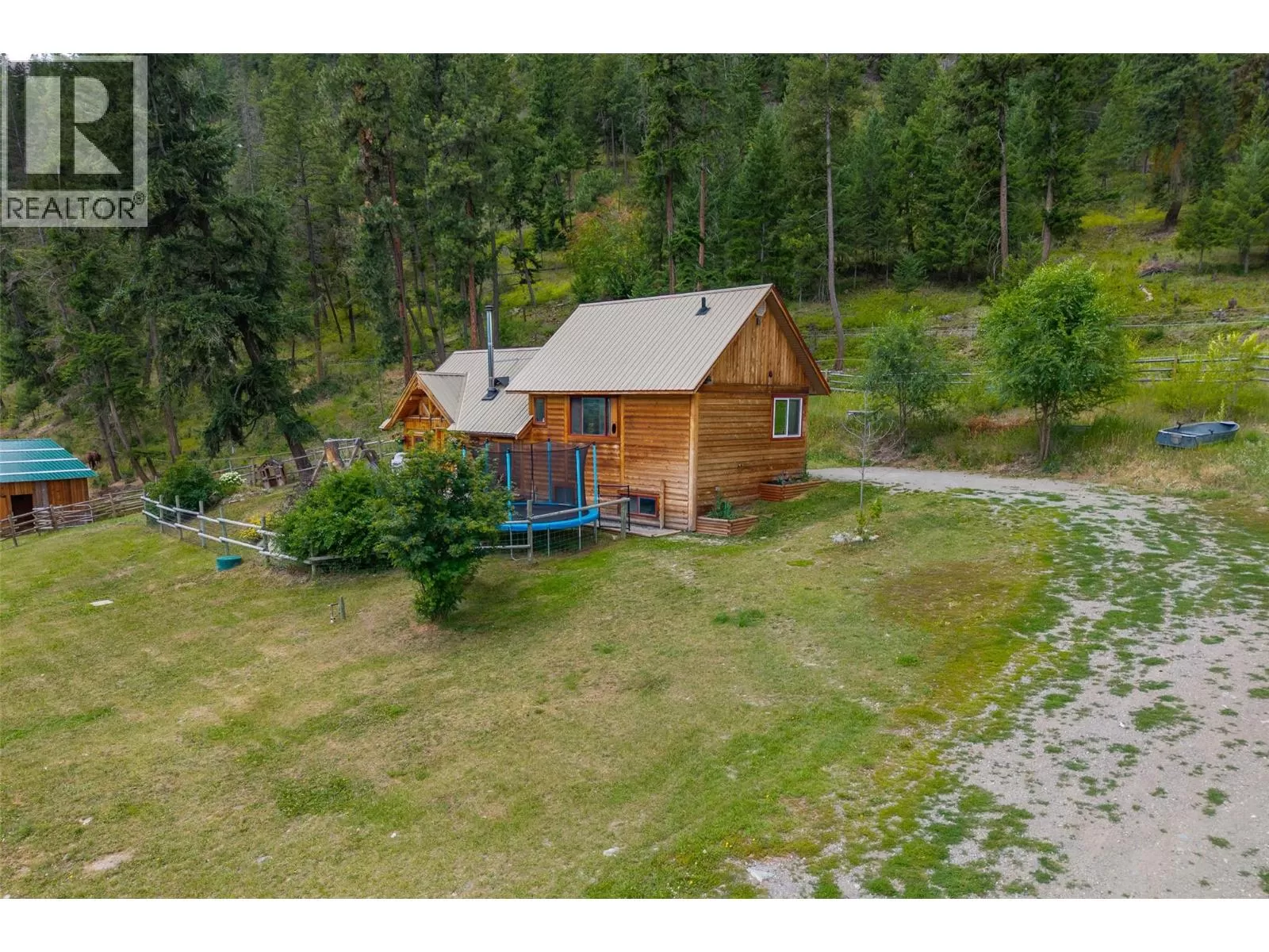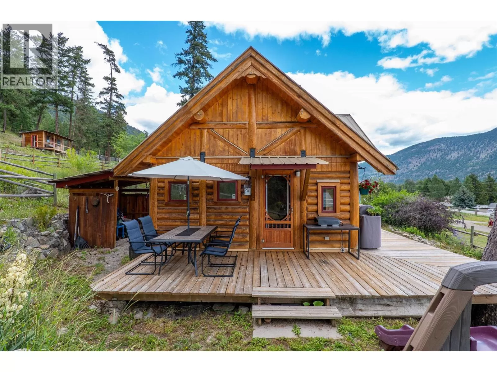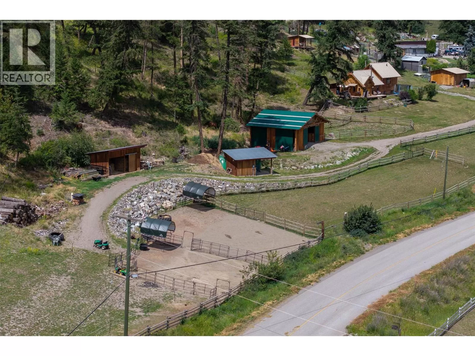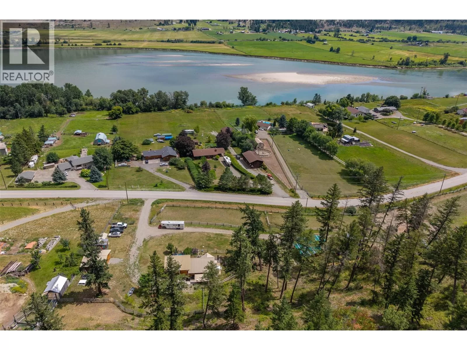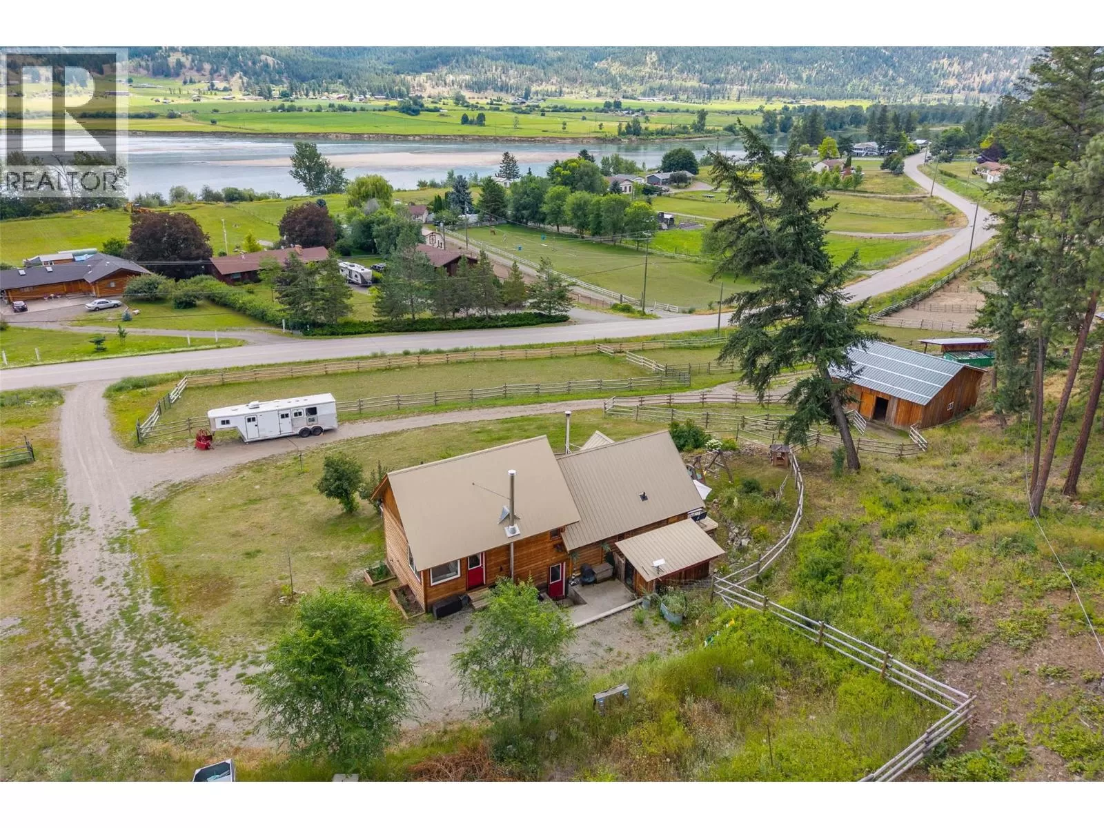 Welcome home to this charming 2 bedroom, 2 bathroom log house nestled on 5.79 acres in Black Pines. Step inside to discover a beautiful modern kitchen featuring stainless steel appliances, stone countertops & plenty of cupboard & counter space, complemented by a bright dining room area. Enjoy the cozy living room enhanced with a wood burning stove for efficient heating throughout. The loft primary bedroom offers a tranquil retreat with a spacious walk-in closet and an en-suite bathroom with a separate tub & shower, providing comfort and privacy. On the lower level you'll find a second bedroom, full bathroom, & a convenient laundry area, offering practical living spaces for your comfort. The property is tailored for horse enthusiasts, with fenced and cross-fenced areas, a custom 28'x36' barn complete with paddocks & insulated tack room, new riding arena, dry pens, & rotational grazing areas ensuring the well-being of your equine companions. Enhancing the appeal of this property are outbuildings (all under 10 years old) that provide ample storage and functional space for various needs. Additionally, a welcoming guest cabin invites visitors to enjoy the peace and serenity of the surroundings. With stunning river views as the backdrop, this property offers a unique opportunity to embrace nature and country living while still being conveniently located. This home offers so much potential, as it's turn key, & also offers the possibility to expand the living the space if needed. (id:27476)