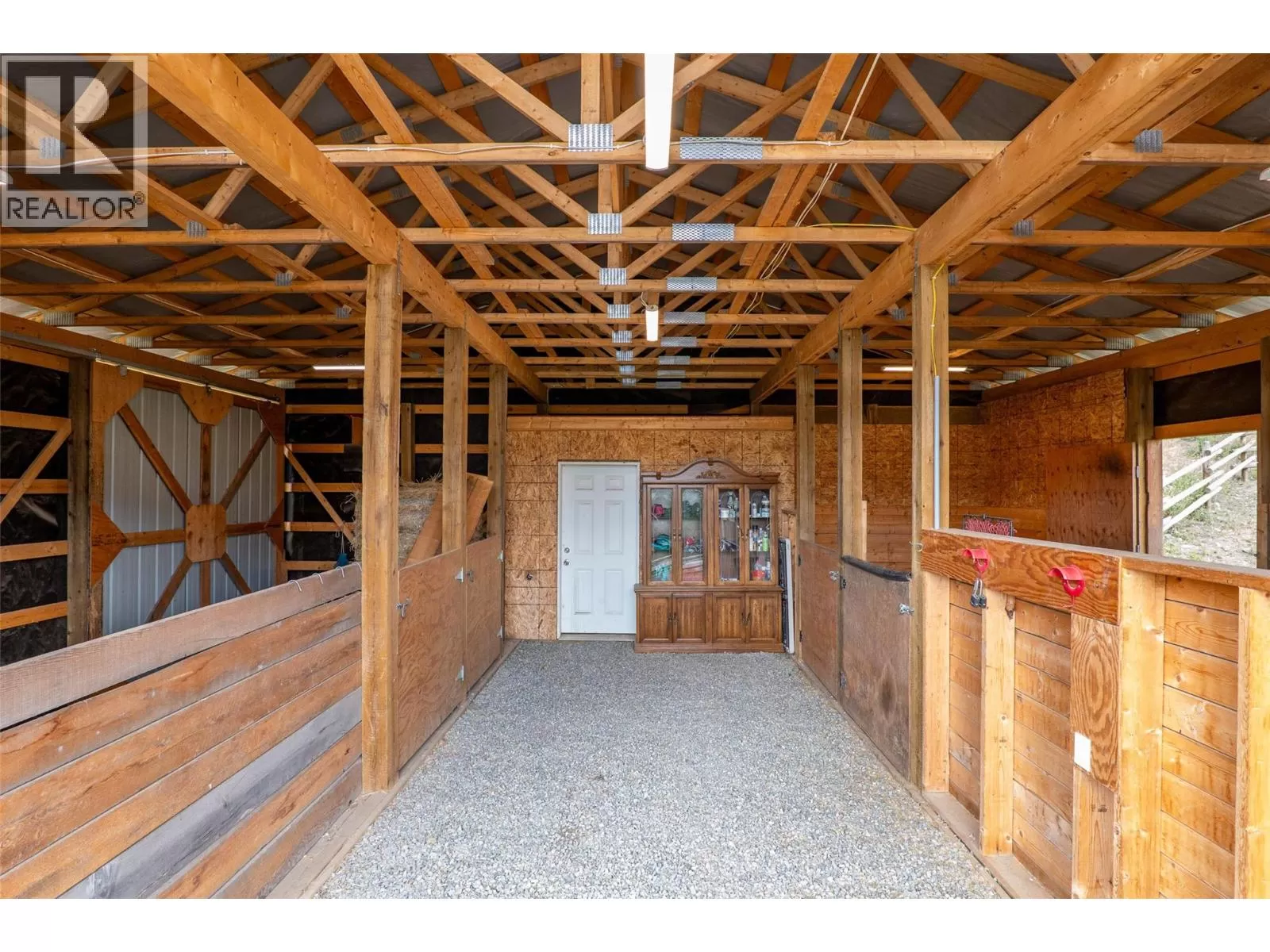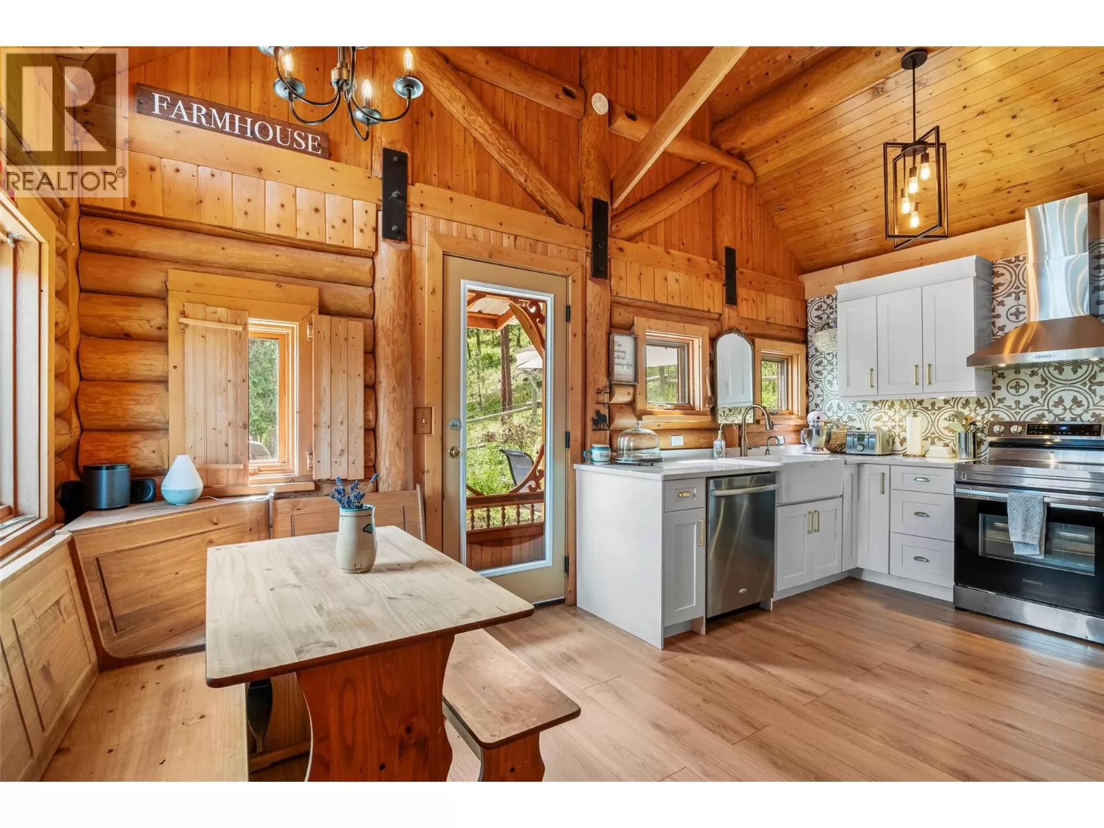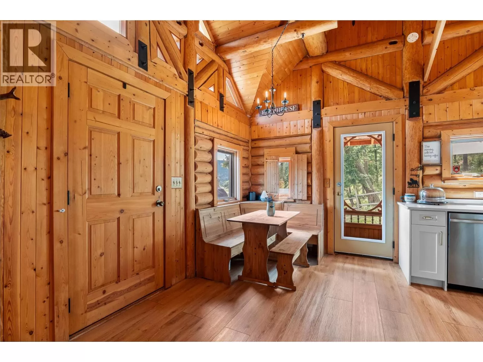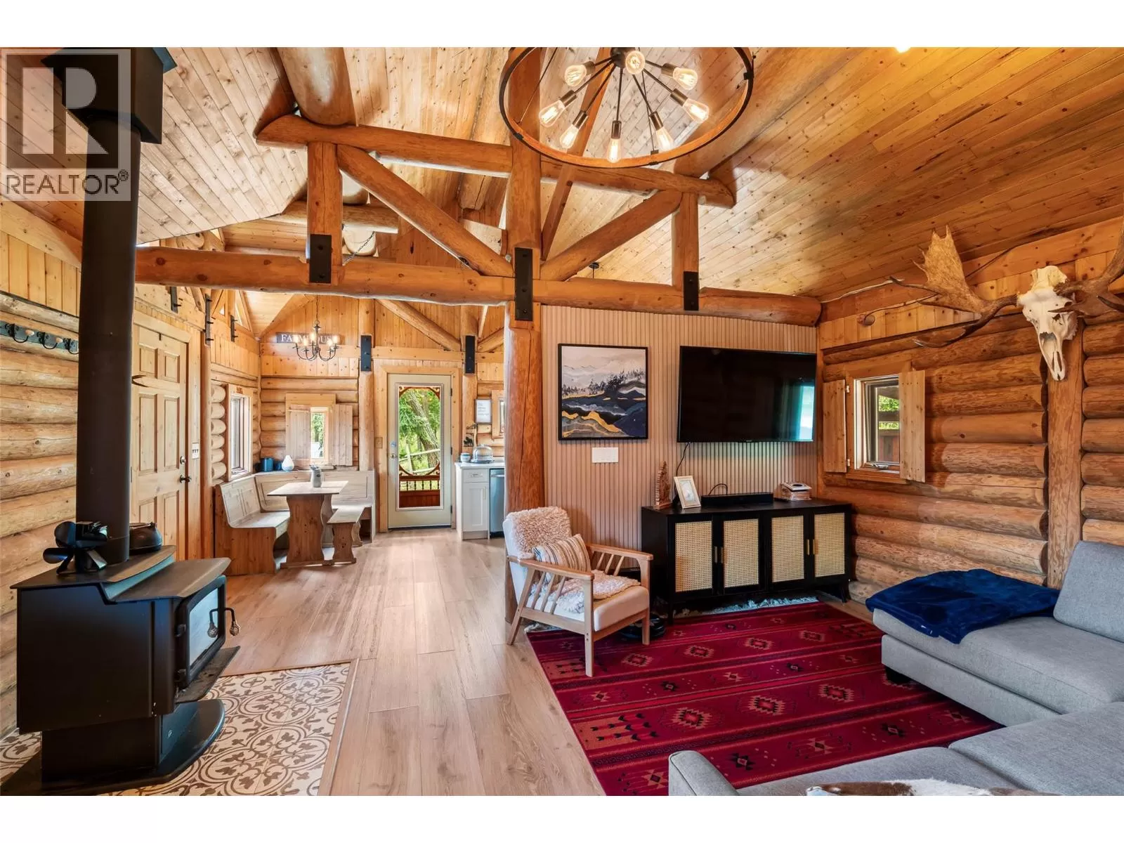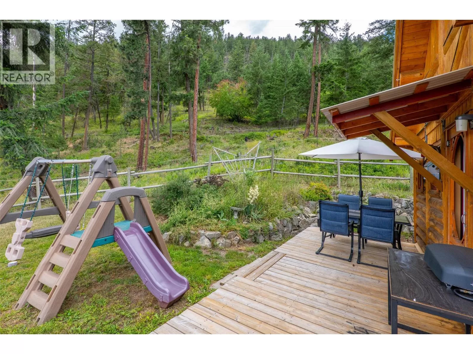 Welcome home to this charming 2 bedroom, 2 bathroom log house nestled on 5.79 acres in Black Pines. Step inside to discover a beautiful modern kitchen featuring stainless steel appliances, stone countertops & plenty of cupboard & counter space, complemented by a bright dining room area. Enjoy the cozy living room enhanced with a wood burning stove for efficient heating throughout. The loft primary bedroom offers a tranquil retreat with a spacious walk-in closet and an en-suite bathroom with a separate tub & shower, providing comfort and privacy. On the lower level you'll find a second bedroom, full bathroom, & a convenient laundry area, offering practical living spaces for your comfort. The property is tailored for horse enthusiasts, with fenced and cross-fenced areas, a custom 28'x36' barn complete with paddocks & insulated tack room, new riding arena, dry pens, & rotational grazing areas ensuring the well-being of your equine companions. Enhancing the appeal of this property are outbuildings (all under 10 years old) that provide ample storage and functional space for various needs. Additionally, a welcoming guest cabin invites visitors to enjoy the peace and serenity of the surroundings. With stunning river views as the backdrop, this property offers a unique opportunity to embrace nature and country living while still being conveniently located. This home offers so much potential, as it's turn key, & also offers the possibility to expand the living the space if needed. (id:27476)