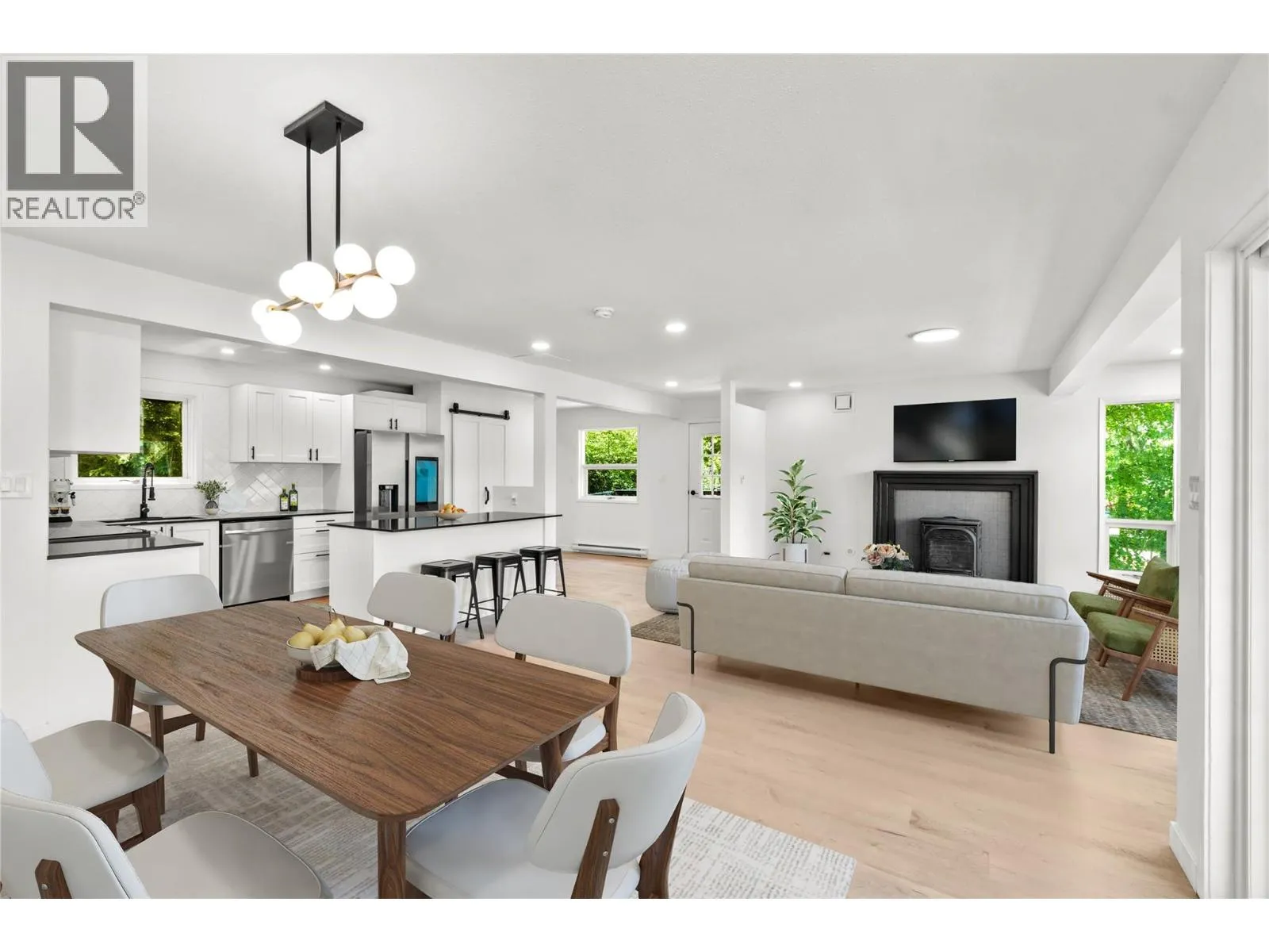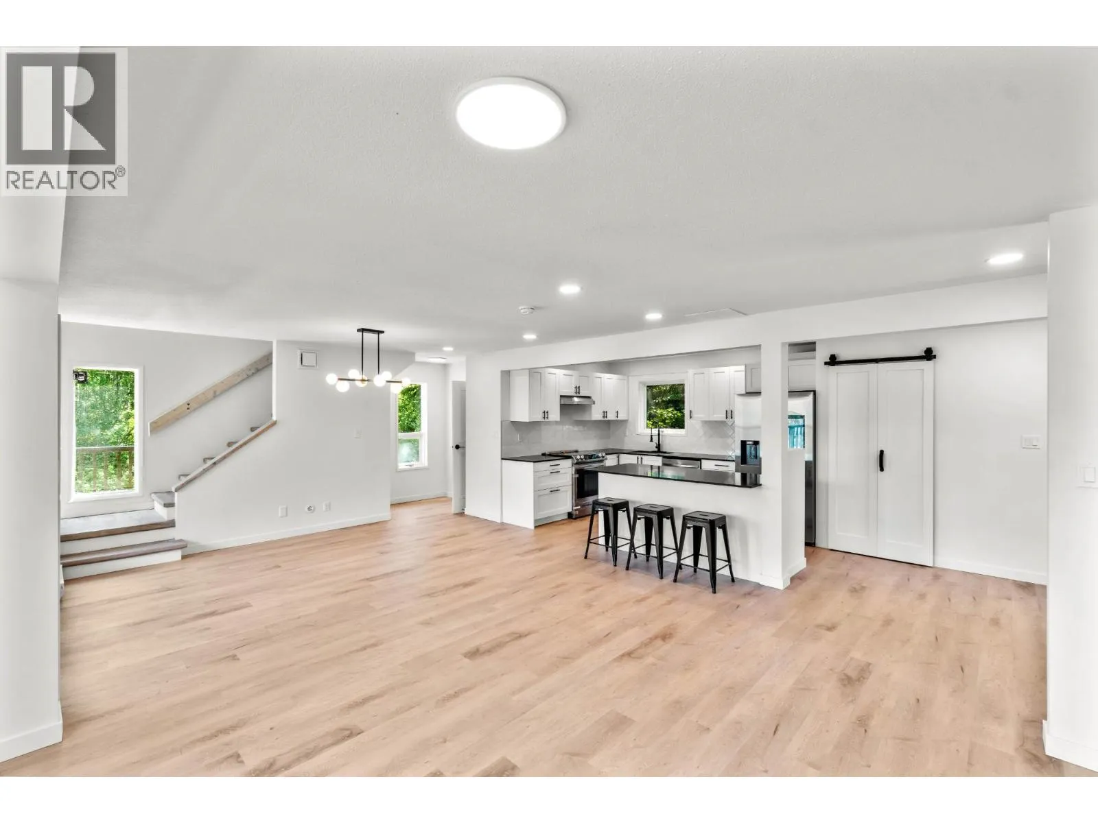 Modern and Private Lakeview Home with Stunning Updates - Experience contemporary living in this updated 3-level home across from Pinantan Lake. Ideal as a getaway from the city or peaceful living year-round, surrounded by nature. Offering 4 bedrooms and 2.5 baths, this property features: Breathtaking Views - enjoy the gorgeous lake views from multiple vantage points throughout the home, enhanced by abundant windows that bring in the natural beauty. Spacious Main Floor - Open floor plan with a modern new kitchen including quartz counters, new flooring and lighting, propane fireplace. Partially covered lakeview deck off the dining area. Upper Level Comfort - 3 bedrooms, open den, and an updated, spacious bathroom. Flexible Lower Level - Separate 1-bedroom guest space with kitchenette or non conforming suite with it's own laundry and 3 pc bathroom. Additional Updates: Exterior and interior paint, deck renovations, driveway, new retaining wall with stairs, and updated lighting and flooring. Located 30 minutes from Kamloops, with nearby school and store, and abundant outdoor recreation. Note - some main floor and upper floor photos are virtually staged. (id:27476)