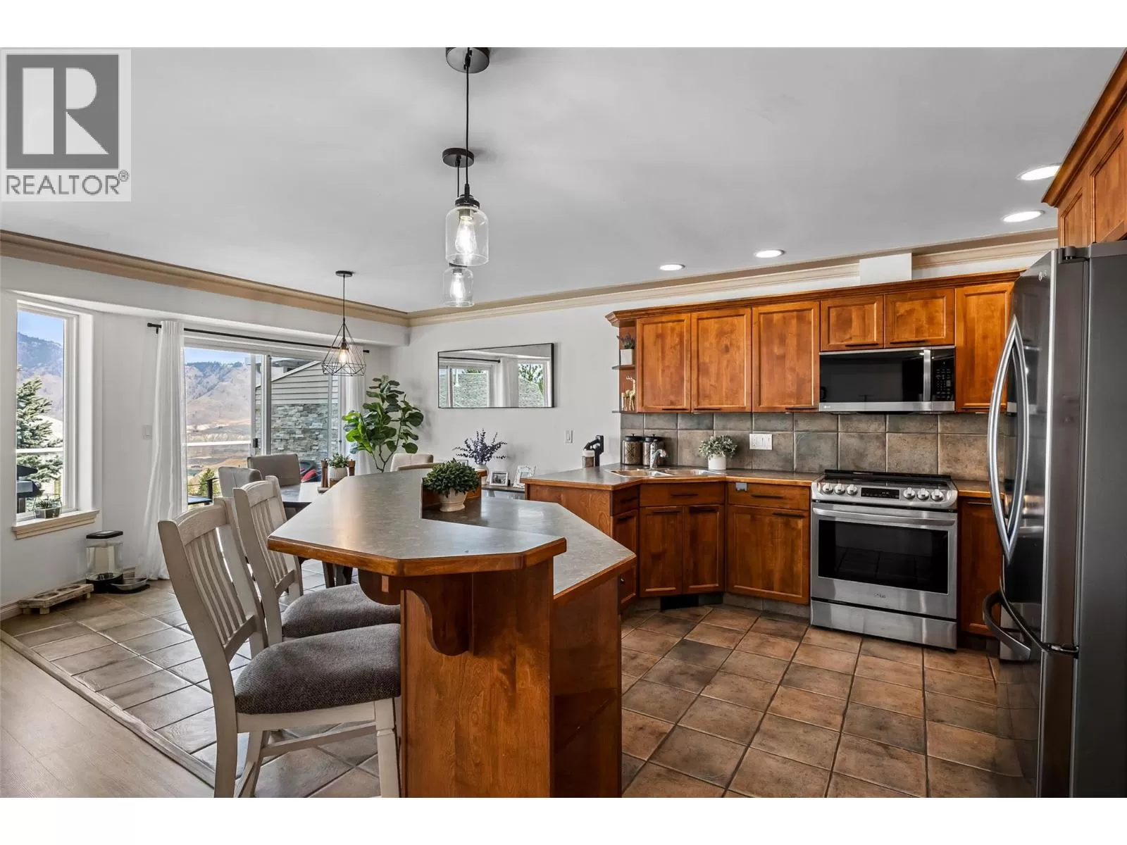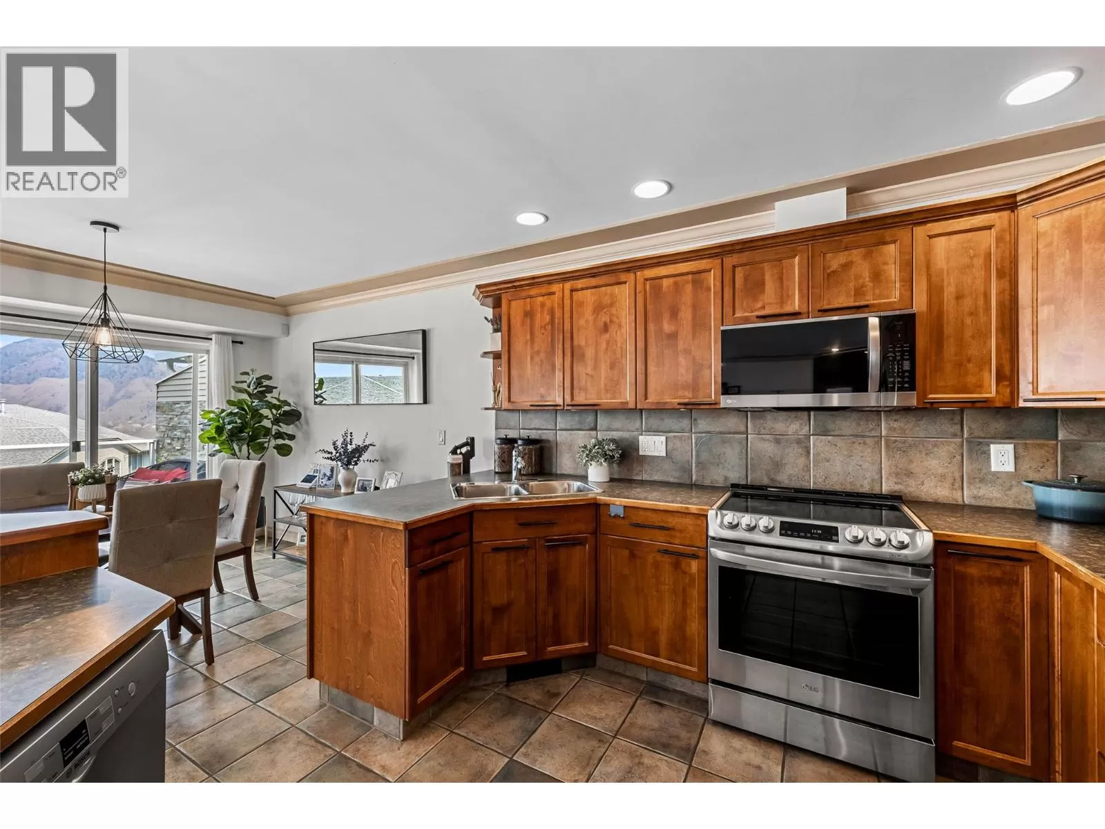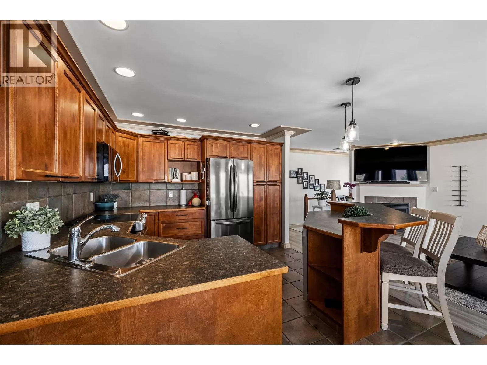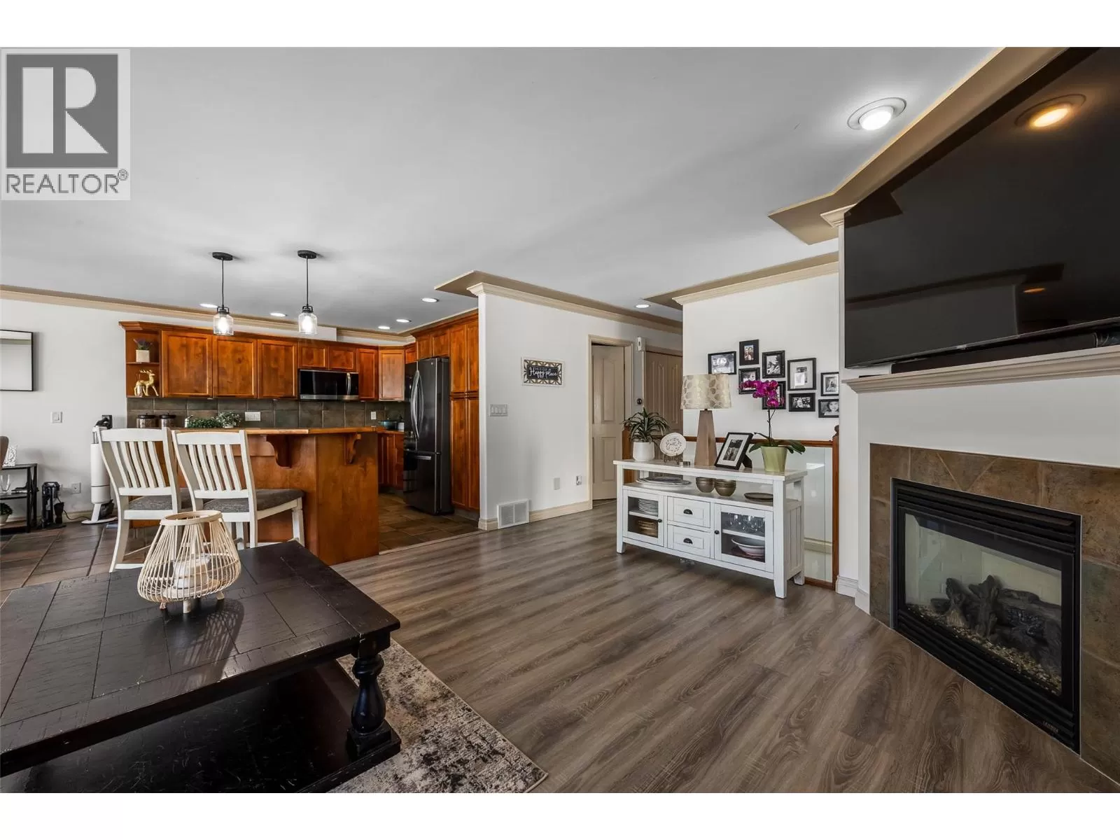This beautiful 3-bedroom, 3-bathroom end unit offers mountain views and is in a family-friendly community near parks, trails, schools, and the market. The kitchen features ample wood cabinetry, a central island with a breakfast bar, and a dining room with patio access and a natural gas BBQ hookup. The spacious living room includes a natural gas fireplace and stunning views. Upstairs, find a 4-piece bath and two bedrooms, including a primary suite with a 3-piece ensuite. The lower level has another bedroom, a 4-piece bath, laundry, and a cozy rec room with a gas fireplace. Step outside to your private backyard with a pond, low-maintenance landscaping, and raised planter beds. This level also offers access to the double car garage. The Bareland Strata fee of $198.08 covers snow removal, sewer, garbage, management, and landscaping. (id:27476)