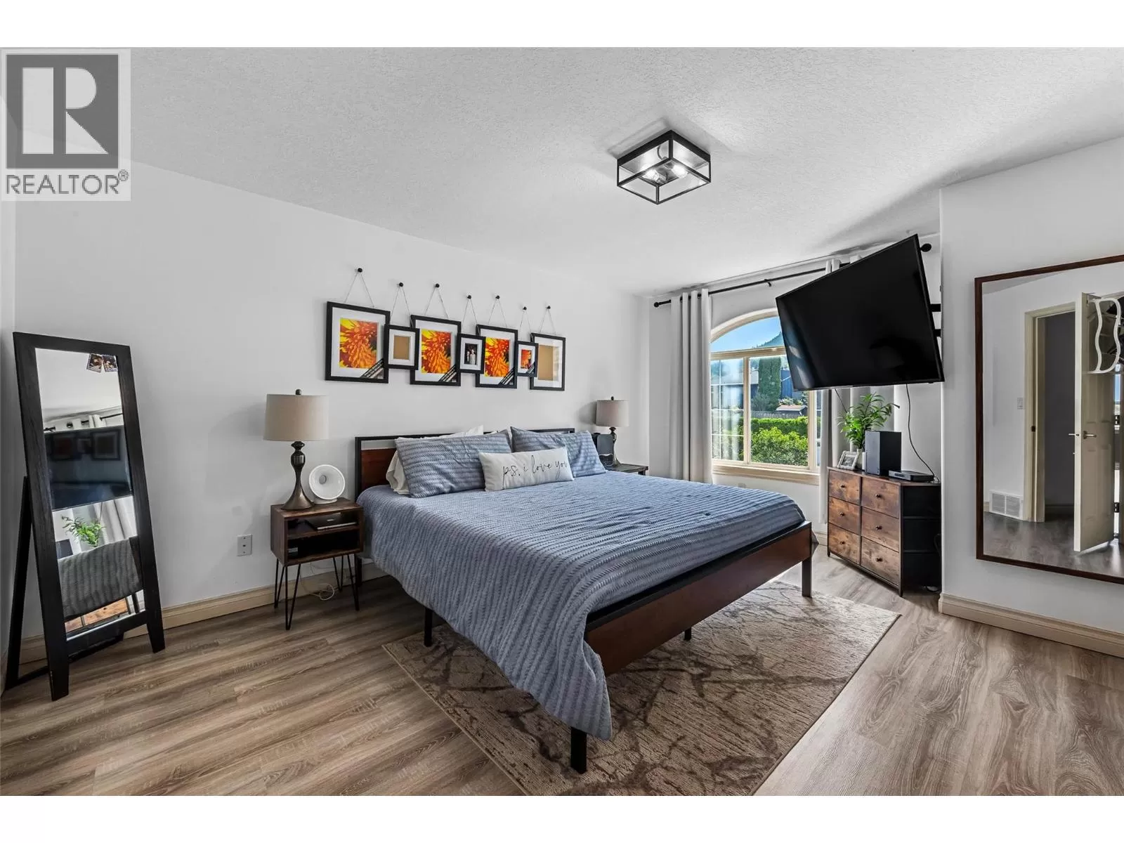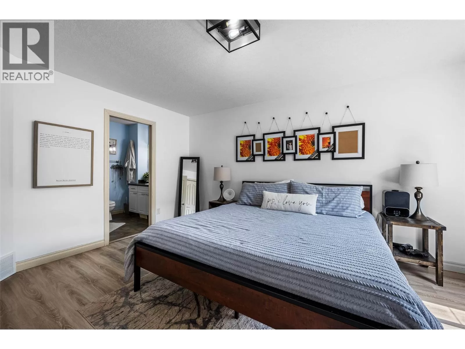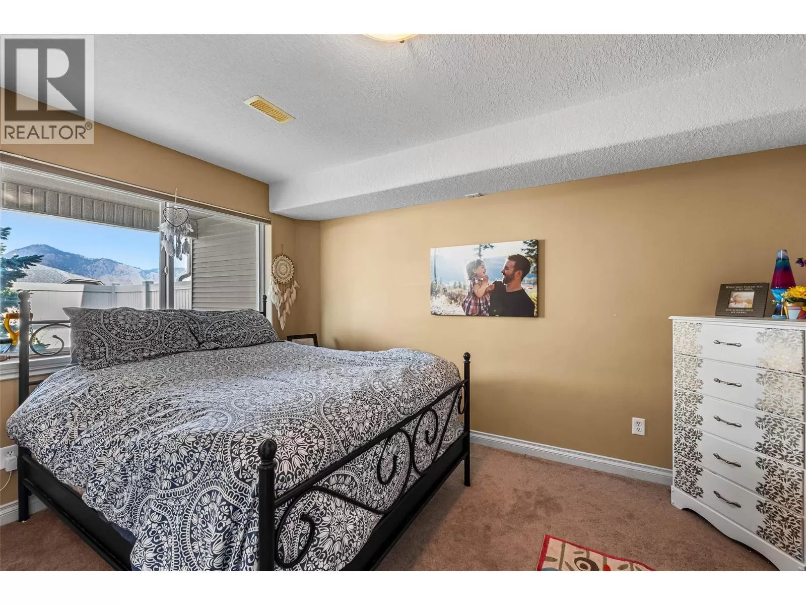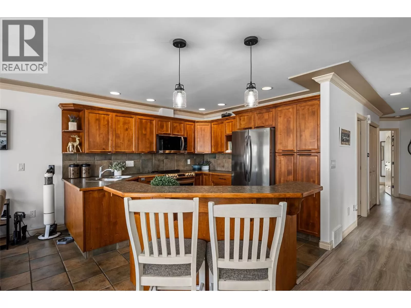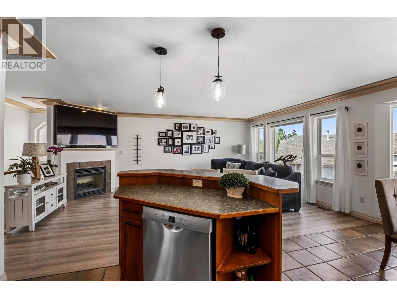 This beautiful 3-bedroom, 3-bathroom end unit offers mountain views and is in a family-friendly community near parks, trails, schools, and the market. The kitchen features ample wood cabinetry, a central island with a breakfast bar, and a dining room with patio access and a natural gas BBQ hookup. The spacious living room includes a natural gas fireplace and stunning views. Upstairs, find a 4-piece bath and two bedrooms, including a primary suite with a 3-piece ensuite. The lower level has another bedroom, a 4-piece bath, laundry, and a cozy rec room with a gas fireplace. Step outside to your private backyard with a pond, low-maintenance landscaping, and raised planter beds. This level also offers access to the double car garage. The Bareland Strata fee of $198.08 covers snow removal, sewer, garbage, management, and landscaping. (id:27476)