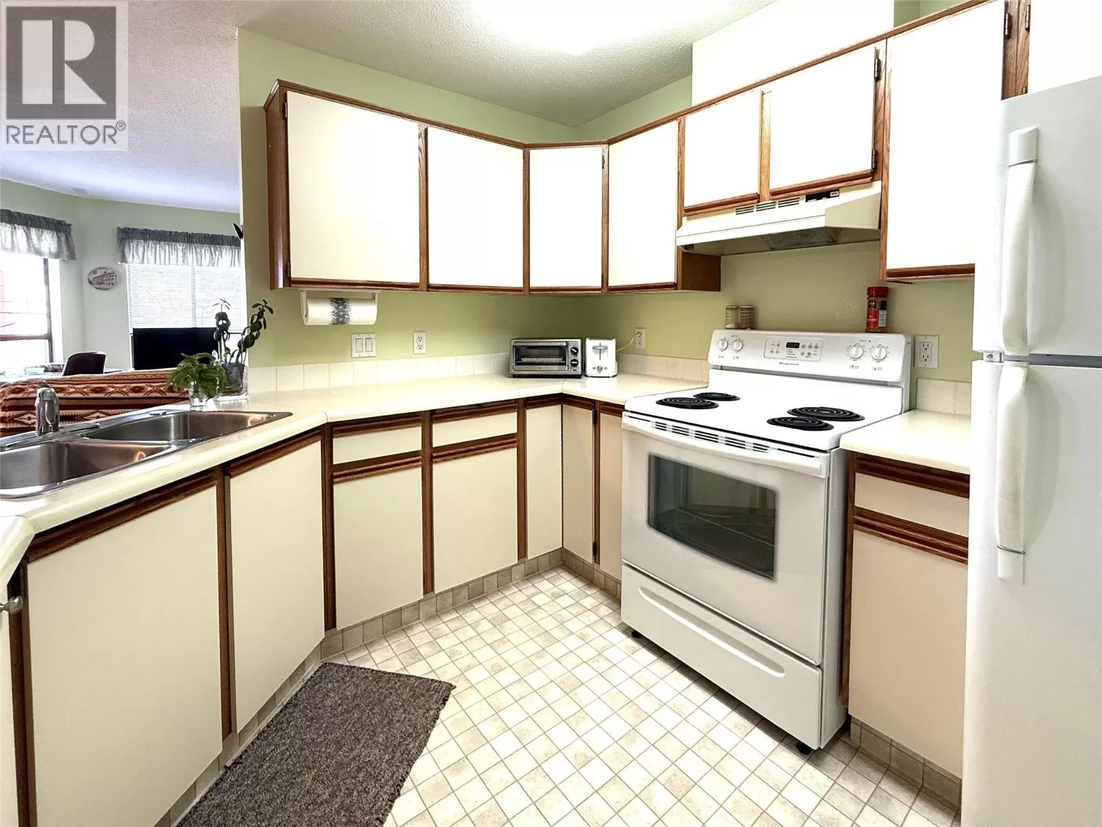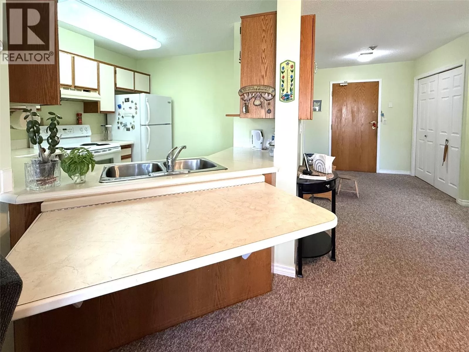 Ashley Court â Sought-After 55+ Lifestyle Welcome to this bright and inviting 2-bedroom, 3pc bath home in the highly regarded Ashley Court communityâperfect for those seeking a more relaxed, social lifestyle. Step inside the spacious, open floor plan featuring a cozy gas fireplace and a north-facing covered deck with a serene mountain view. The well-maintained kitchen includes a fridge and stove, while central air keeps you comfortable year-round. The generous primary suite offers a his-and-hers walk-through closet and private 2-piece ensuite. A second bedroom with elegant French pocket doors easily doubles as a home office or guest room. Practical touches abound: a large laundry room with washer, dryer, and a wall of storage closets, plus underground parking and a secure storage locker. Enjoy the vibrant community spirit with a common room and regular activitiesâall just minutes from the hospital, downtown shops, and essential amenities. Ashley Court â where comfort, convenience, and community meet. (id:27476)