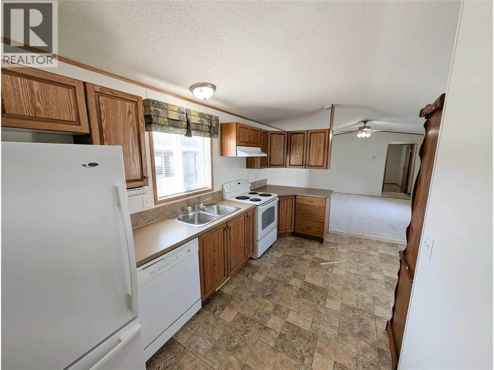 Welcome to unit #120 at Orchard Manufactured Home Park. This 2008 2 bedroom, 2 bathroom unit is sparkling clean and shows like new. The layout is ideal with a bedroom and a 4pc bath at both ends of the home for separation and privacy. In between the bedrooms you'll find a bright open concept living area with the kitchen, dining and living room all connected. The hot water tank was replaced in 2020, brand new carpets have been installed July 2025, a full interior paint completed July 2025, and the unit has been professionally cleaned. There are two exterior doors that lead into the yard which has been professionally cleaned and is ready for a new owners ideas. Currently there are some patio stones and two sheds for extra storage, the exterior decks, fence and large shed have also been recently painted. There is a swing gate that opens into the yard, and parking for two vehicles out front. This park is close to many amenities including, golf, shopping, casino, parks and more. Pets are allowed with restrictions and immediate possession is available. (id:27476)