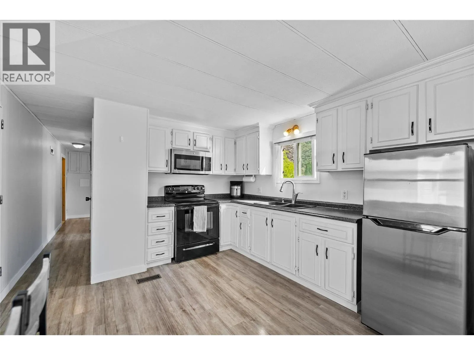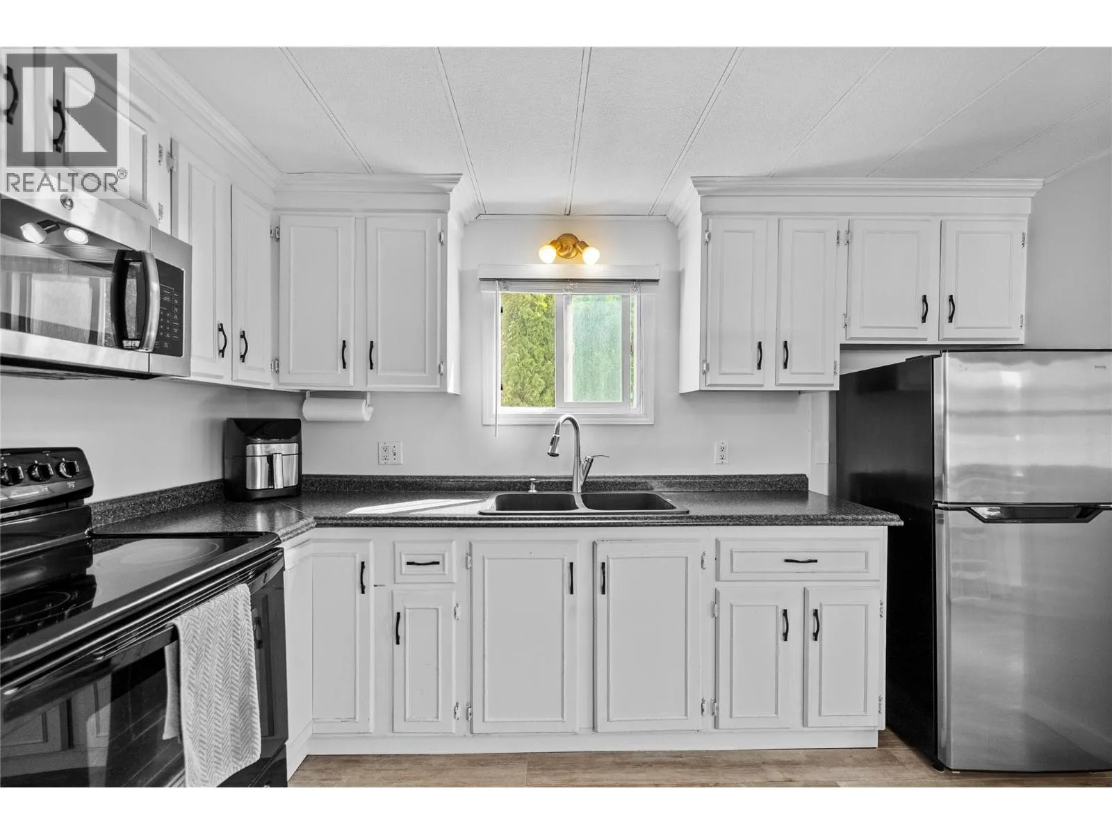 This nicely updated single-wide mobile home is located in the family section of Brock Estates at 107 â 2401 Ord Road in Kamloopsâ popular Brocklehurst neighborhood. The home features 2 bedrooms and 1 bathroom, with a number of recent updates that make it move-in ready. Inside, you'll find fresh paint, newer flooring, and modern stainless steel appliances, along with a recently installed hot water tank for added peace of mind. The kitchen opens onto a sunny deck, perfect for enjoying your morning coffee or relaxing in the afternoon sun. Outside, the fenced yard includes a shed for extra storage, and the surrounding mobile home park is well cared for, offering mature landscaping and a peaceful atmosphere. The current pad rent is $695 per month, and quick possession is available, making this an excellent option for families or individuals looking for an affordable and comfortable place to call home in a well-established community. Pets allowed with restrictions. Contact the listing brokerage, or call your favorite REALTOR today to book your private showing! (id:27476)