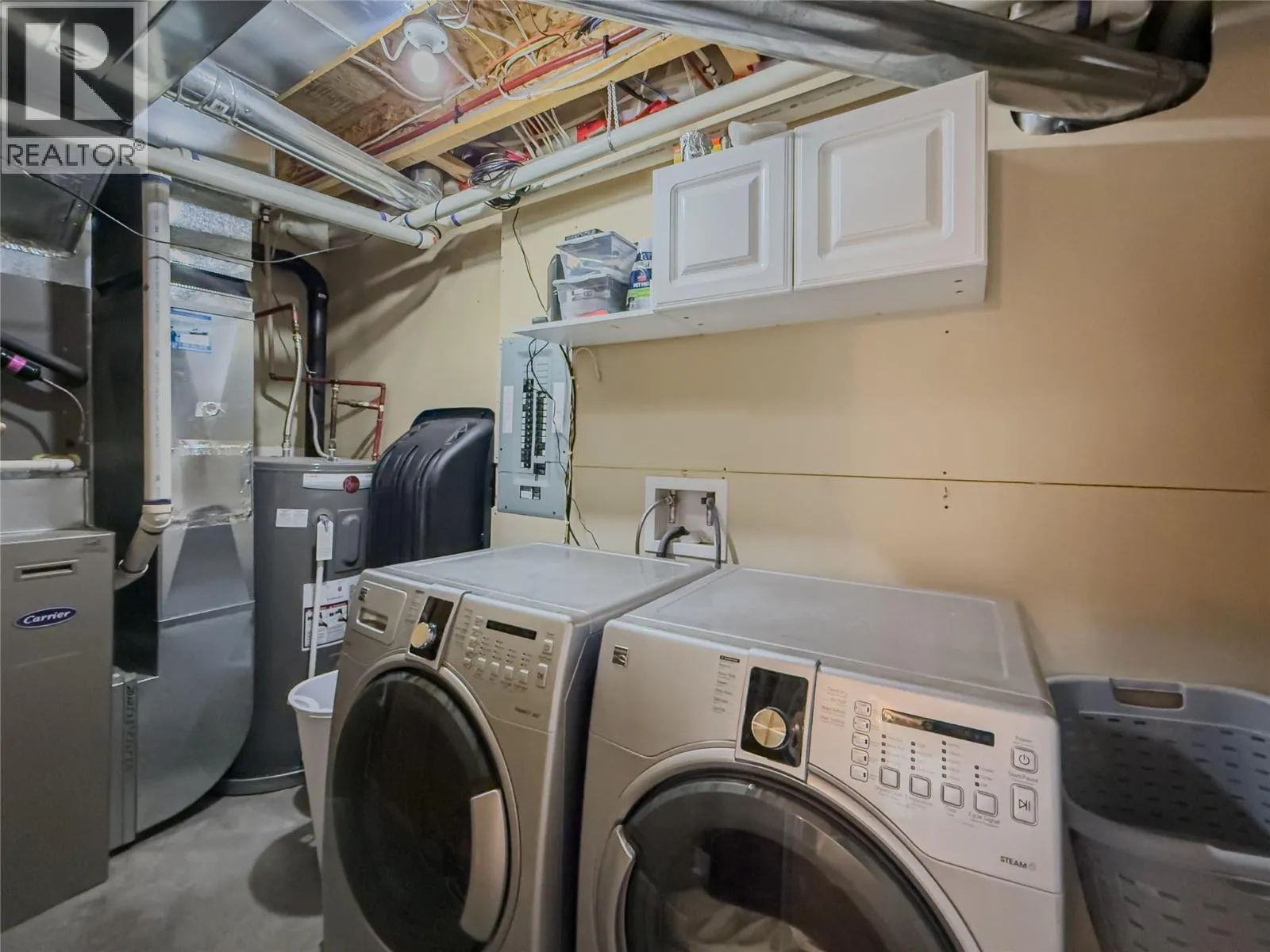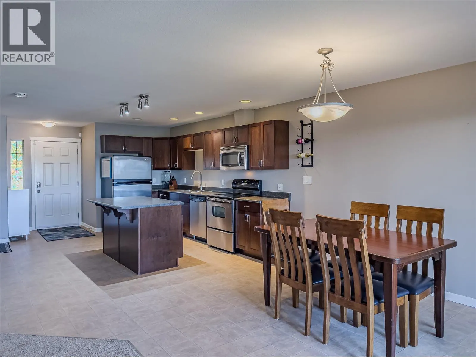 Welcome to Northgate, a sought-after townhome community in the quiet, family-friendly neighbourhood of Pineview. This 3-bedroom, 2-bathroom home offers modern comfort with unbeatable access to parks, trails, and city amenities. Located directly across from Pineview Valley Park and just steps from scenic hiking and biking routes, itâs perfect for those who love the outdoors while enjoying the convenience of nearby shopping and services. The open-concept main floor features a kitchen with stainless steel appliances, ample cabinetry and a large island, seamlessly flowing into the dining area and living room with a natural gas fireplace and access to a private covered deck. A 2-piece bathroom rounds out this level. Downstairs youâll find three spacious bedrooms, a 4-piece bathroom, and a laundry/utility room with additional storage. The primary bedroom opens to a second covered patio and green space, extending your living outdoors. Additional highlights include a newer air-conditioning unit and hot water tank, central vacuum rough-in, and parking for two vehiclesâa single garage with built-in shelving plus a second spot out front. With quick access to Costco, Aberdeen Mall, Sahali shopping, Pineview Recreation Trails, and Kenna Cartwright Park, this home strikes the perfect balance of tranquility and convenience. A brand-new elementary school is also scheduled to open in Pineview in 2026. 1 dog or 1 cat. Strata fee: $265.77. Buyer to verify all listing details and measurements. (id:27476)