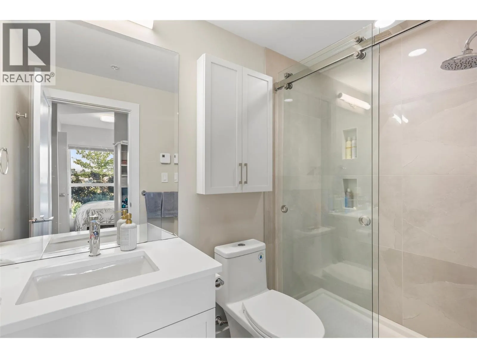 Spacious 2 bedroom, 2 bathroom ground floor corner unit, situated on Campus at TRU! Delightful South exposure means great light in this modern, bright, and well cared for residence. This quality built, turn key investment is ready for students, faculty, or anyone wanting to live in a terrific location steps from the Sahali Centre Shopping area, transit and dining. The primary bedroom features a large walk-through closet with built in shelving organizers leading to a private ensuite with tiled walk in shower. Plenty of space to spread out with a comfortable living room, modern kitchen with quartz counters and bar seating, good sized dining area, 4 pc bath, and a corner deck. 3 programmable zones for A/C and heat means comfort for everyone. Secure underground parking and storage, plus an in suite laundry room with bonus storage space. Top floor amenity room, rooftop patio, and secure bike storage. Pets and rentals are permitted with strata approval. (id:27476)