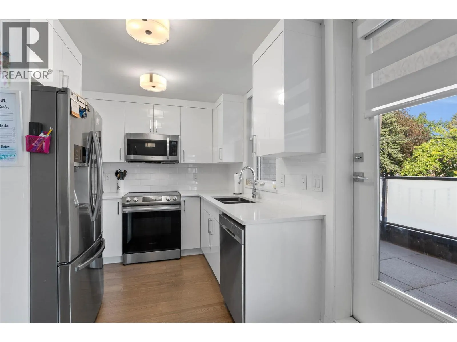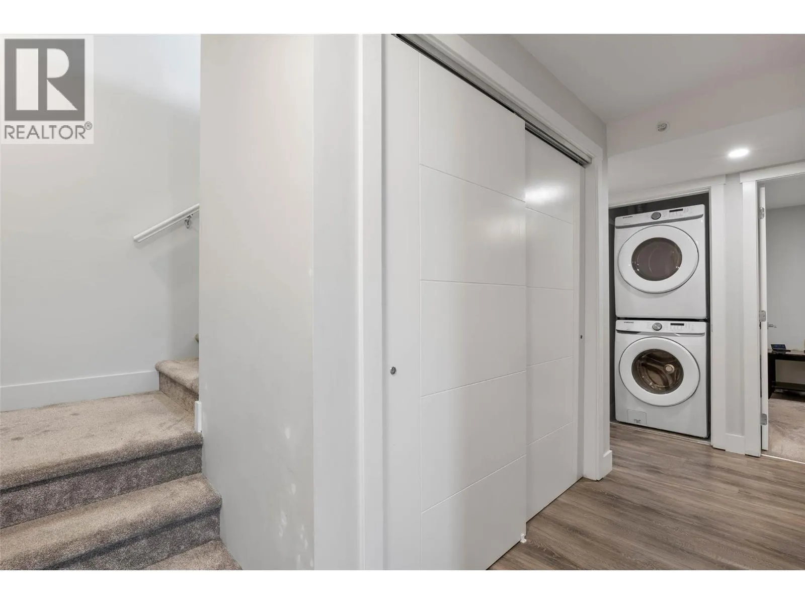 Welcome to Victory Place at 227 Battle Street! This modern 2-bedroom, 2-bathroom townhome offers 1,064 sq. ft. of thoughtfully designed living across two levels in the heart of downtown. With your own private entrance off Battle Street, youâre just steps from the Farmers Market, local restaurants, shopping, and Royal Inland Hospitalâan ideal blend of style and convenience. The main level features two comfortable bedrooms, a full bathroom, and in-suite laundry. Upstairs, the open-concept kitchen, dining, and living area create a bright and inviting space, complemented by a powder room, mudroom, storage, and direct parkade access. Step out from the kitchen to your private patio, perfect for BBQs with a view. High-quality finishes include engineered hardwood and tile flooring, plush bedroom carpet, quartz countertops, stainless steel appliances, and an upgraded glass railing for a sleek, modern touch. This pet- and rental-friendly complex also offers two secure side-by-side parking stalls, bike storage, and a stunning rooftop patio with panoramic views. Whether youâre looking to downsize, invest, or enjoy the vibrant downtown lifestyle, this move-in ready home truly has it all! (id:27476)