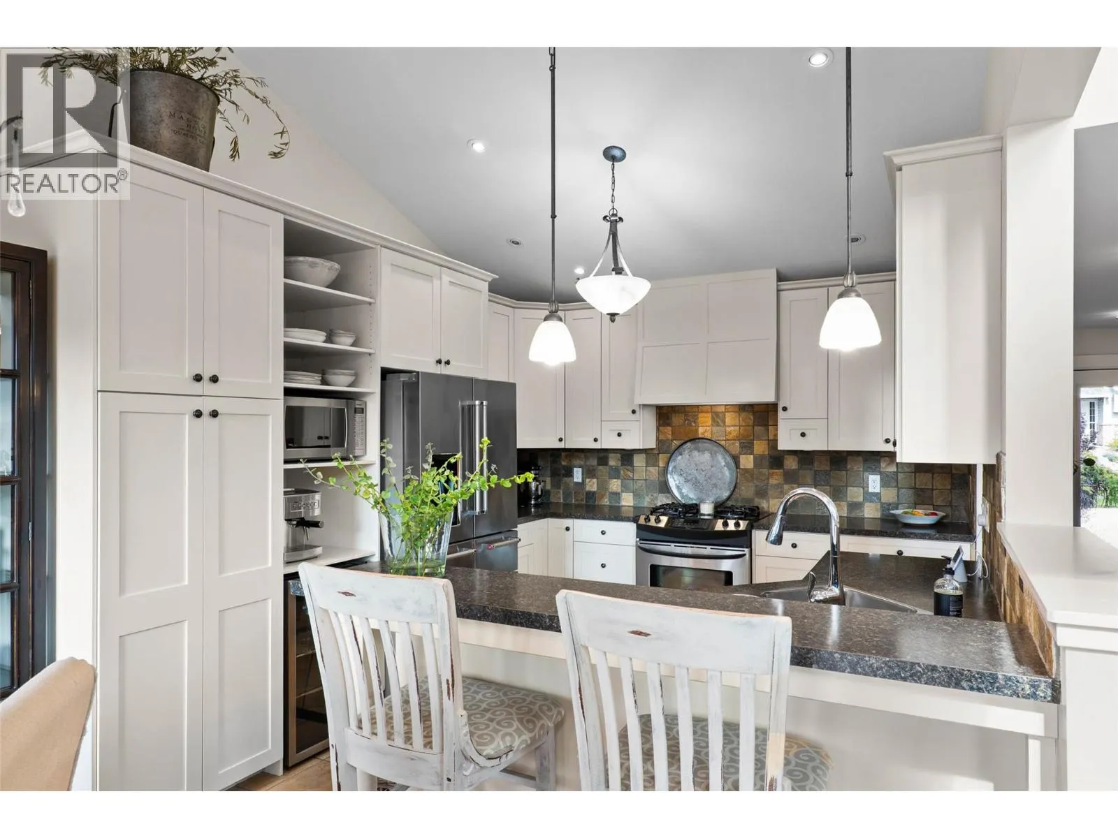 Beautifully Landscaped home in Sought-After Dufferin Location. Welcome to this meticulously maintained 4-bedroom, 3-bathroom home nestled on the highly desirable Saskatoon Place â a quiet, no-through road in the heart of Dufferin. From the moment you step inside, youâll be greeted by a grand vaulted entry and a bright, airy living space filled with natural light and direct access to your own private backyard oasis. The chef-inspired kitchen is a dream come true, featuring ample counter and cupboard space, perfect for entertaining or family meals. Adjacent to the kitchen, you'll find a professional office/den complete with custom built-in cabinetry â ideal for working from home. All tile flooring offers in-floor heating. The spacious main-floor primary suite offers ultimate comfort, with a generous walk-in closet, a 3-piece ensuite with a large walk-in shower, and serene views of the beautifully landscaped backyard. Upstairs, two generously sized bedrooms share a well-appointed 4-piece bathroom. Downstairs, thereâs plenty of room to spread out, with a large rec room, games area, home gym, and the potential to add a 4th bathroom â perfect for a growing family or guests. Additional features include a double-car garage, extra driveway space, and ample street parking. Conveniently located near schools, transit, Costco, the highway to Vancouver or the North, and just minutes to Aberdeen Mall and downtown Kamloops. Don't miss your chance to own this stunning home in one of Kamloops' most desirable neighborhood. Buyer to verify measurements. (id:27476)