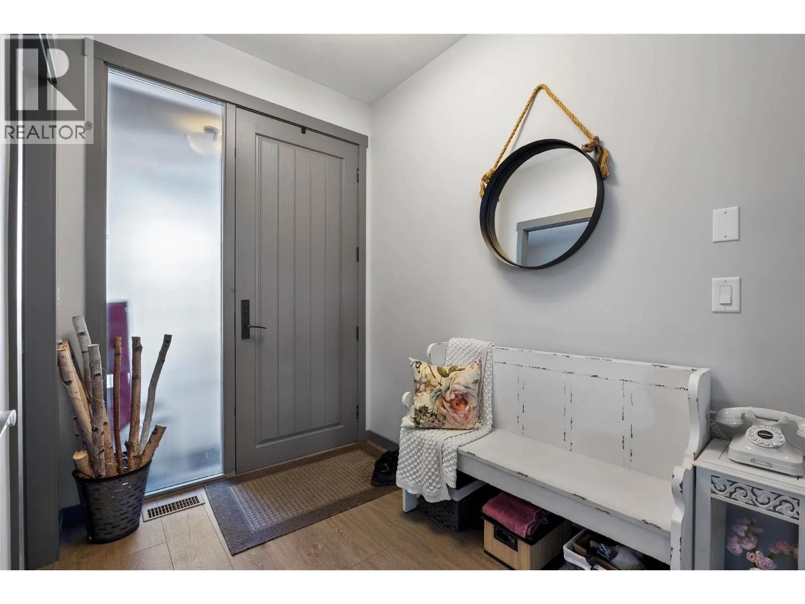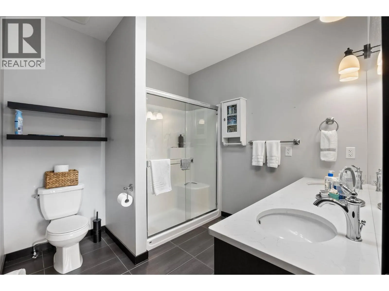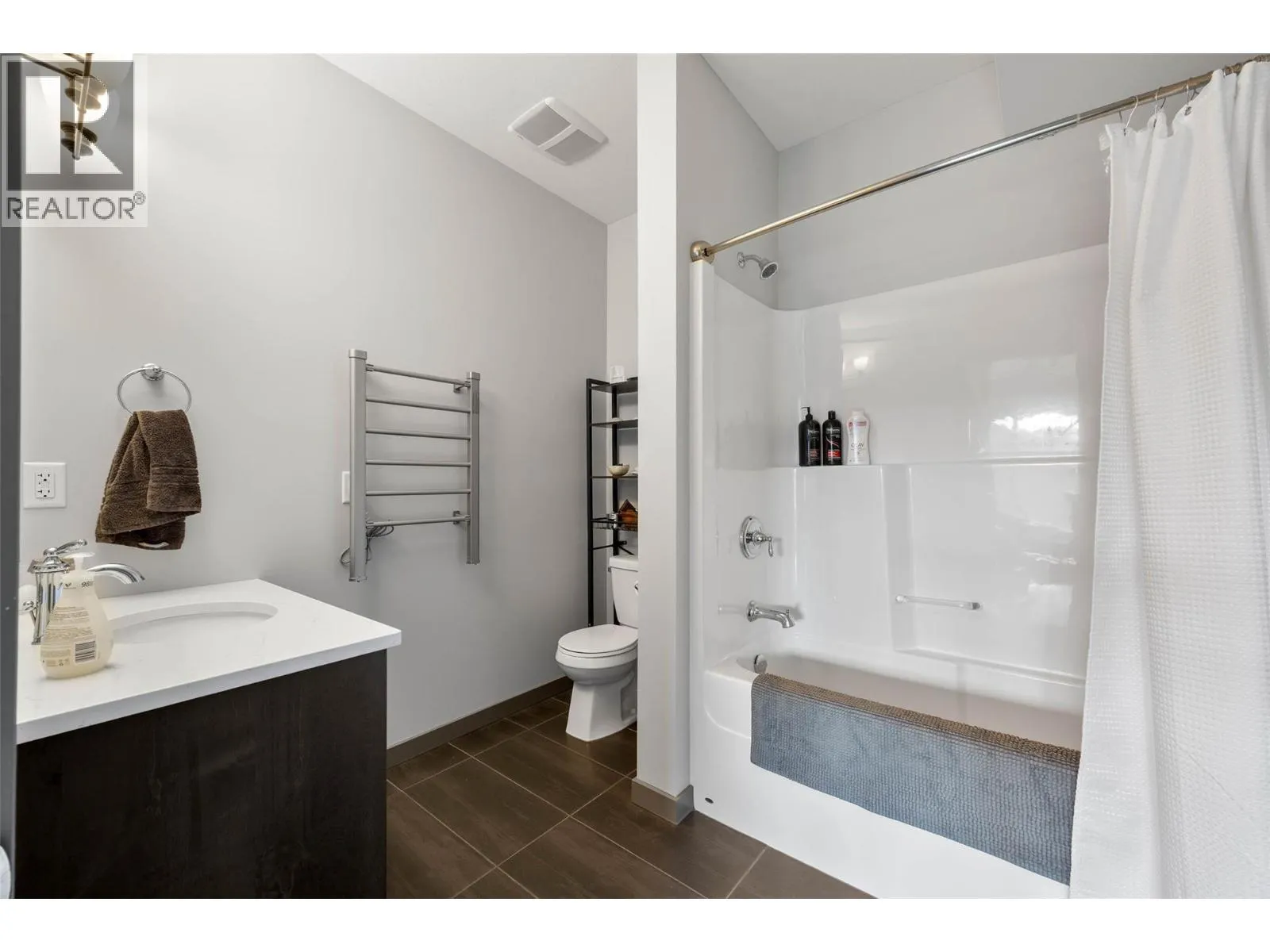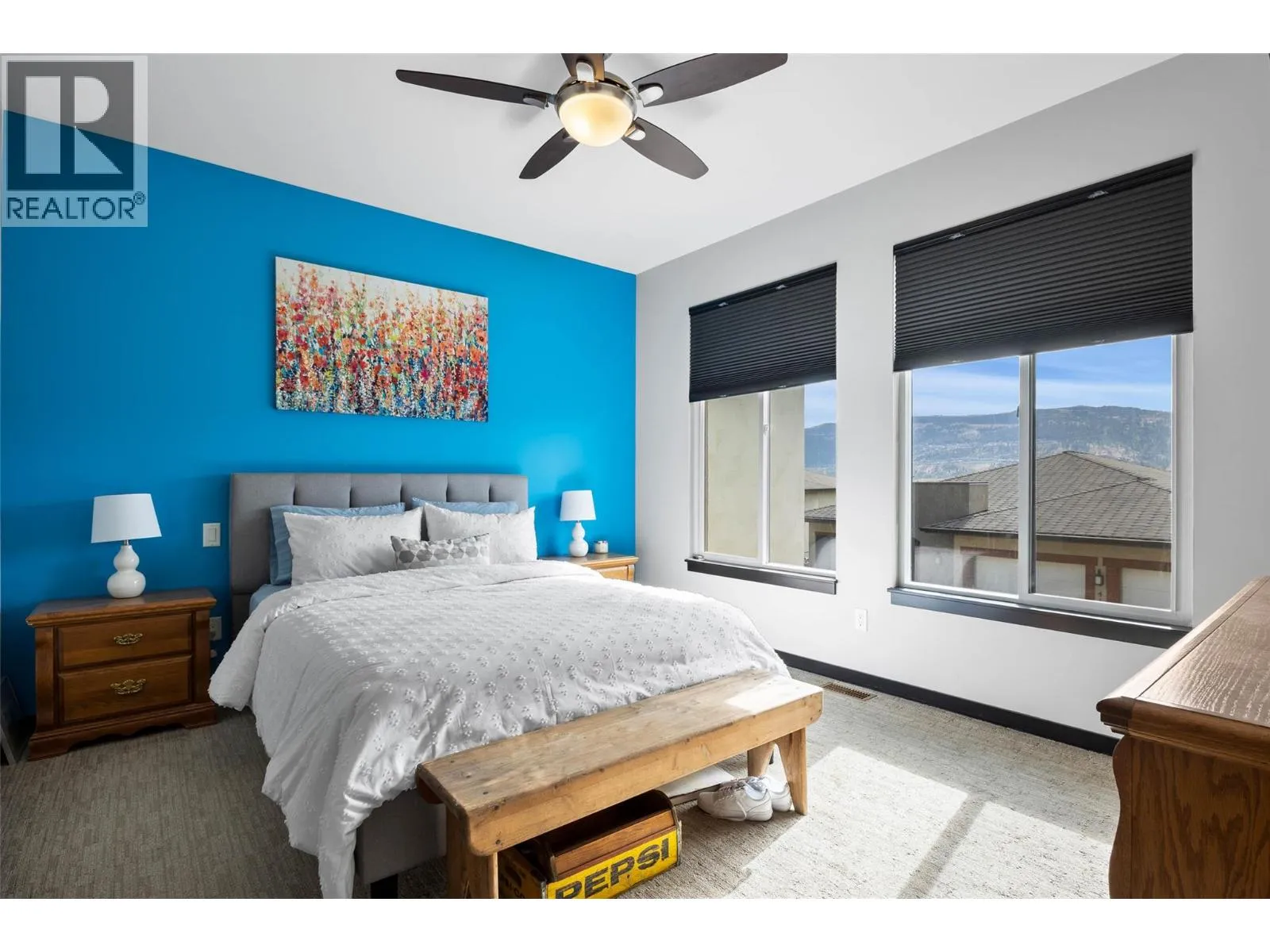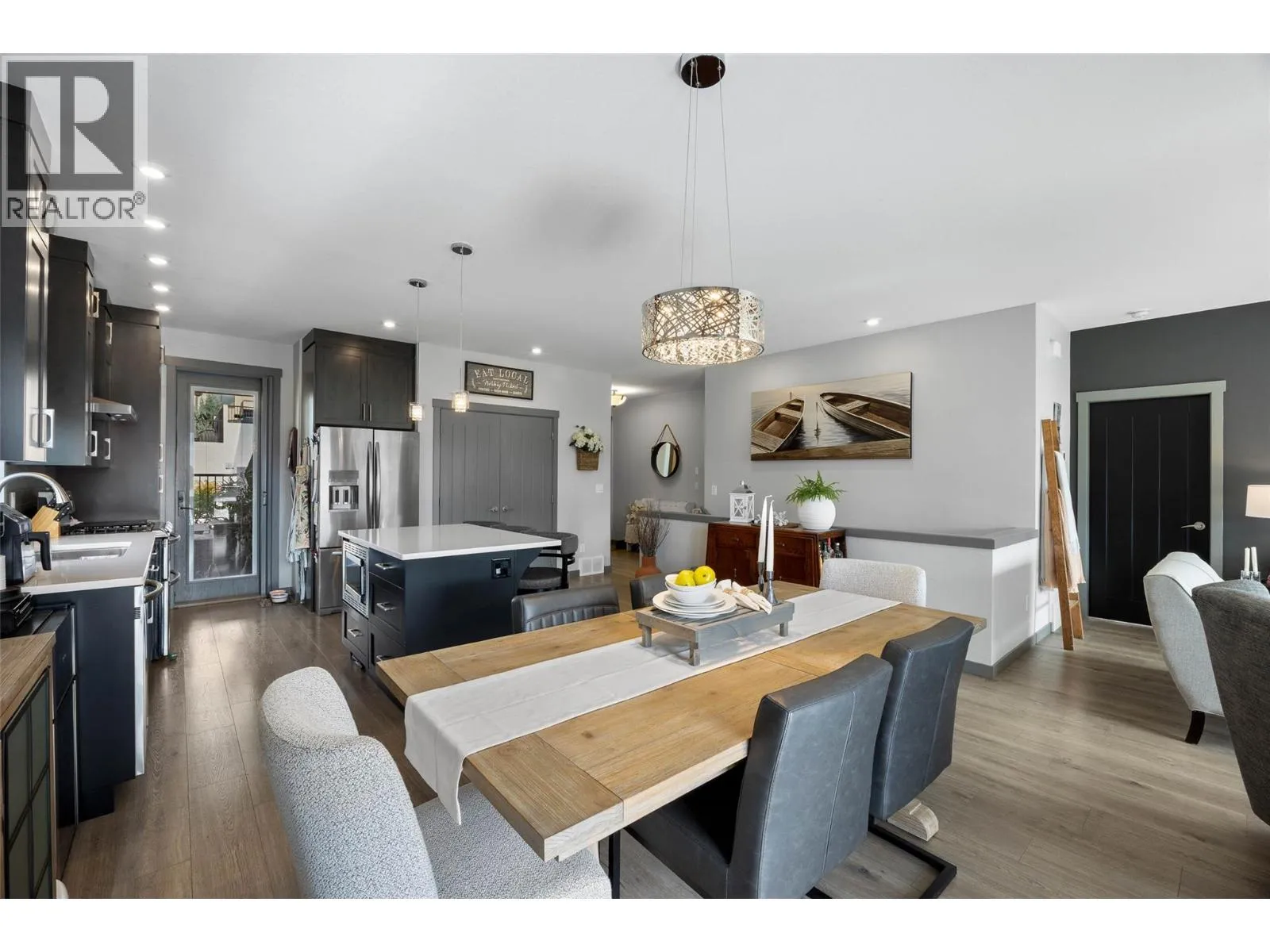 Welcome to Belmonte Gardens, a highly desirable Tuscan-inspired community in Sun Rivers. This level-entry, south-facing townhouse is filled with natural light and offers an open-concept design that seamlessly connects the kitchen, dining, and living areas, perfect for entertaining or everyday living. The kitchen features custom wood cabinetry with built-in lighting, quartz countertops, an island with extended seating, a gas stove, and a pantry with custom shelving. The spacious primary suite includes a skylit ensuite with double vanity, heated floors, and a walk-in closet with the convenience of in-suite laundry. A versatile den/office and powder room complete the main floor. Enjoy two outdoor spaces on this level: a covered deck with sweeping city and mountain views, and a private gated courtyard at the front. The lower level offers a second bedroom, large rec room, 3-piece bathroom, oversized storage, access to a second single garage, and a third outdoor patio area. Additional highlights include geothermal heating, central A/C, heated bathroom floors, two separate garages (ideal for his & hers, extra storage, or a golf cart), gas BBQ hook up and proximity to visitor parking. Just minutes from downtown Kamloops, championship golf, dining, and walking trails. An excellent fit for professionals, downsizers, families, or snowbirds. (id:27476)