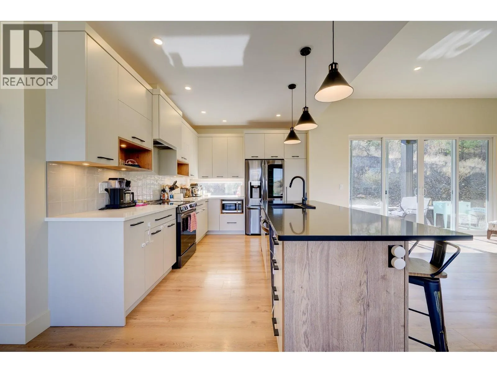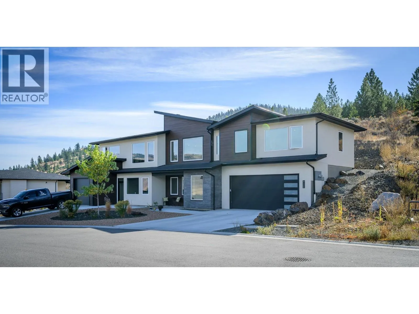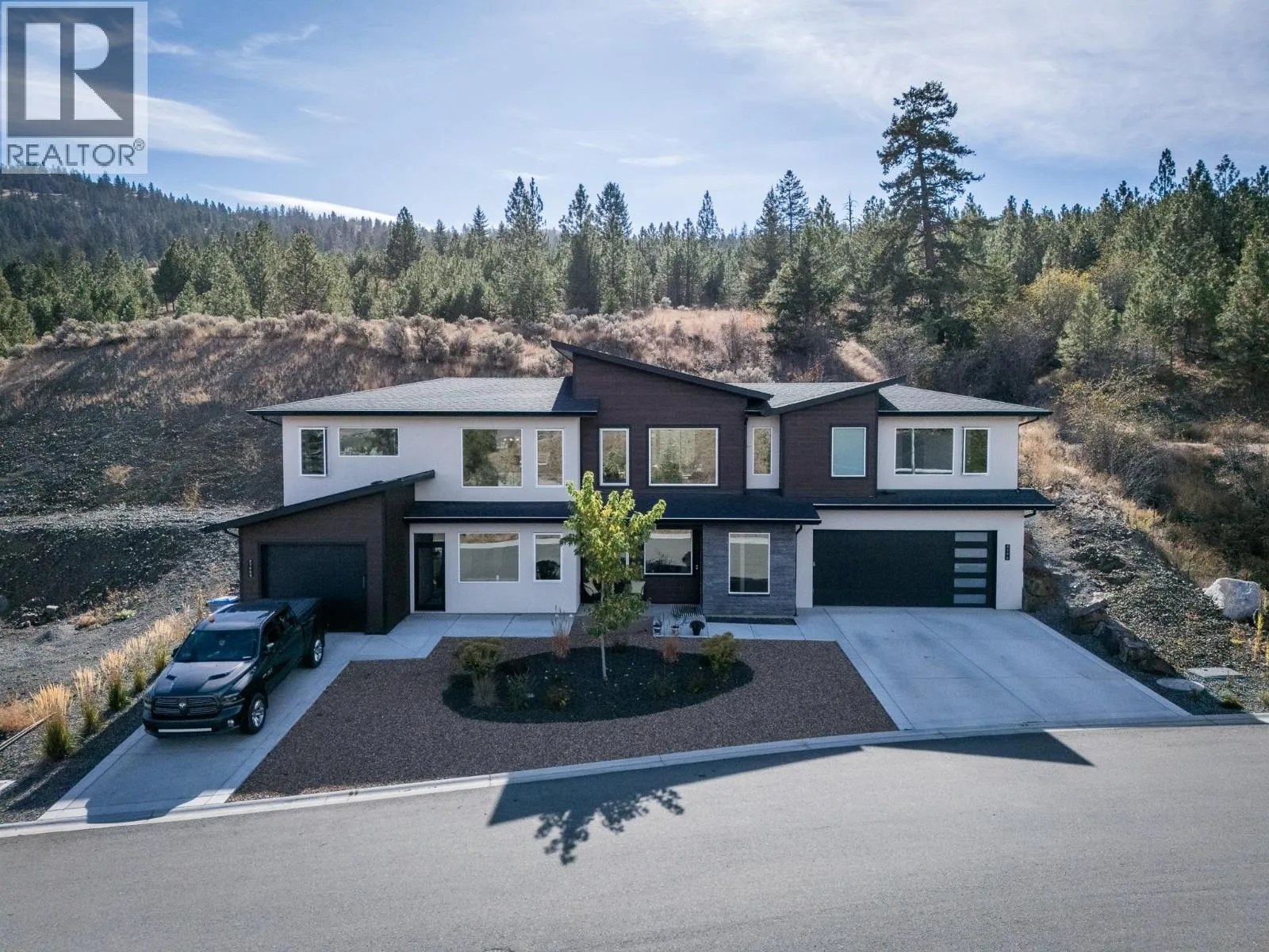 First Time on the Market in Juniper West! This custom-designed, one-of-a-kind home built by Fidanza is ideally situated at the end of a quiet cul-de-sac on Galore Crescent. Set on a spacious 8,567 sq.ft. lot, the property features a unique layout with a fully self-contained 1-bedroom legal suiteâcomplete with its own private garageâlocated on the east side of the home, offering excellent flexibility and income potential. The main residence occupies the west side and boasts 3 spacious bedrooms upstairs plus a convenient office on the main entry level. The interior is tastefully finished with a mix of laminate, tile, and vinyl plank flooring, and the open-concept main living area features raised ceilings and sweeping valley views. The stylish kitchen is a true showpiece, with a large island ideal for entertaining and modern two-tone cabinetry that adds a designer touch. Enjoy privacy, a premium location, and the benefit of a mortgage helperâall in one exceptional home. All measurements are approximate and should be verified by the buyer. (id:27476)