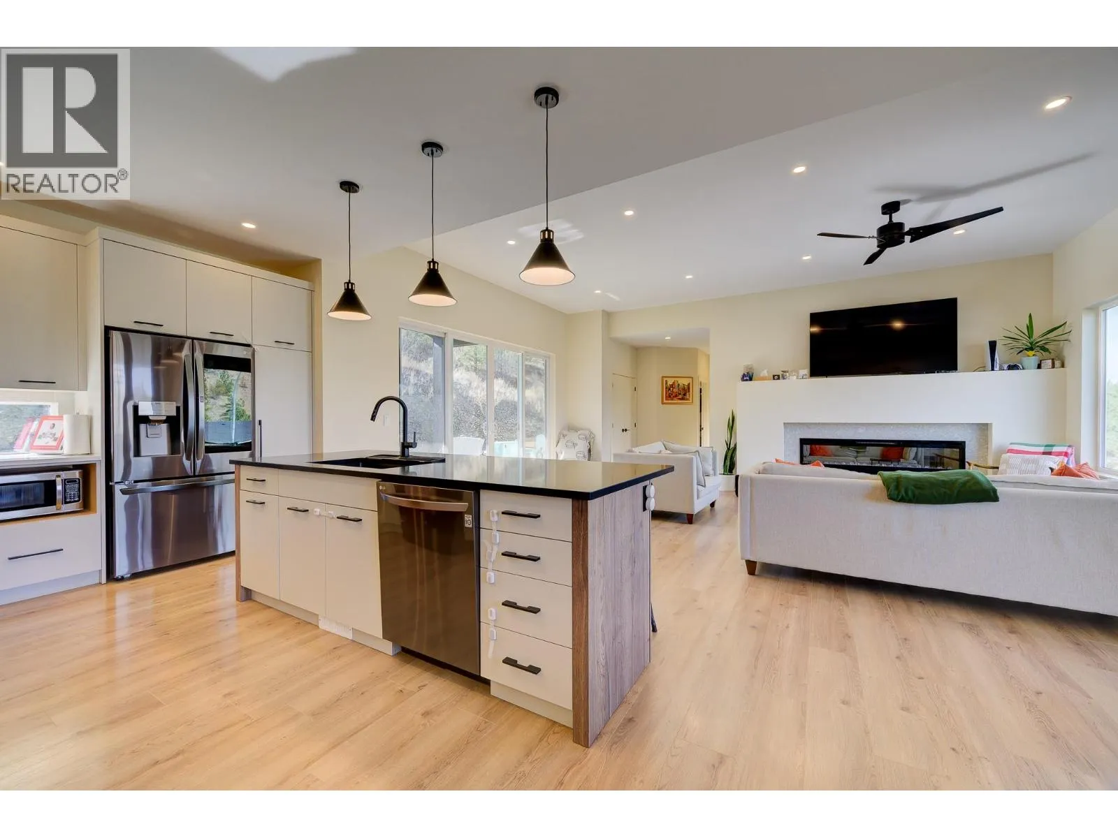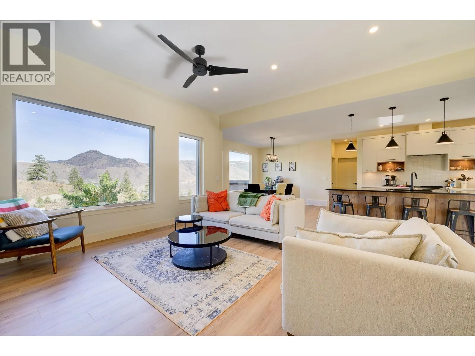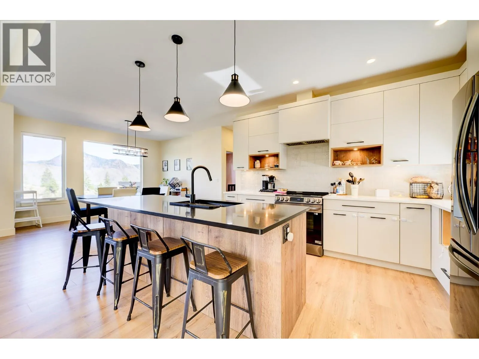 First Time on the Market in Juniper West! This custom-designed, one-of-a-kind home built by Fidanza is ideally situated at the end of a quiet cul-de-sac on Galore Crescent. Set on a spacious 8,567 sq.ft. lot, the property features a unique layout with a fully self-contained 1-bedroom legal suiteâcomplete with its own private garageâlocated on the east side of the home, offering excellent flexibility and income potential. The main residence occupies the west side and boasts 3 spacious bedrooms upstairs plus a convenient office on the main entry level. The interior is tastefully finished with a mix of laminate, tile, and vinyl plank flooring, and the open-concept main living area features raised ceilings and sweeping valley views. The stylish kitchen is a true showpiece, with a large island ideal for entertaining and modern two-tone cabinetry that adds a designer touch. Enjoy privacy, a premium location, and the benefit of a mortgage helperâall in one exceptional home. All measurements are approximate and should be verified by the buyer. (id:27476)