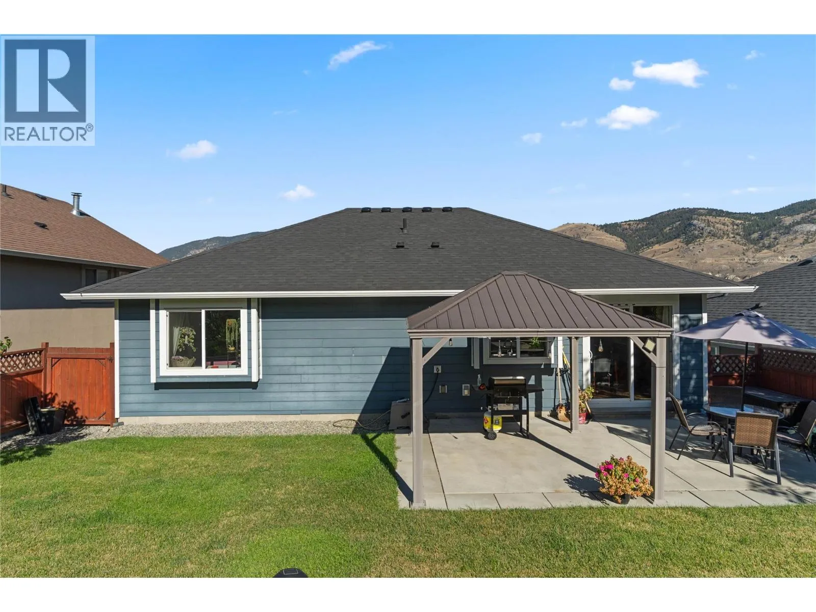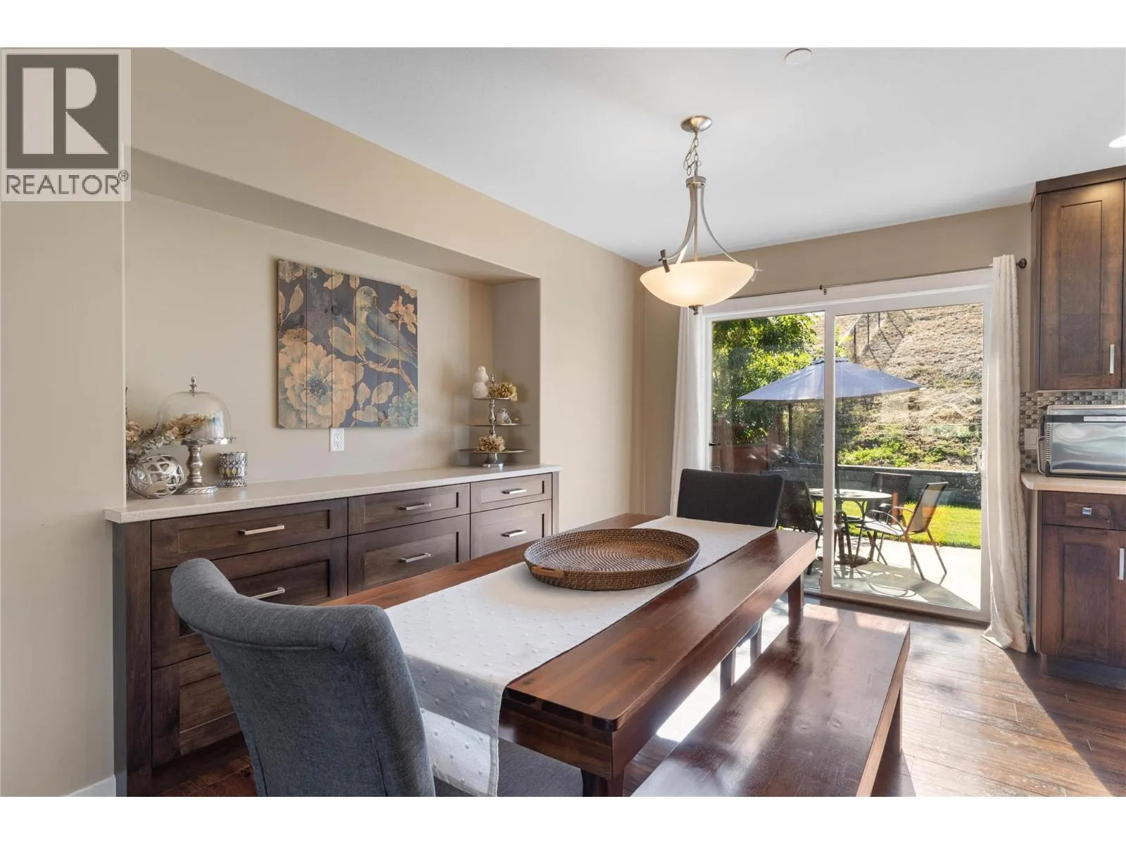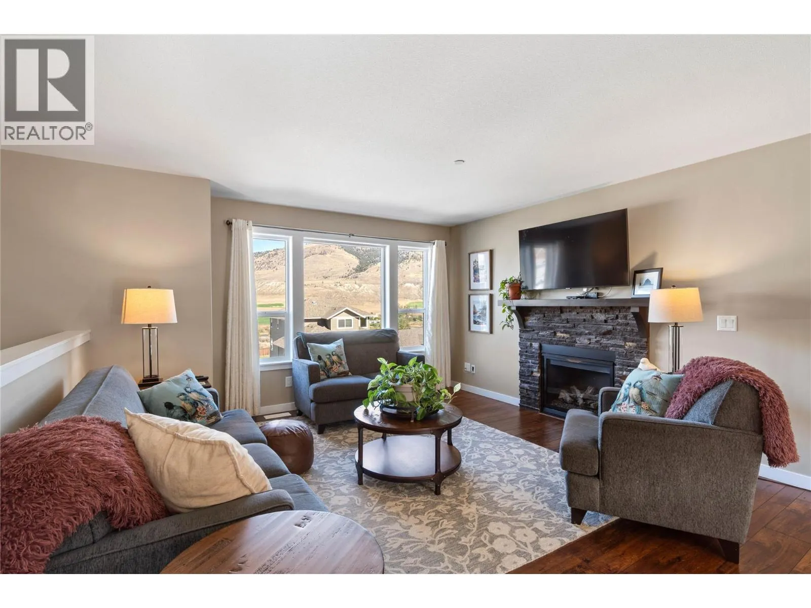 Beautiful family home with great street appeal, xeriscaped front yard & generous 3 car wide driveway for your RV or boat with easy care manual UG sprinklers for the front plantings. Welcoming foyer with front bedroom/office and access to the oversized, heated double garage with tandem bay for a 3rd vehicle or workshop. Upper level features engineered hardwood floors, open concept living with island kitchen with appliances included & lots of cabinets for storage. Spacious living room has gas fireplace & stunning river and mountain vineyard views. Dining area with built-in buffet opens to a private fenced yard with negotiable gazebo â perfect for kids & pets. Three bedrooms up including a spacious primary with 4pc ensuite, double sinks & large shower. Entry level offers a bright bachelor in-law suite with Murphy bed, private entrance & full kitchen with all appliances and full bath â ideal mortgage helper or guest space. New hot water tank, in-house sprinkler system, well maintained & serviced furnace & A/C. Backs onto greenspace with trails & close to neighborhood park â the perfect home for a growing family! (id:27476)