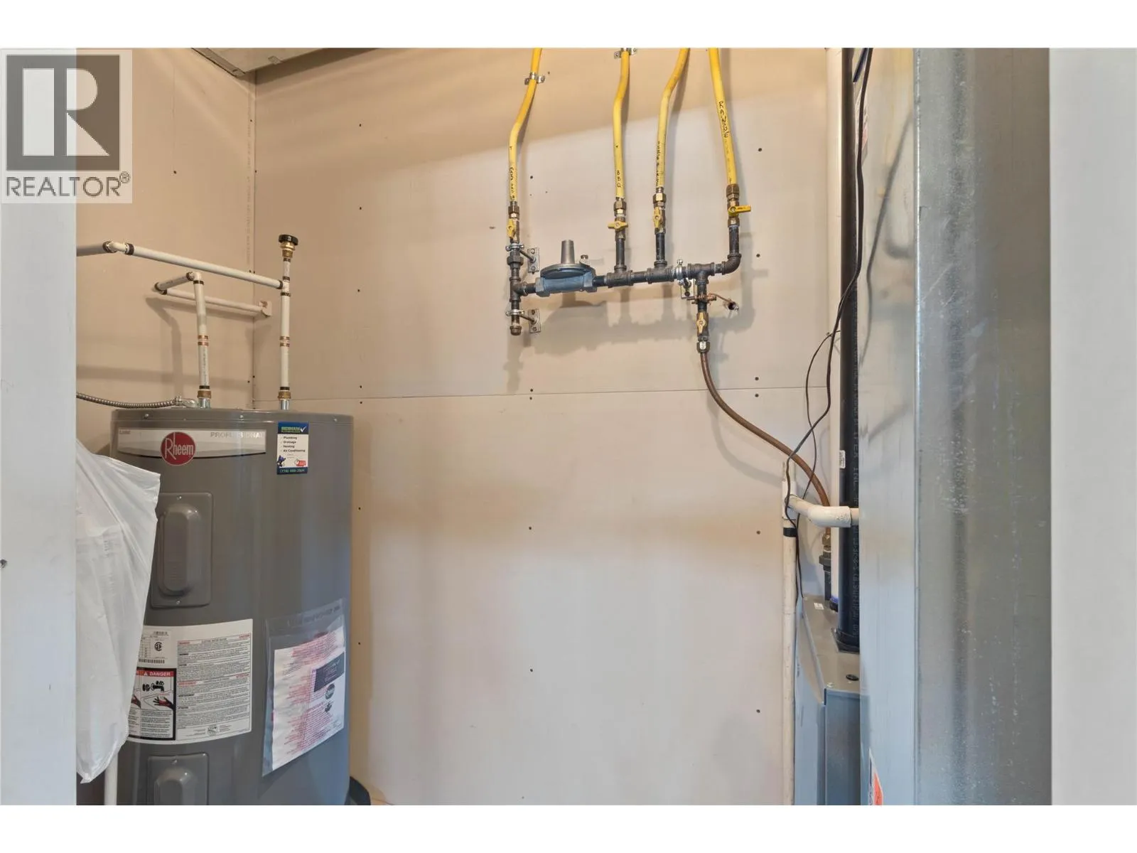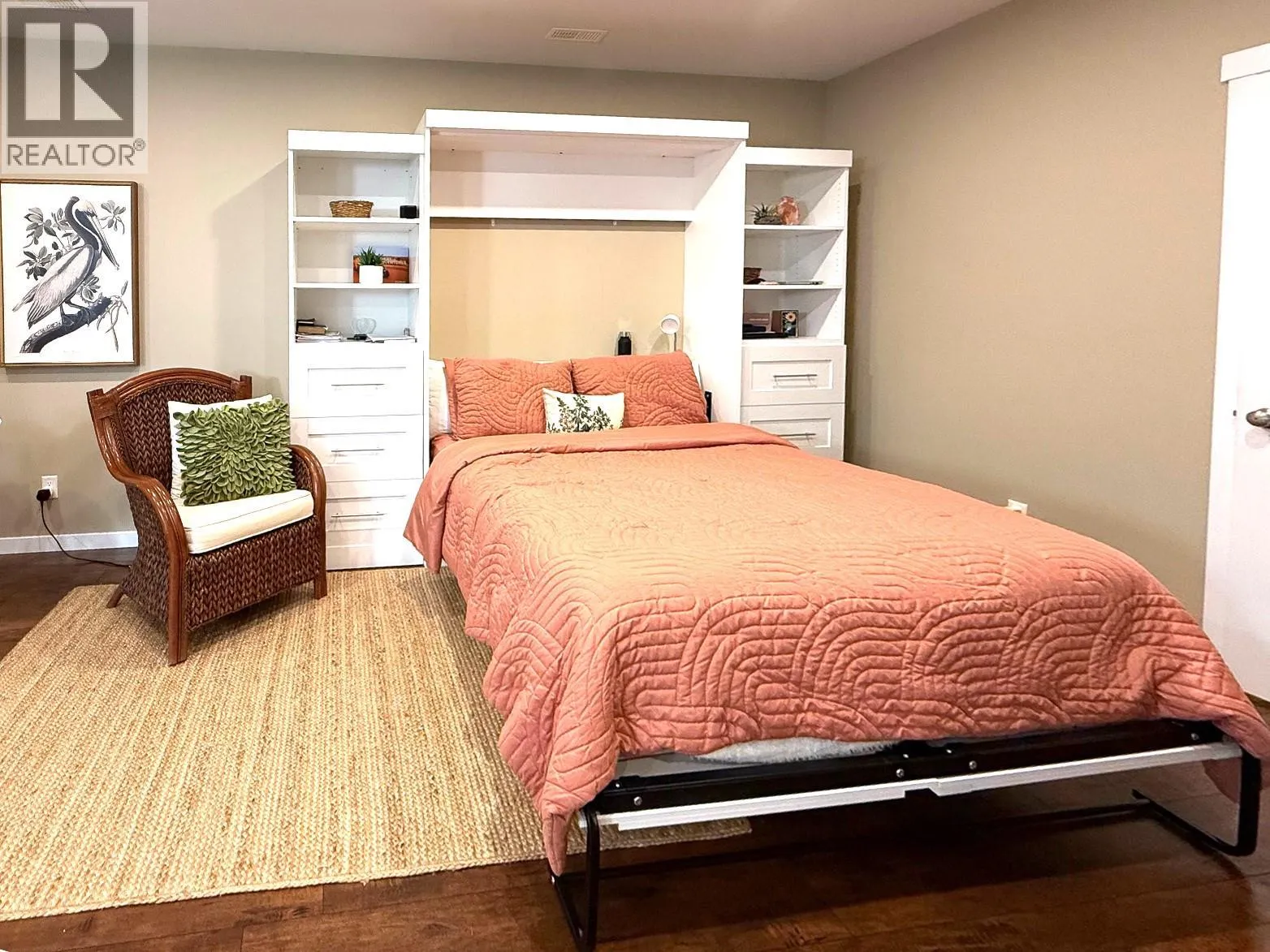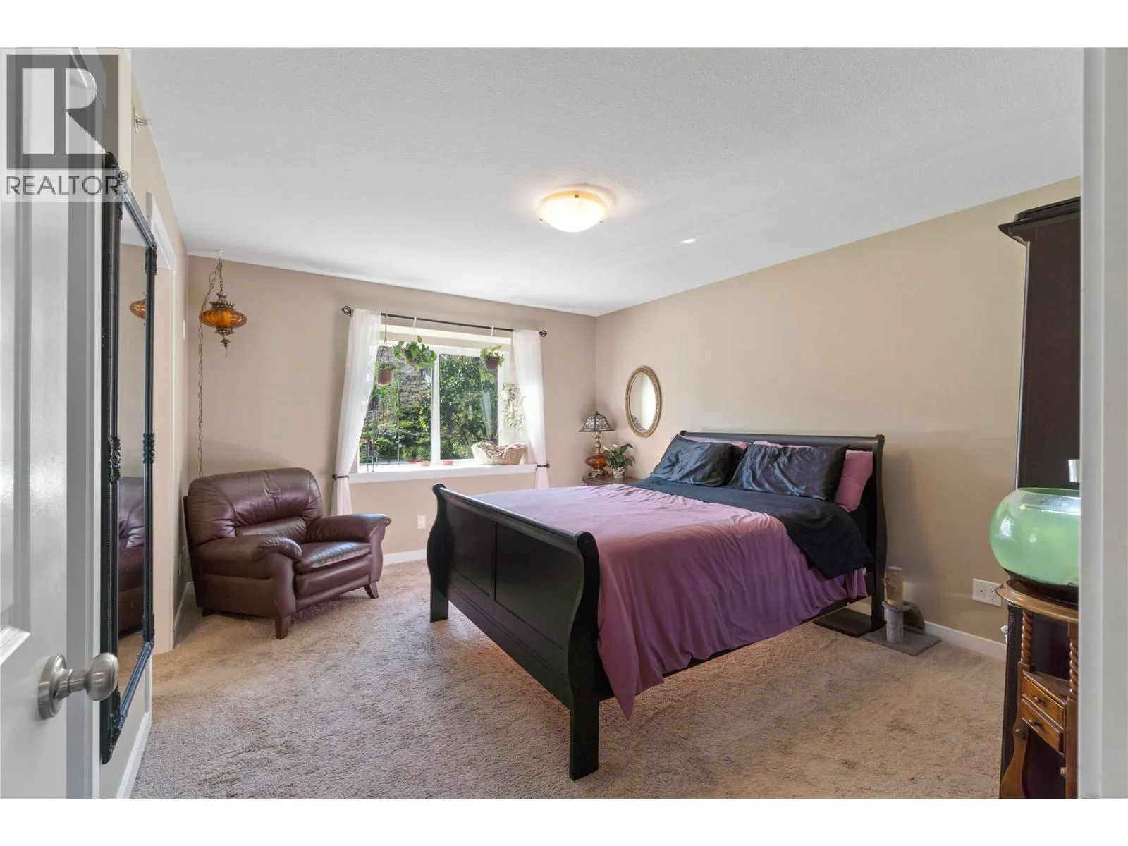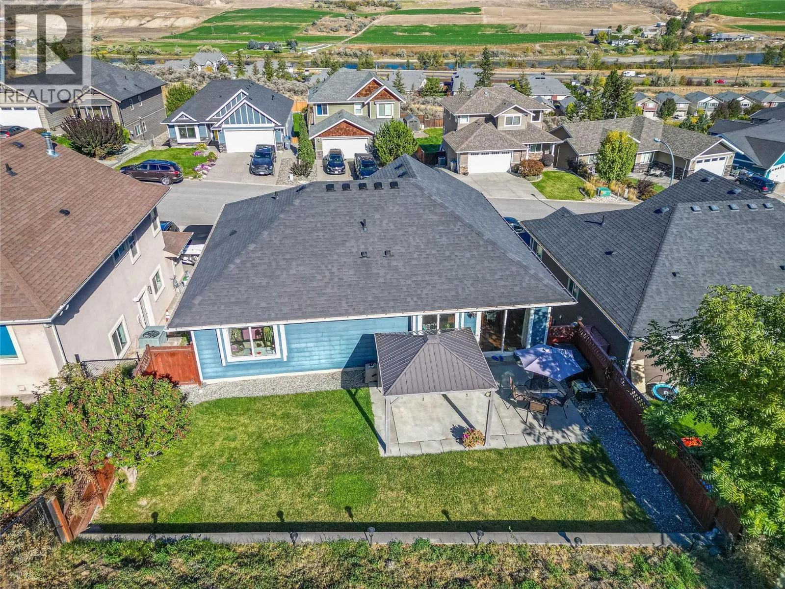 Beautiful family home with great street appeal, xeriscaped front yard & generous 3 car wide driveway for your RV or boat with easy care manual UG sprinklers for the front plantings. Welcoming foyer with front bedroom/office and access to the oversized, heated double garage with tandem bay for a 3rd vehicle or workshop. Upper level features engineered hardwood floors, open concept living with island kitchen with appliances included & lots of cabinets for storage. Spacious living room has gas fireplace & stunning river and mountain vineyard views. Dining area with built-in buffet opens to a private fenced yard with negotiable gazebo â perfect for kids & pets. Three bedrooms up including a spacious primary with 4pc ensuite, double sinks & large shower. Entry level offers a bright bachelor in-law suite with Murphy bed, private entrance & full kitchen with all appliances and full bath â ideal mortgage helper or guest space. New hot water tank, in-house sprinkler system, well maintained & serviced furnace & A/C. Backs onto greenspace with trails & close to neighborhood park â the perfect home for a growing family! (id:27476)