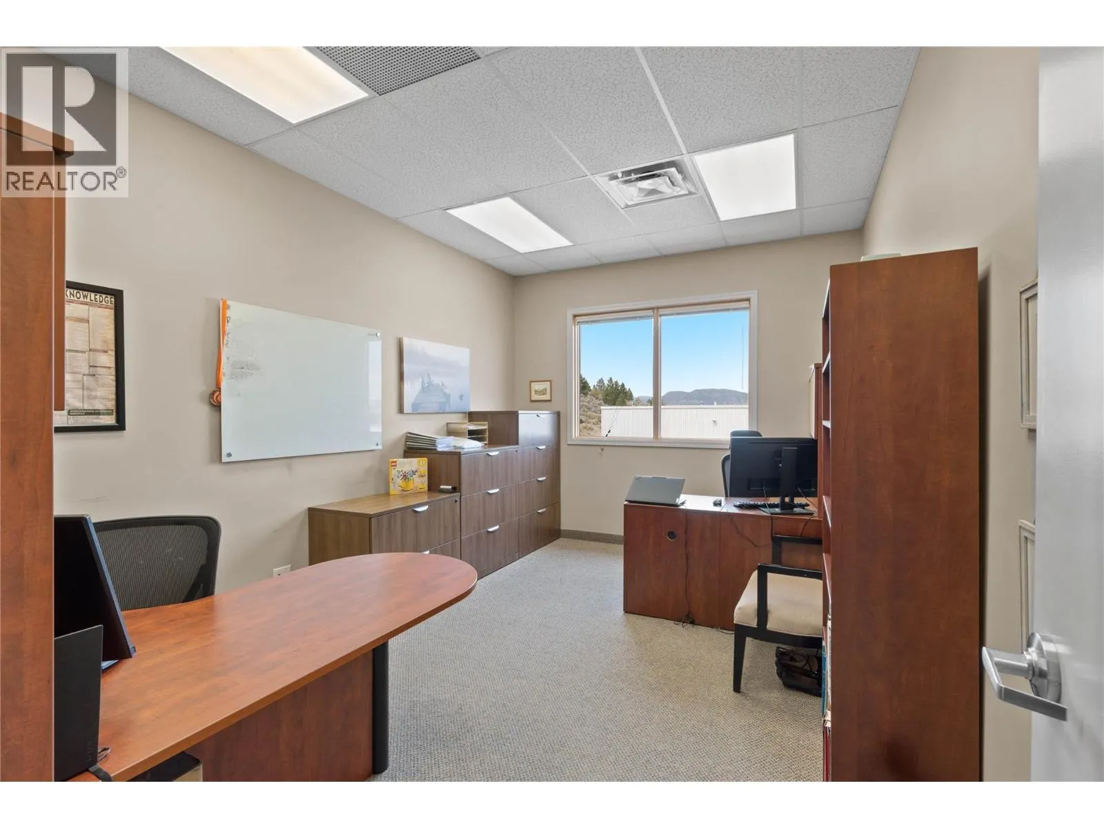 Rarely available professional office space centrally located in the Dufferin light industrial area of Kamloops. Unit #106 is a second floor 1,424 SF office with a washroom, kitchen / lunchroom and three large executive offices and an open workspace. Adjacent to TRU in an area of many of Kamloops' leading service industrial companies, this 'Class A' light industrial facility has features and amenities difficult to find in the Kamloops region. Contact the listing agent for additional details (id:27476)