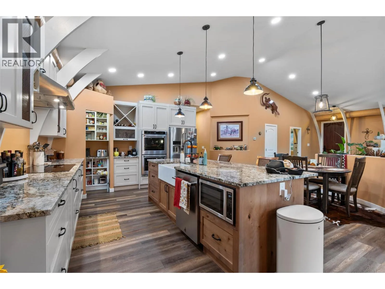 Discover the perfect blend of modern living & country charm at this beautifully renovated custom home with 52+ riverfront acres offering privacy, comfort, & breathtaking natural surroundings. This custom 3 bedroom + an office, 3 bathroom home has been thoughtfully redesigned with high-quality finishes throughout, featuring a spacious open-concept layout. The main living space features 13ft vaulted ceilings accented by a beautiful fireplace; an ideal space for entertaining or relaxing. Luxury custom kitchen boasts modern cabinetry, premium appliances, walk-in pantry & a large island-- a true centrepiece for gatherings. Enjoy an oversized primary bedroom boasting a serene retreat with a custom en-suite bathroom finished with a soaker tub & separate walk-in tiled shower (rain shower), & a generous walk-in closet. Outside, enjoy the best of rural living with a private beach, scenic trails, pasture & a BC Greenhouse for year-round gardening. This property also includes a productive hay-field with push-button irrigation, generating 3 cuts with 200-250 round bales. Plenty of water with 2 wells (domestic & an irrigation well). Encompassed next to the home is an attached double car garage, breezeway, a massive shop & a separate 2 level outbuilding as well as covered hay storage. Peaceful, private, & just a short drive to Kamloops, this property offers a rare opportunity to own an immaculate piece of riverfront paradise. Inquire for a full info package or private viewing! (id:27476)