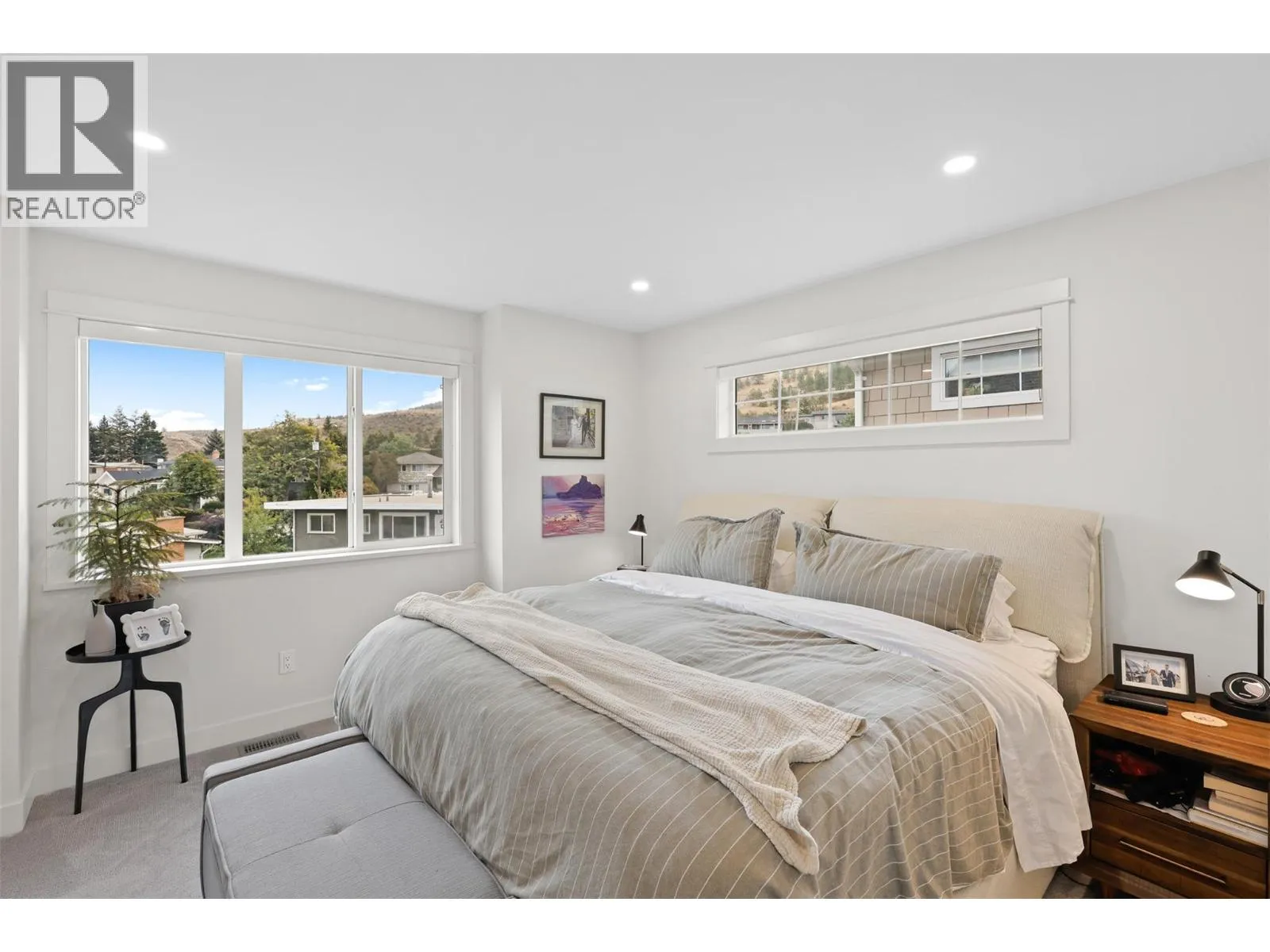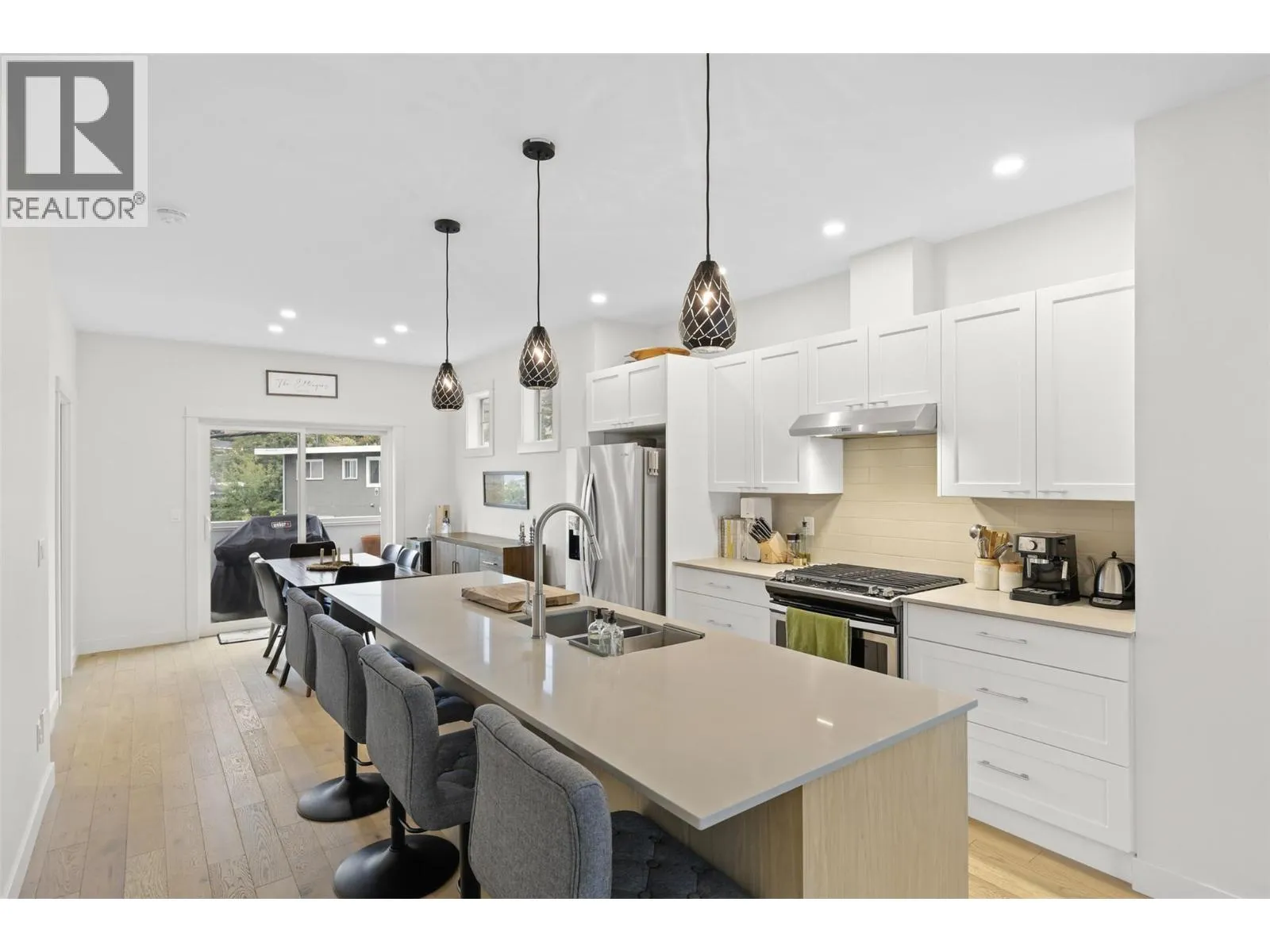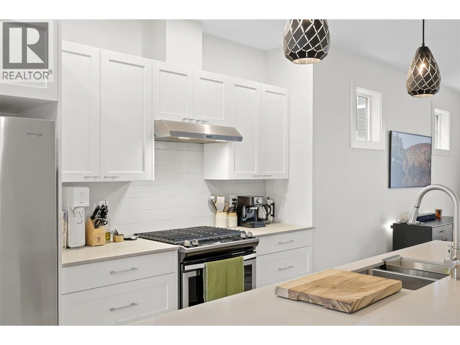 Welcome to The Walk â a modern, low-maintenance community just minutes from downtown Kamloops. This bright end unit stands out with extra windows and natural light that fills every corner. With 2 bedrooms, a den, and 3 bathrooms, this townhouse blends convenience, style, and function in all the right ways. The ground level offers a welcoming entry, a versatile den (perfect for your home office or to tackle your favourite home workout), and a spacious single garage. Upstairs, the open-concept main floor is made for entertaining â the sleek kitchen features quartz countertops, a huge island, and modern cabinetry that flows seamlessly into the living and dining areas. Step out onto your cozy deck â just the right size for your BBQ, a few herbs, or a comfy chair to unwind after work. Upstairs, youâll find two bedrooms, a full bath, and laundry. The primary suite includes a large closet with custom built-in shelving and ensuite with a full tile shower. Bonus features include air conditioning, the remainder of the home warranty, and a second parking stall just steps away. Enjoy easy access to Peterson Creek Park, the Sagebrush Theatre, schools, and parks â everything you love about Kamloops living is right outside your door. Move in, explore, and start walking your way into a great new lifestyle at The Walk. (id:27476)