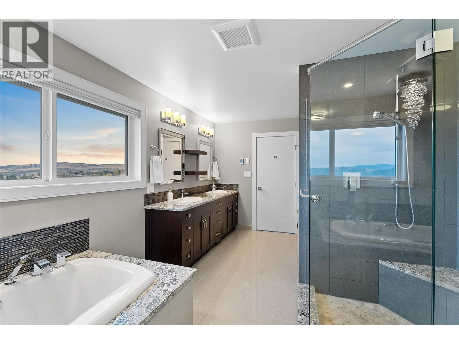 Welcome to 2214 Crosshill Drive. Nestled in a highly sought after location in Aberdeen, this beautiful home offers stunning panoramic city, mountain and river views. The open-concept main floor features a custom granite top kitchen with stainless steel appliances and crystal chandeliers. Off the kitchen, the living room has custom built in book shelfs, and access to a large deck off the main floor to soak in the remarkable views and the fully fenced, tiered backyard. With a total of four bedrooms, three and half baths, there is a lot of space for a growing family or guests. Experience ultimate comfort in the primary bedroom with the huge walk-in closet, offering abundant storage and organization and 5-piece ensuite featuring a separate soaker tub, double sinks, and walk-in shower. The lower level offers media theatre room with suite potential. This home comes also with a HRV (Heat Recovery Ventilation), built in security system, and a Hot Tub. Donât miss your chance to view this home and call home. All Measurements Approx buyer to verify if important. (id:27476)
