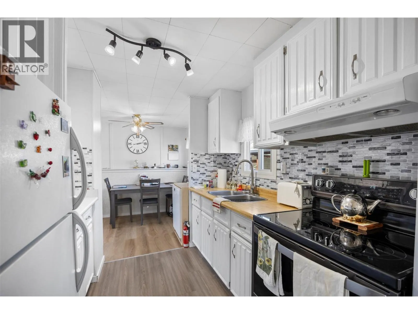 Welcome to this clean 2-bedroom, 1-bath mobile home located in the sought-after Oakdale Mobile Home Park. As you step inside, you'll find a bright and spacious living area. The kitchen has been recently updated with modern appliances and plenty of storage space, while new vinyl flooring flows throughout most of the home. At the back, two comfortable bedrooms await, along with a bathroom featuring an accessible shower. Recent upgrades include new laundry facilities installed in 2023, including professional venting, electrical updates in 2019, including a new thermostat, and two new exterior doors added in 2024. Outside, enjoy a covered porch and a generous carport that fits two vehicles, plus extra storage in the shed. This smoke-free, pet-free home has been well-maintained, including regularly servicing the heating and cooling system. Pad rent includes water and sewer. Pets are allowed with restrictions. (id:27476)