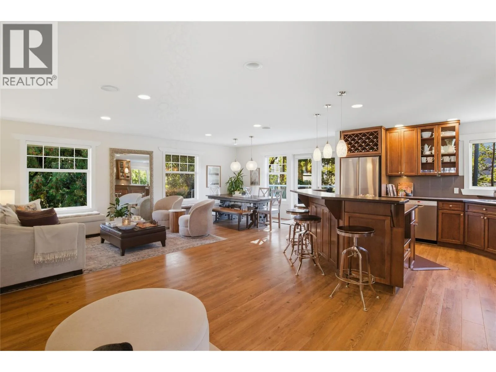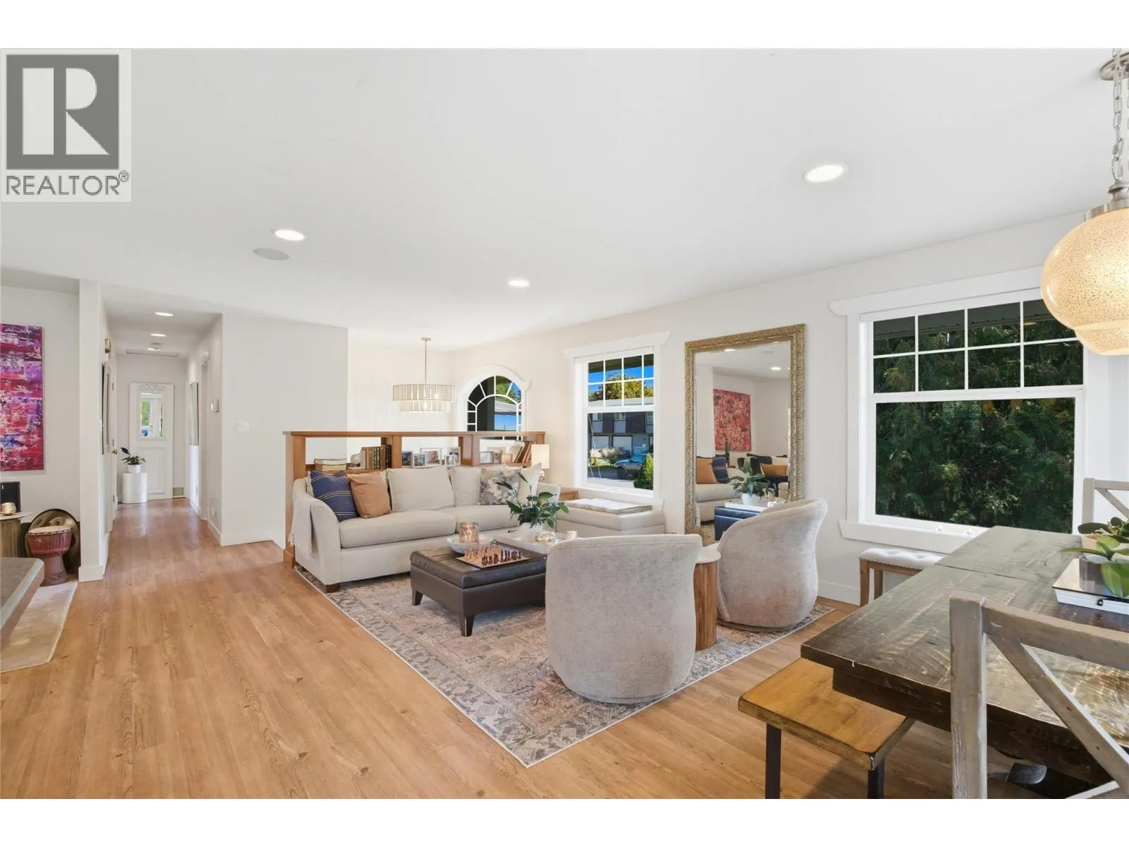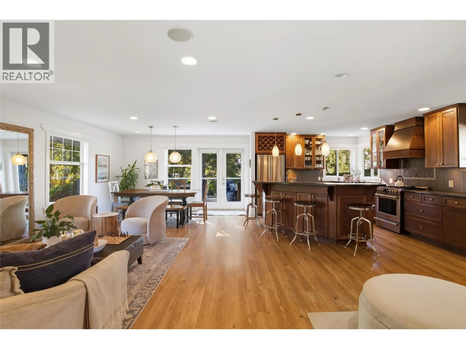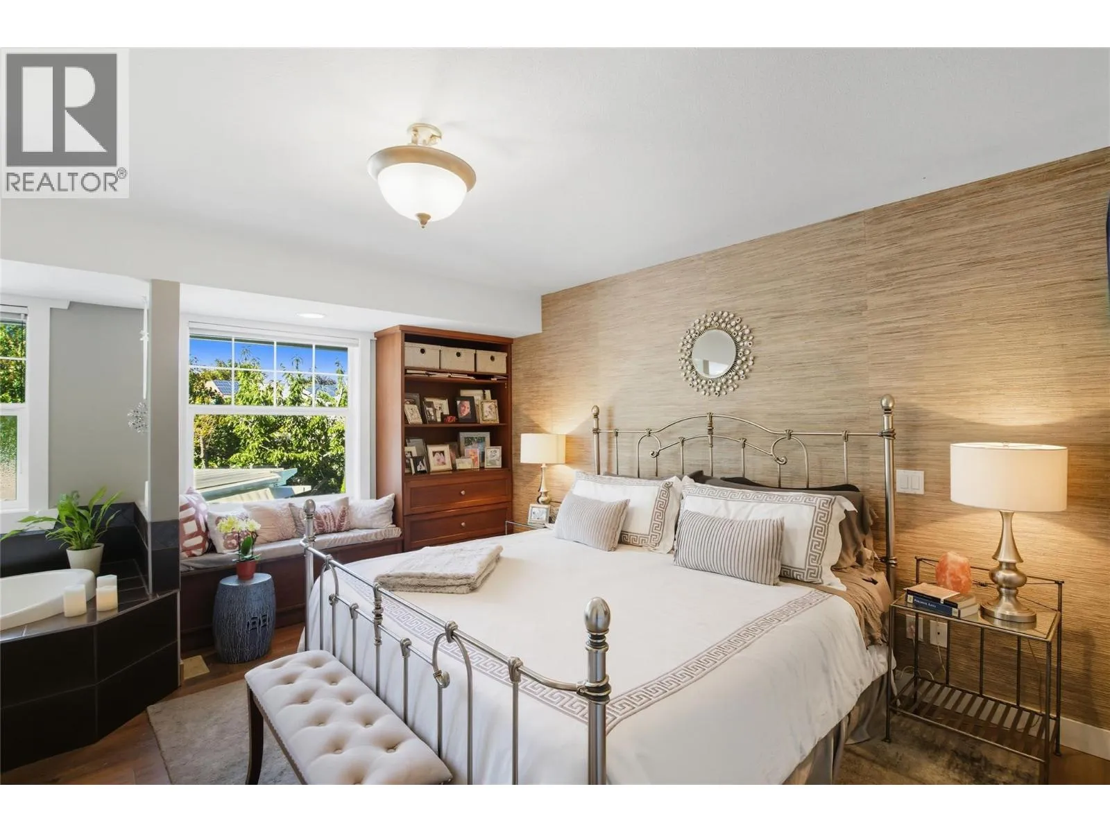 Tucked at the end of a quiet cul de sac, this waterfront home feels like a private retreat, framed by tall trees and the shimmer of water just beyond. Inside, 2,310 square feet of updated living space includes 5 bedrooms and 3 bathrooms, all thoughtfully designed for comfort and style. Perched on a 10,028 square foot lot, the home opens to a 30 by 13 deck with a hot tub and stunning views. The kitchen is a standout, with premium finishes and appliances. Natural light fills the space, creating a warm, welcoming atmosphere. The backyard is built for connection and calm. A custom gas fireplace sits on exposed aggregate concrete with subtle lighting, while power is wired throughout for easy entertaining. Just beyond, a sandy beach invites barefoot moments by the water. The home has been carefully maintained, with a two year old roof with 40 year shingles, new furnace and AC (2023), 80 gallon hot water tank (2024), Hardie siding, and wool carpet throughout. Outside, thereâs a two car garage, RV parking, a backyard fort, and fruit trees that bloom with the seasons. Just minutes from parks, schools, and Mac Park, this location blends privacy with convenience. This is more than a home. It is where mornings start by the water, where summer memories are made, and where lasting stories unfold. (id:27476)