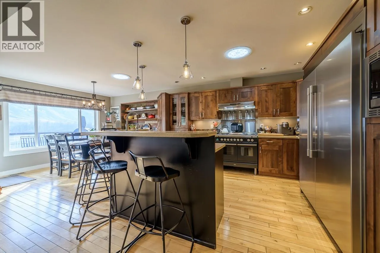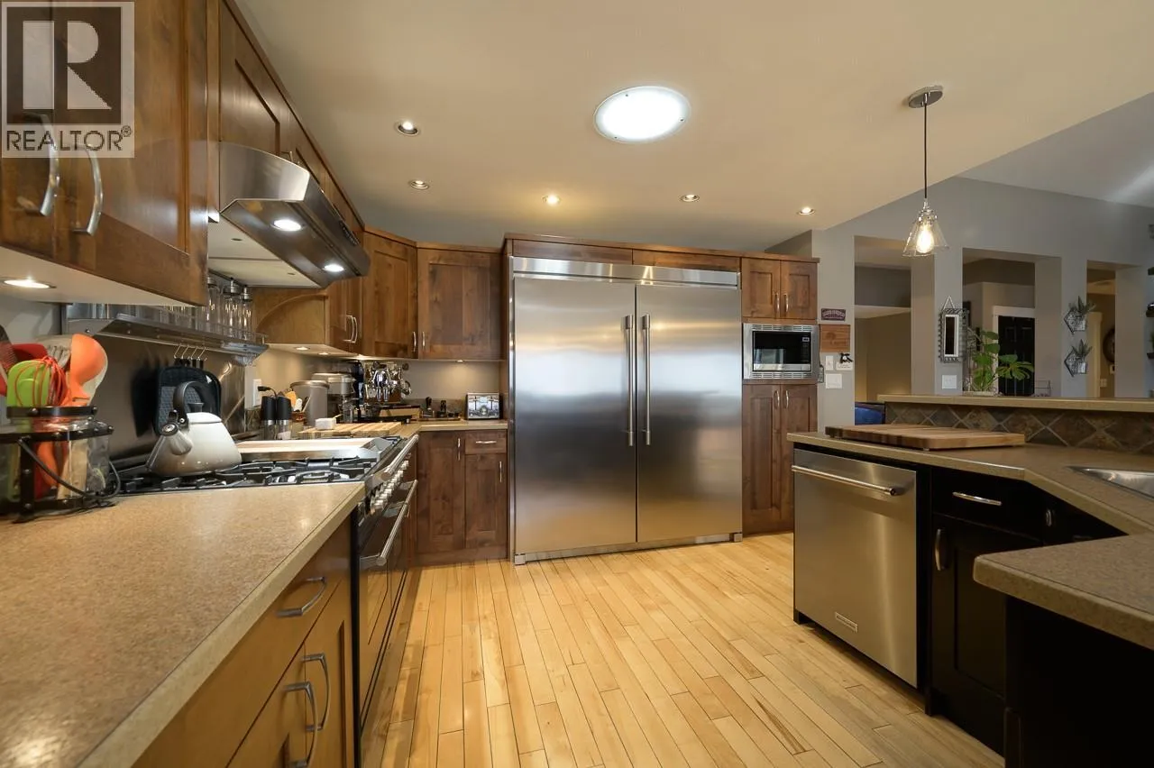 Experience the best of riverfront living in one of Westsydeâs most desirable neighborhoods. This stunning 3,200 sq. ft. home blends comfort, style, and efficiency with thoughtful design inside and out. The main floor features 2 bedrooms plus a den, highlighted by hardwood flooring throughout. The spacious primary suite captures river views and includes a spa-inspired ensuite with a custom tiled shower, corner soaker tub, heated floors, and a walk-in closet. The gourmet kitchen is a chefâs dream, boasting a 40â designer gas range with dual ovens, a full-size fridge/freezer, and updated finishes. Custom cabinetry extends into the dining, living, and laundry rooms, adding both elegance and functionality. Step out onto the expansive deck, complete with a natural gas outlet, and enjoy the privacy of your fully fenced yard. This home features a solar system that has surpassed net-zero energy for the past two years, along with a high-efficiency furnace, hot water on demand, and HRV system for year-round comfort. The 3-car garage includes two 220V outlets, ideal for EV charging or workshop use. Downstairs, the fully finished basement is built for entertaining, offering a spacious media room with wet bar, a full bathroom, additional bedroom, exercise room, and generous storage. With its own separate entry, this level also provides excellent potential for an in-law suite. This exceptional property combines riverfront tranquility with modern luxury and sustainabilityâtruly a rare find. (id:27476)