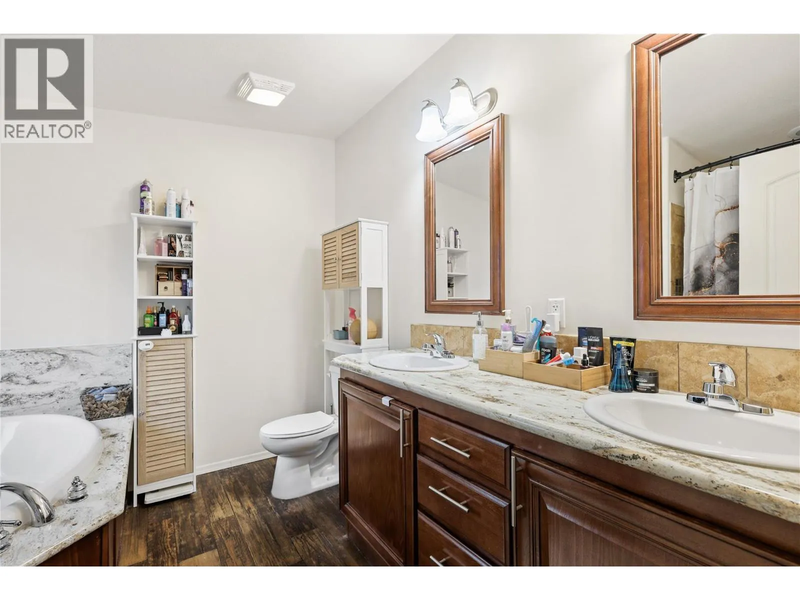 This amazing home was built in 2015 and is located in the desirable complex of South Bend Estates, within walking distance to hiking trails/paths and is just minutes from downtown Kamloops! Perfect for first time home buyers or for those who are looking to downsize. Featuring 1,624 sq ft of indoor living space, an open floor-plan with vaulted ceilings, 3 large Bedrooms all with walk-in closets and 2 full bathrooms which includes the huge 5pc master ensuite with soaker tub! The spacious kitchen offers a pantry, an island, and is open to the large dining area and living room with access to the covered/enclosed patio! The yard is fully fenced and very private with cedars, and raised garden boxes, wrap around deck, and covered sitting area! Other features include workshop/shed, C/Air, and Lots of Parking, Pets allowed with restrictions. New Hot water tank. No rentals allowed. Pad rent of $450/mo includes water, sewer, garbage, and snow removal. Measurements are pulled from MHR. (id:27476)