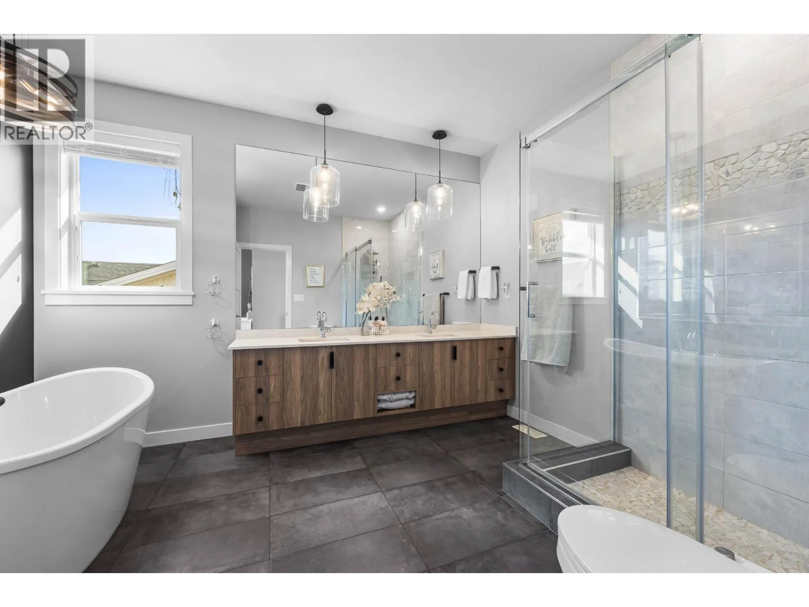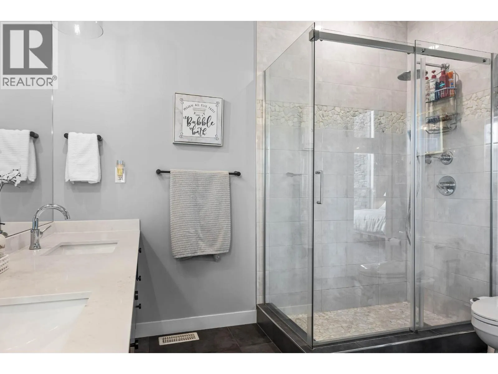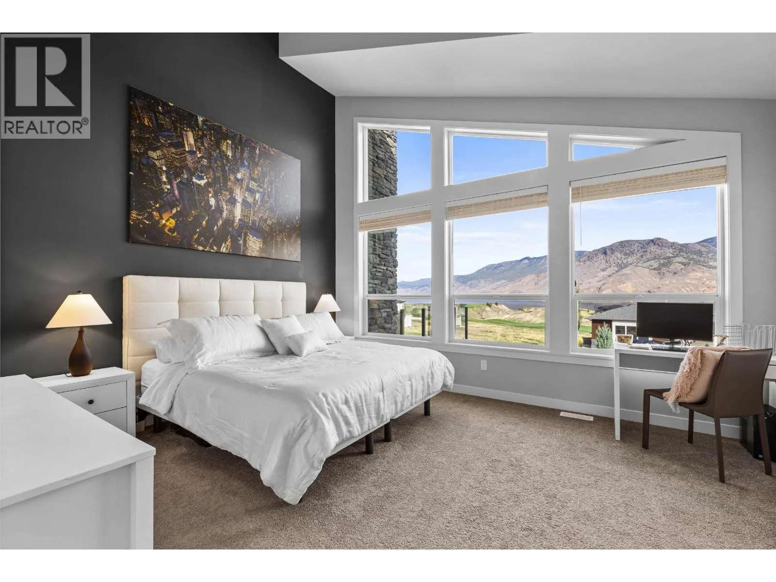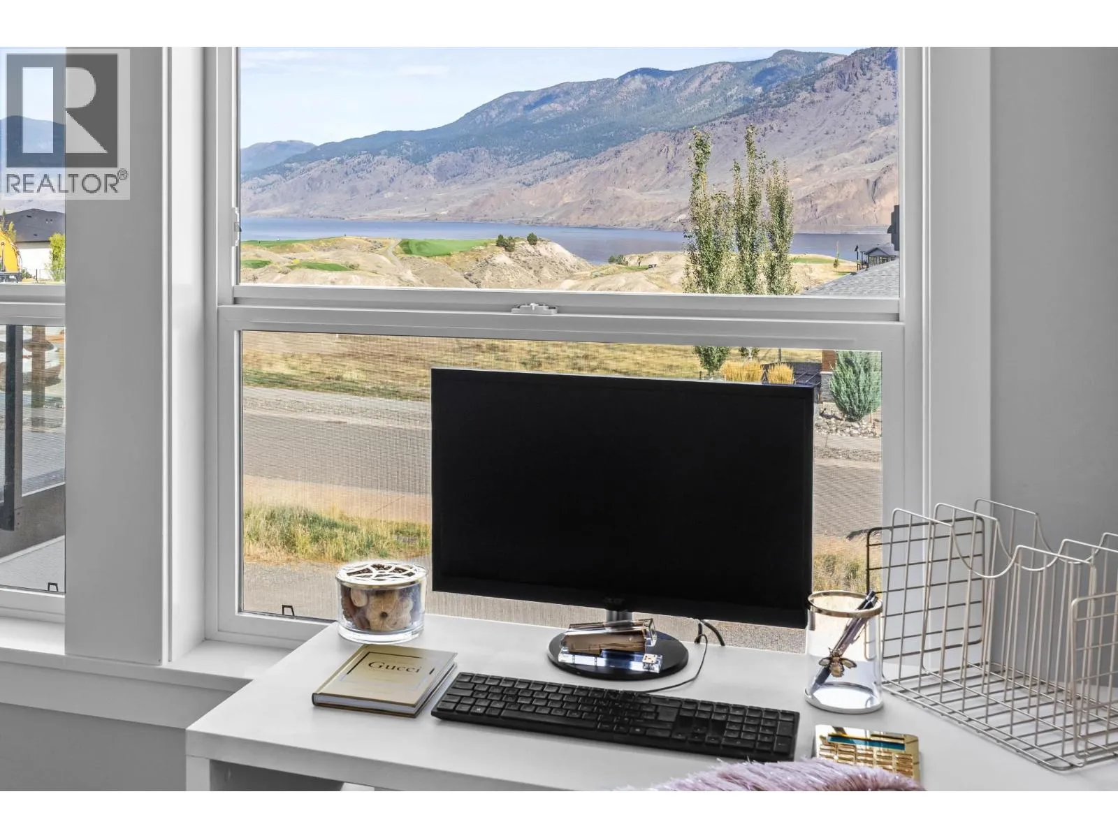 Stunning lake and mountain views from this beautiful executive home in Tobiano. The main floor features a vaulted ceiling that frames the incredible views and brings in tons of natural light. The living area includes custom built-ins, a cozy gas fireplace, and opens onto a large front deck with topless glass railingâideal for entertaining or relaxing. The chef's kitchen offers a large island, quartz counters, gas range, and plenty of cupboard space. Also on the main floor are three spacious bedrooms, including the vaulted-ceiling primary suite with a walk-in closet and luxurious 5pc ensuite featuring a freestanding soaker tub, separate tile shower, and double vanity. A stylish 4pc main bathroom completes the floor. The fully finished basement welcomes you with a large entryway and offers two additional bedrooms, a 4pc bathroom with tile surround, a bright laundry room with counters and cupboards, a home office, and a spacious rec room for movie nights, workouts, or games. The beautifully landscaped yard includes brickwork stairs leading to a flat grassy areaâideal for kids, pets, or a trampoline. Garden boxes with irrigation, gas BBQ hookup, and a gorgeous hot tub make outdoor living exceptional. Extras include a new heat pump (2023), underground power for future shop, gemstone lights, and a 12-zone irrigation system. Only 15 mins to Kamloops. Golf, marina, trails, and dining nearby. Donât miss outâbook your showing today! (id:27476)