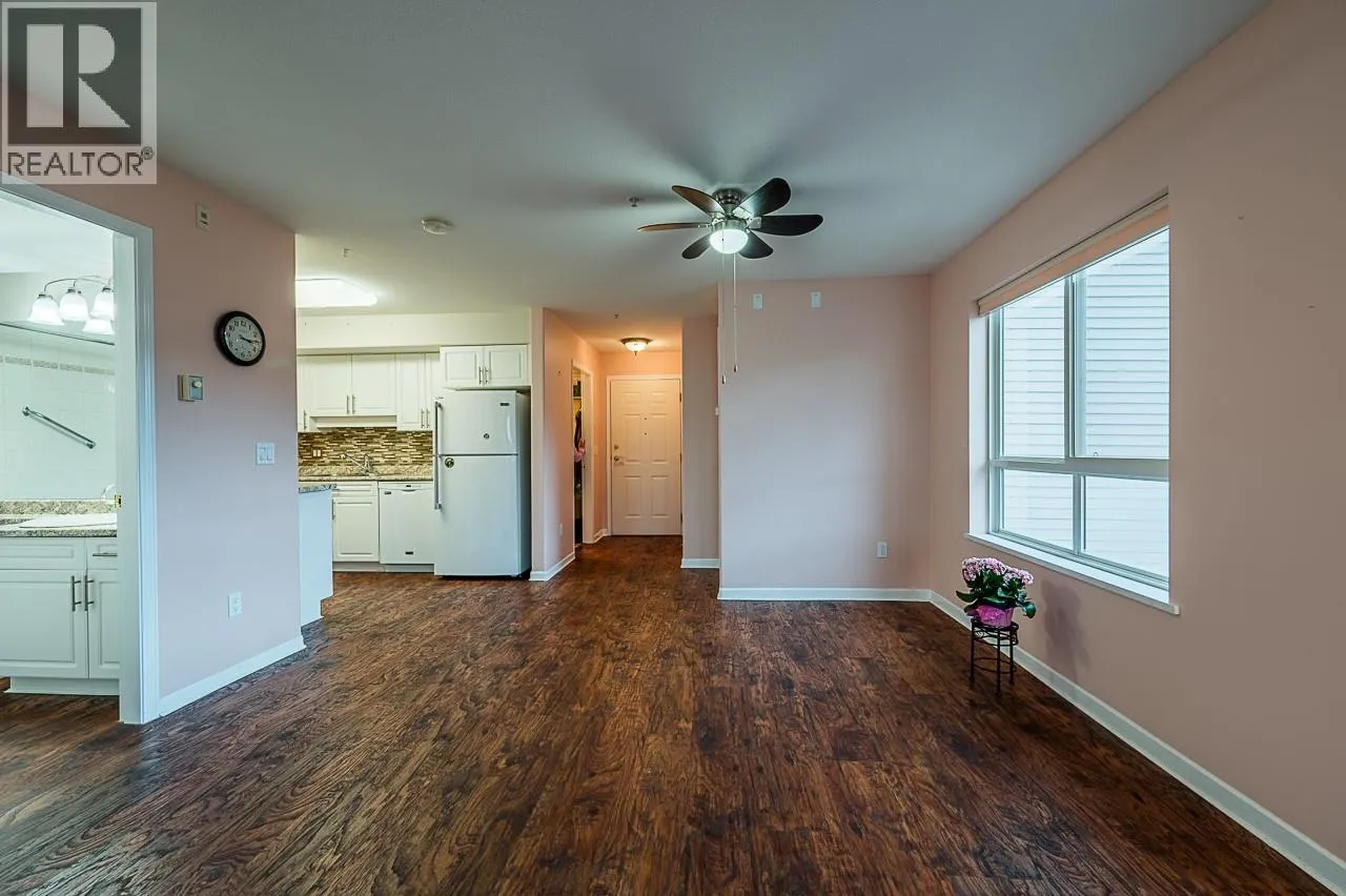 WELCOME to Orchard Court, a 55+ complex in prime Brock neighbourhood near shopping, transit and McArthur Park. This corner apartment with extra windows facing southwest provides great views and lots of natural light. Dining area is ideal for larger table and living room features a cozy gas fireplace with access to wrap-around covered deck. There are 2 bedrooms, 4-piece bathroom plus storage room with laundry area and roughed in for a 2-piece bathroom. New French patio doors, kitchen backsplash, fireplace surround and mantle, vinyl plank flooring, carpeting, window treatments and paint have all been updated, also a brand new washer and dryer. Includes wall air conditioner and 3 appliances. Complex features a social room with TV and games area and full kitchen. Strata fee includes gas fireplace and hot water. One (1) dog or cat allowed with Strata consent. Carport parking (1) with waitlist for garage. Quick possession possible. Absolutely perfect and well-loved home ⦠adult community living at its best! (id:27476)