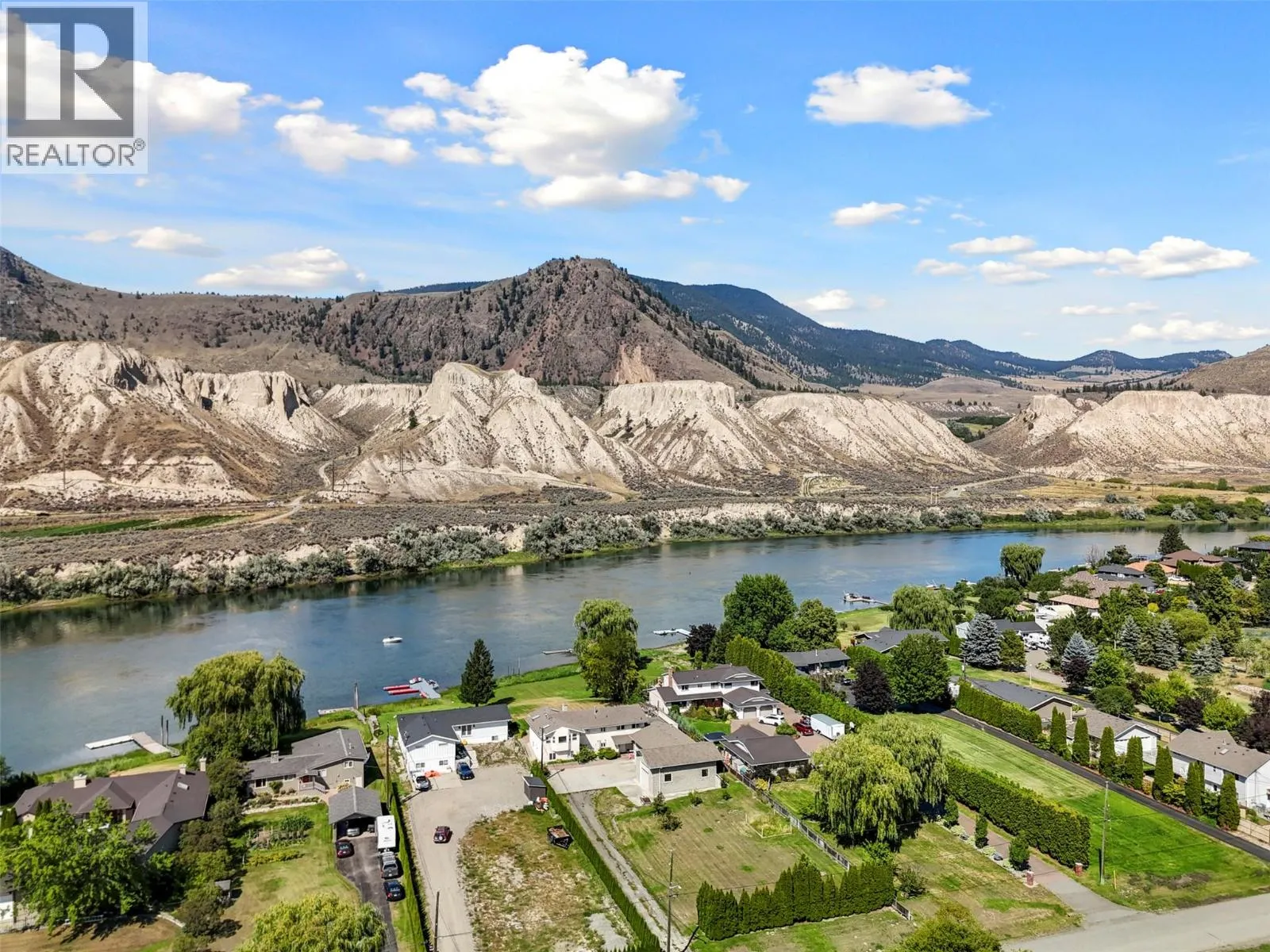 Stunning 3/4 acre South Thompson riverfront property with a spacious home, huge oversized 3-car garage, and subdivision potential. The private driveway is lined with grassy space, fruit trees, and room for developmentânew build, carriage house? (See City of Kamloops). Inside, a large foyer welcomes you, with an office perfect for a home-based business. Upstairs, the main living space offers breathtaking unobstructed river and mountain views from the living and dining rooms. Hardwood and tile flow through the open plan. Step onto the massive deck leading to the expansive grassy yardâideal for a pool or landscaping. A secondary deck is off the dining room. The large kitchen boasts a huge island and ample cabinetry. The main floor also includes a 4-piece bath, den (possible 3rd bedroom), and two large bedrooms with ensuites. The primary bedroom features stunning river views. Downstairs offers great potential with a summer kitchen off the foyer, a family room, bedroom, and 2-piece bath. French doors open to unfinished space, ideal for a 2-bedroom suite with separate entry, roughed-in plumbing, and framed bedrooms. The massive heated shop is a mechanicâs dreamâthree large bays, with the third long enough for an RV/boat. Shop measures 32â8 x 64â9 plus an additional 17â9 x 27â2 storage/garage, offering space for 4+ vehicles. So much potentialâbring your ideas! (id:27476)