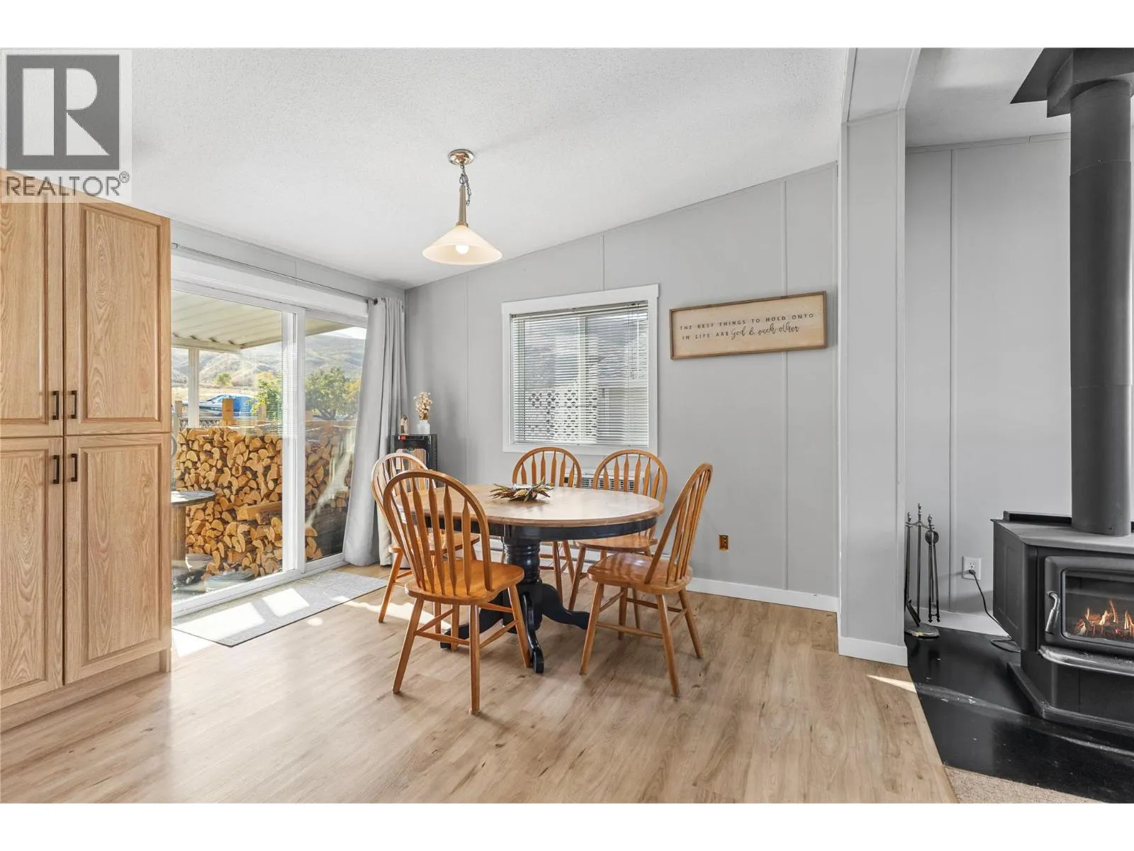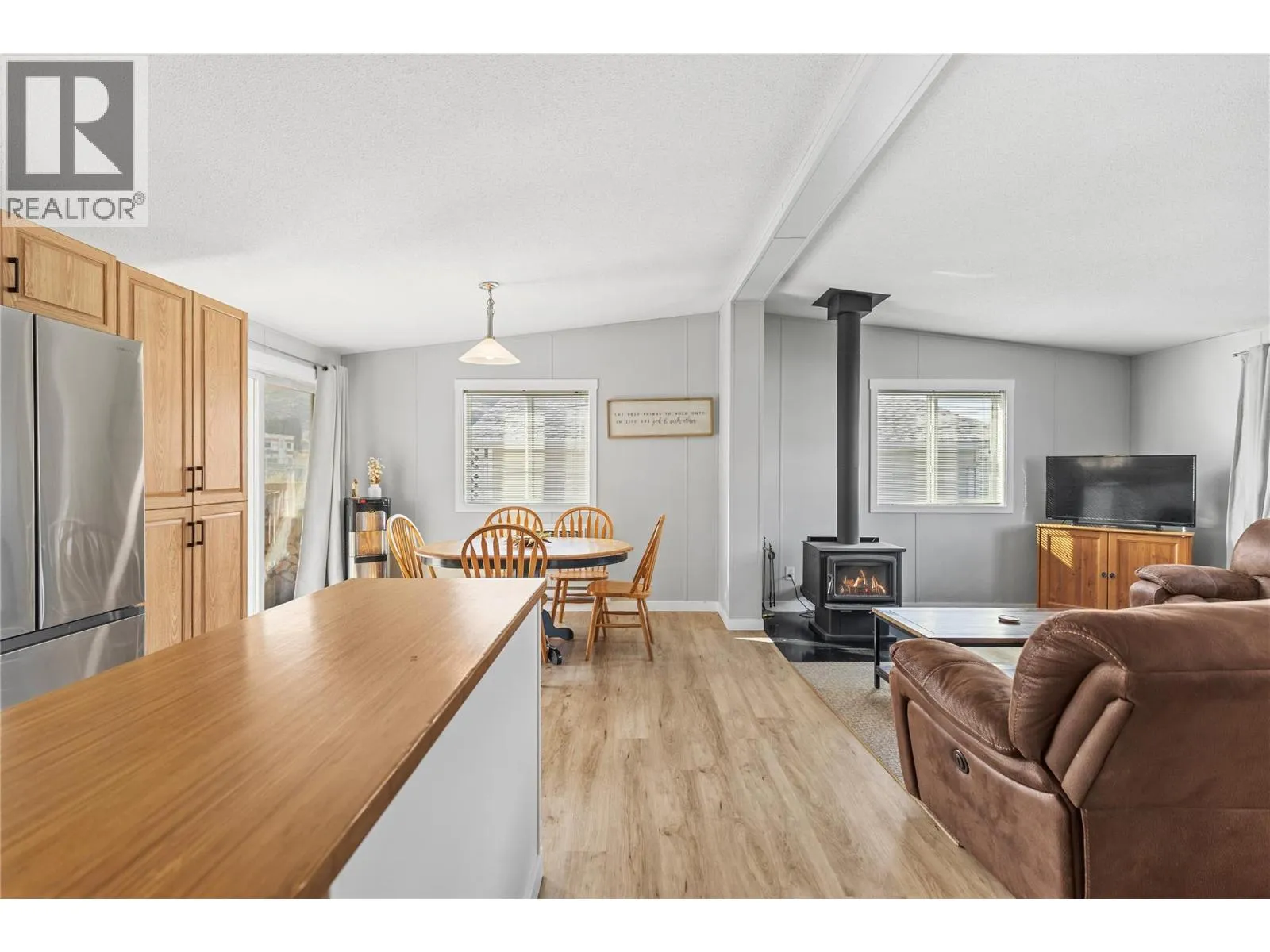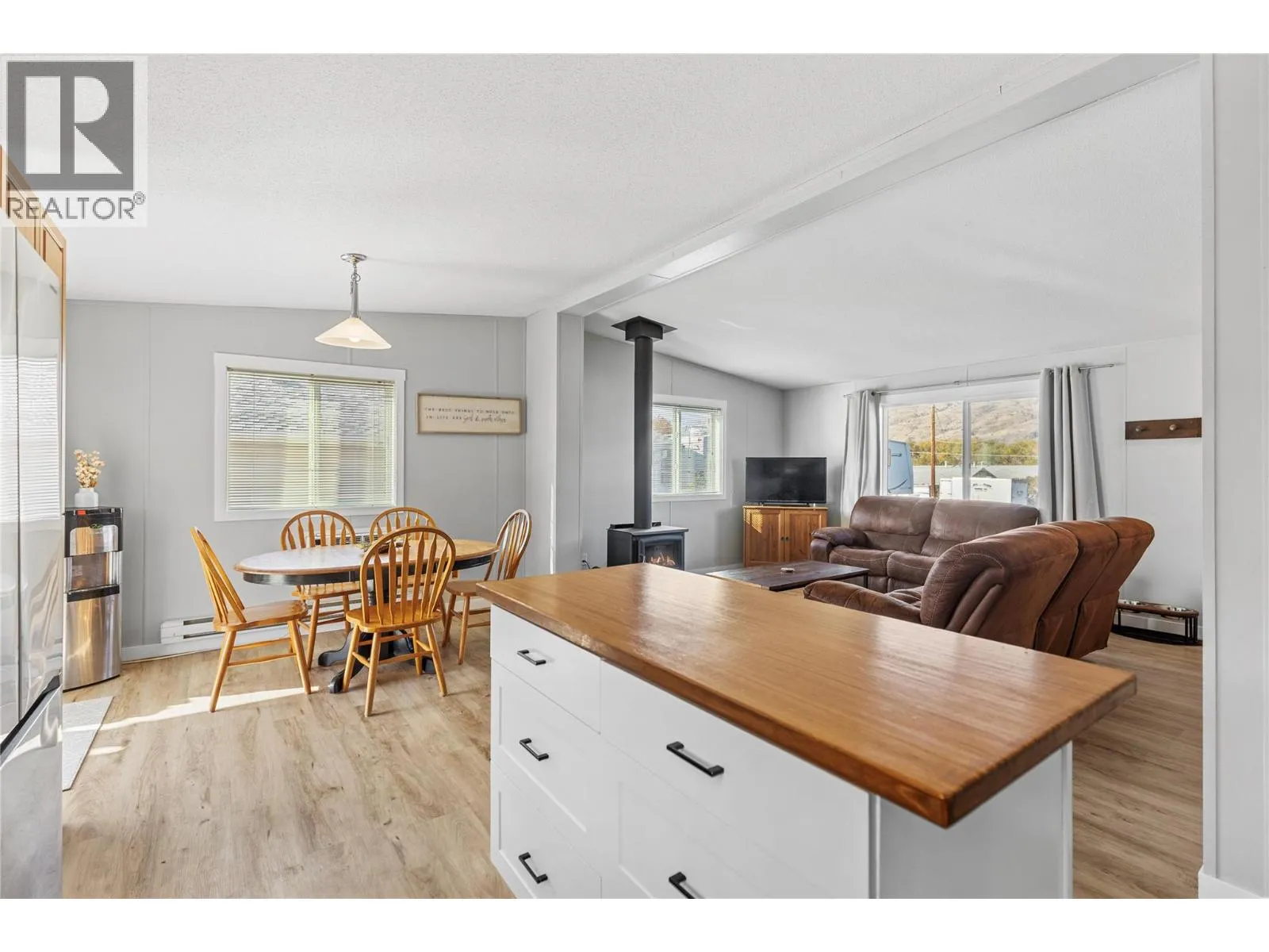 Welcome to this charming newer manufactured home nestled on a great flat lot in beautiful Savona, BC! This well-maintained property offers comfortable living in a peaceful setting with breathtaking panoramic mountain views right from your doorstep. Inside, youâll find an inviting open layout featuring brand-new flooring throughout and plenty of natural light. The cozy living room is warmed by a wood-burning stove, a perfect for those cool winter evenings. Step outside to enjoy the spacious yard, complete with mature fruit trees and a chicken coop, ideal for anyone who loves a touch of country living. The large flat lot provides excellent parking for vehicles, RVs, or recreational toys, with room to expand or garden. Whether youâre relaxing on the porch, tending to your trees, or watching the sunset over the mountains, this property offers a lifestyle of tranquility and natural beauty. Donât miss this affordable opportunity to own a move-in-ready home with space, views, and charm in Savona! (id:27476)