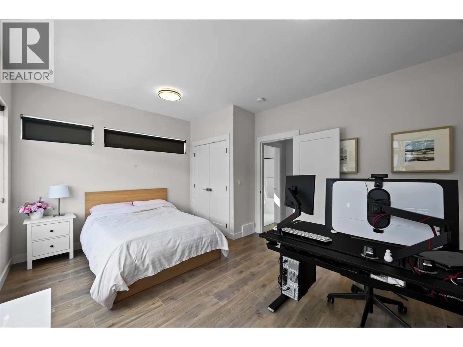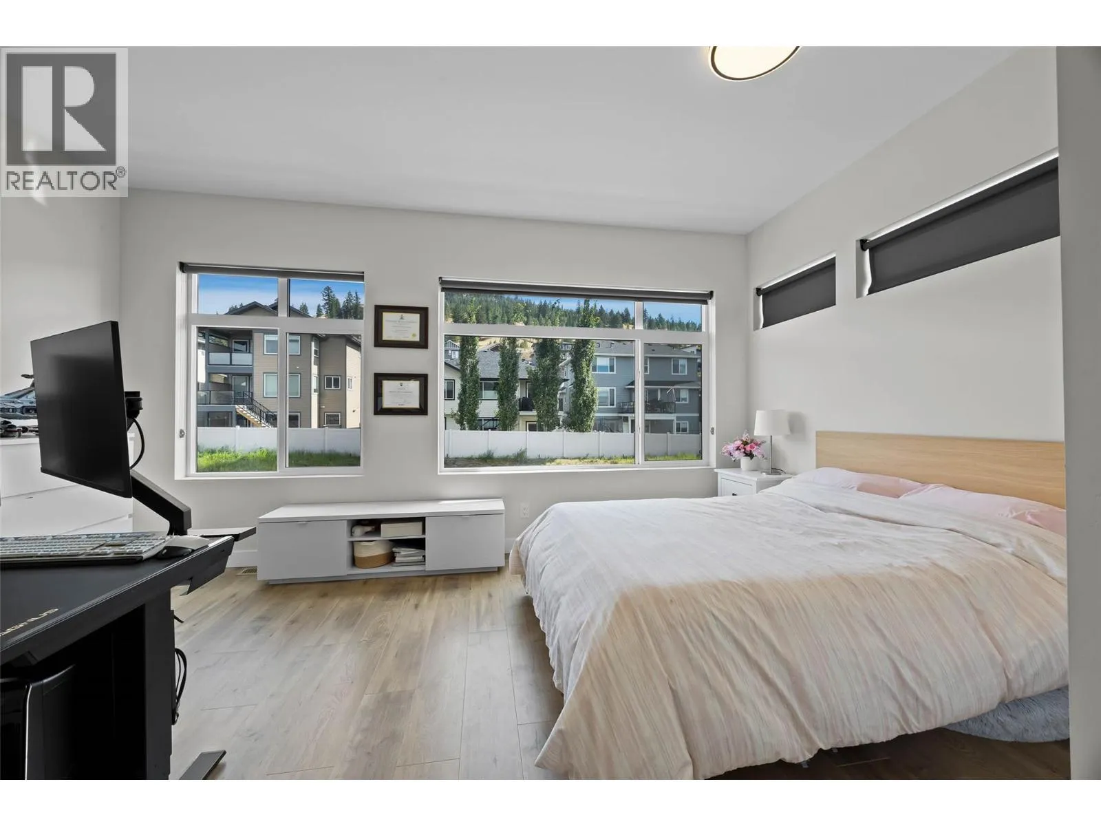 Welcome to this modern and stylish 3-storey end unit townhouse located in the highly sought-after neighbourhood of Juniper Ridge. Built in 2022, this beautifully designed home features 3 bedrooms, 2 full bathrooms, and 2 half baths, offering a spacious and functional layout perfect for families or professionals. The entry-level includes a bright bedroom or ideal home office, a convenient half bath, a mudroom, and access to the oversized single garage, which is equipped with EV charging . On the second level, you'll find a contemporary open-concept kitchen with quartz counters, dining, and living area with large windows that fill the space with natural light, along with access to a private balcony perfect for relaxing or entertaining. The top floor features two generous bedrooms, two full bathrooms including a primary ensuite, and a laundry area for added convenience. Located in a quiet, family-friendly community surrounded by trails, and parks, this move-in-ready home combines modern living with the natural beauty of Juniper Ridge. Call me today to schedule your viewing! All measurements are approximate and to be verified by the Buyer. (id:27476)