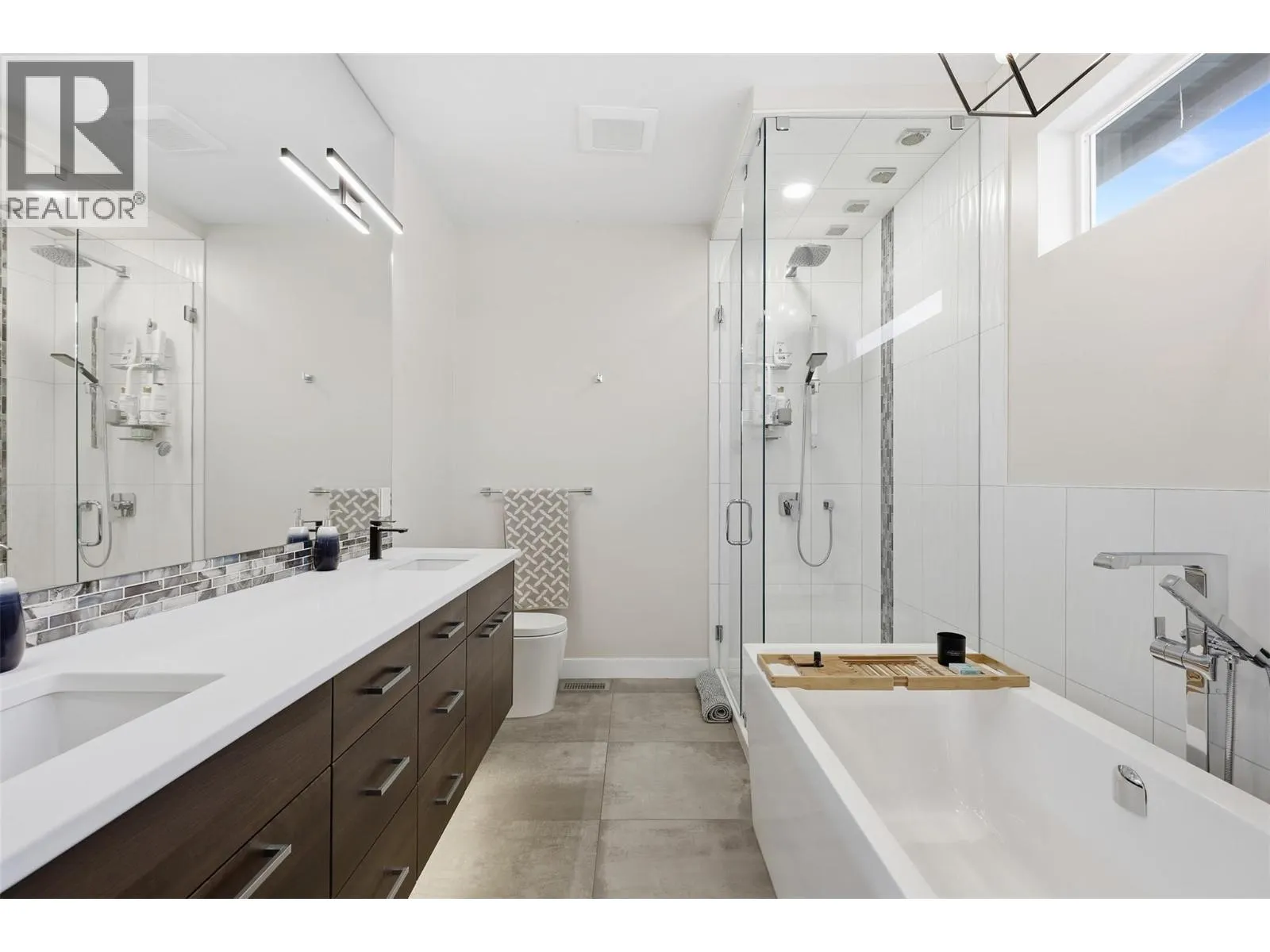 Welcome to this beautifully designed, light-filled custom built home featuring 4 bedrooms in the main house plus 1-bedroom basement suite. Located in the highly desirable Juniper Ridge community, this property offers complete luxury and style. Step through the front entrance and into an open, airy living space flooded with natural light from the homeâs expansive windows. The gourmet kitchen is equipped with high-end THOR appliances, an 8 foot island, and an impressive walk-in pantry making it a dream space for cooking and entertaining. The primary bedroom is a complete sanctuary with a walk in closet, spa-like ensuite and convenient access to the covered deck. The fully finished basement is designed for enjoyment and versatility â featuring a stylish bar with its own dishwasher, abundant storage, second bonus laundry room, full bathroom with walk-in shower, built-in speaker system, and carefully thought out custom radiant heat concrete flooring. Additional premium features include a heated driveway to keep snow and ice away during those winter months, heated double garage, custom blinds and lighting throughout, a full legal suite with it's own entrance and separate radiant heating /cooling system. Come check out this exceptional one-of-a-kind home! (id:27476)