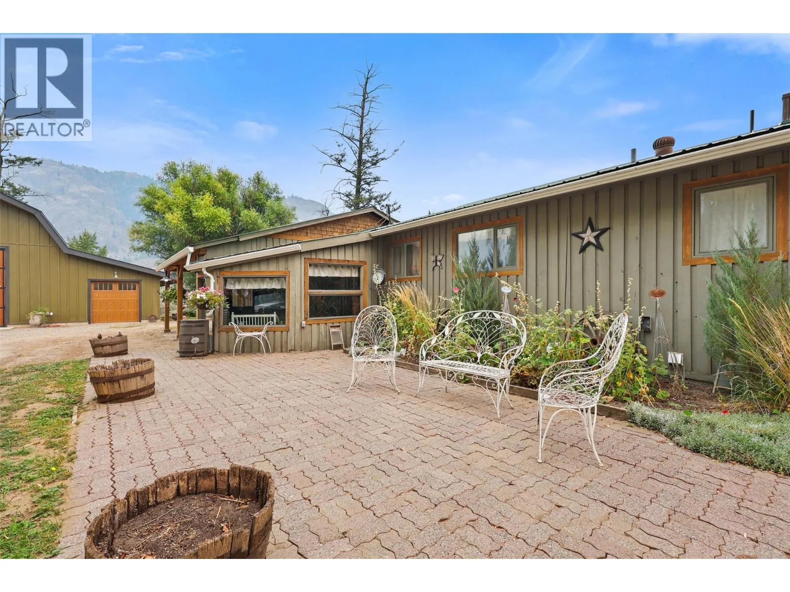 Experience the best of country living with this beautifully updated farmhouse, perfectly situated on 4.8 picturesque acres just 20 minutes from town. Thoughtfully combining vintage charm with modern upgrades, the home features 2 spacious bedrooms and 2 bathrooms on the main floor, including a primary suite complete with a walk-in closet and ensuite The inviting open-concept kitchen and dining area leading to a cozy living room with fireplace, and a bright sun room running the full length of the home. The lower level offers 2 additional bedrooms, a full bathroom with a huge walk in shower, 2 large storage rooms and a versatile family room with walkout access to the backyard. Recent updates provide comfort and efficiency, including a newer furnace, central A/C, hot water on demand, built-in vacuum, and upgraded appliances. The property is equally impressive outdoors, featuring a massive 60x45 powered shop with dedicated 200-amp service, plus a large outbuilding for additional storage. A generous deck creates the perfect space for entertaining, while the grounds offer a thriving pumpkin patch, dedicated gardening areas and frontage along Monte Creek. Blending timeless style with modern convenience, this property offers exceptional space, functionality, and the true essence of country charm. (id:27476)