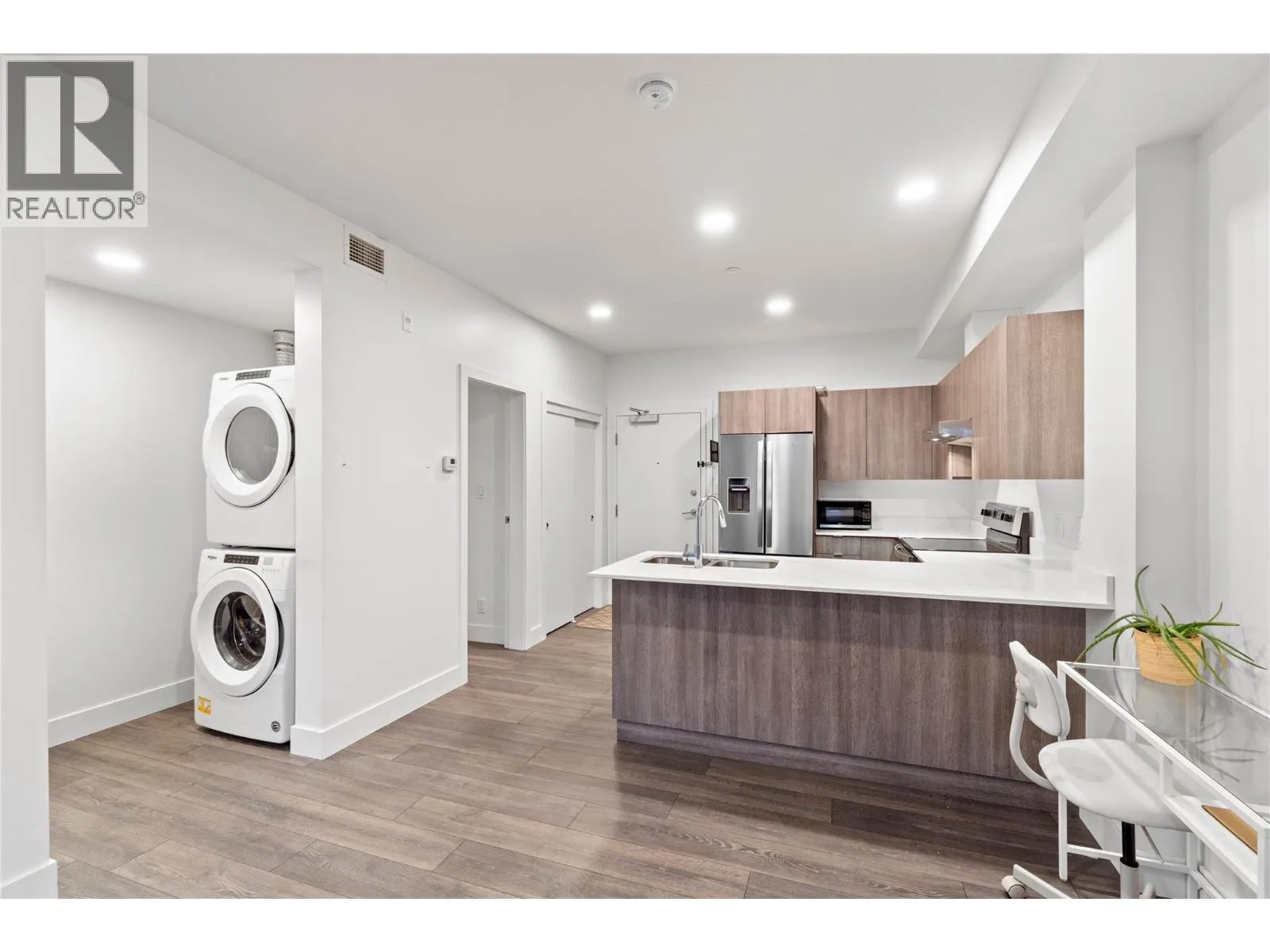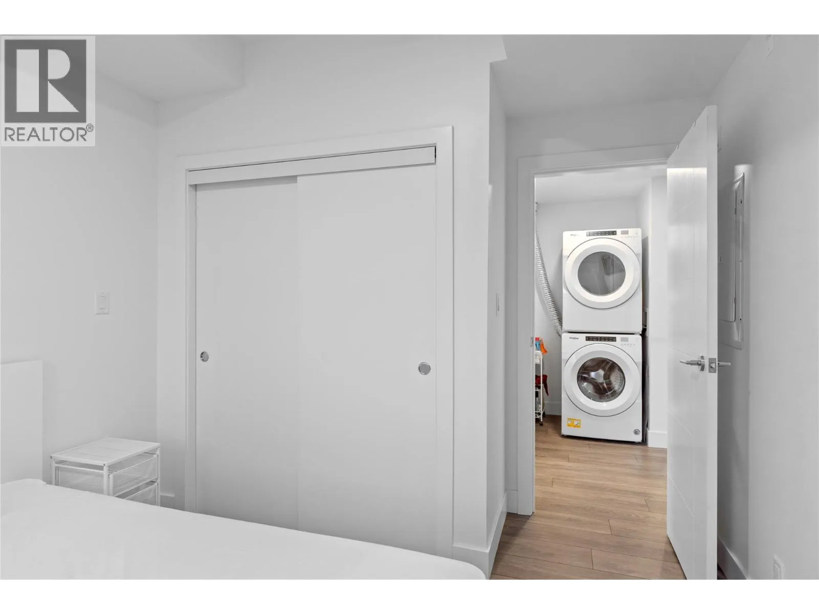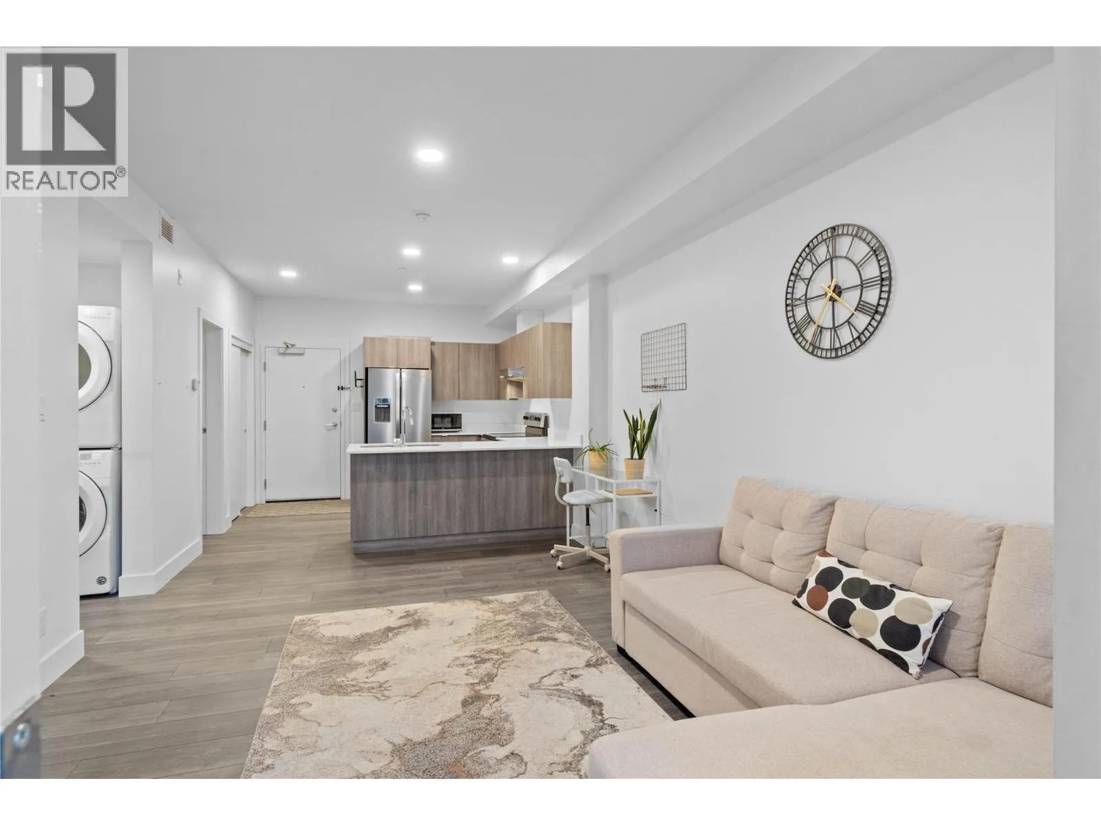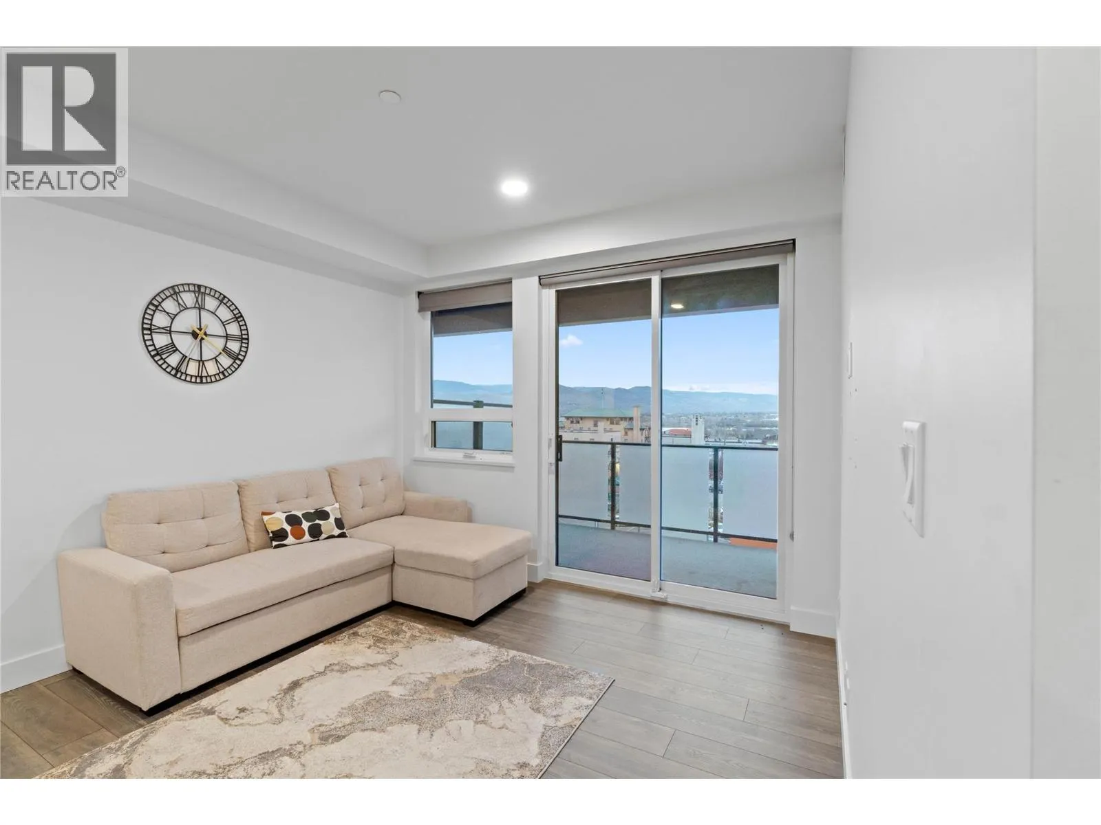 Stunning modern condo with a view! Central location in downtown. Full north view of downtown and the mountains. 4 years old and under warranty for the building envelope and foundation. Quick possession is possible - owner/family occupied. Close to parks, transit, entertainment, dining and the weekly seasonal farmer's market. Featuring 1 bedroom with the view, a full bathroom, plus a spacious den. 9' ceilings with an open design and quality, easy care flooring. Bright kitchen with quartz counters, stainless appliances, and eating bar. Airy living room with access to the large covered patio overlooking the mountains. In unit laundry. Furnishings are negotiable. Central heating and air conditioning. Secure storage locker is 3'2""x4'2"" and conveniently located on the same floor. 1 underground parking stall. Access to the common roof top patio and common ""lightwell"" for a little fresh air! Rentals allowed and up to 2 pets. (id:27476)