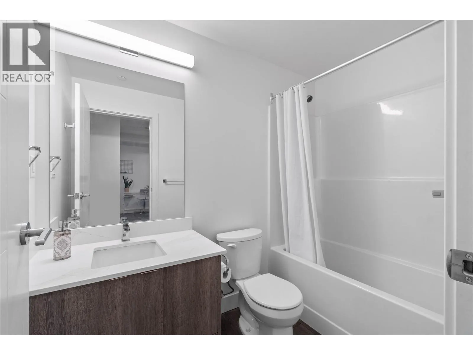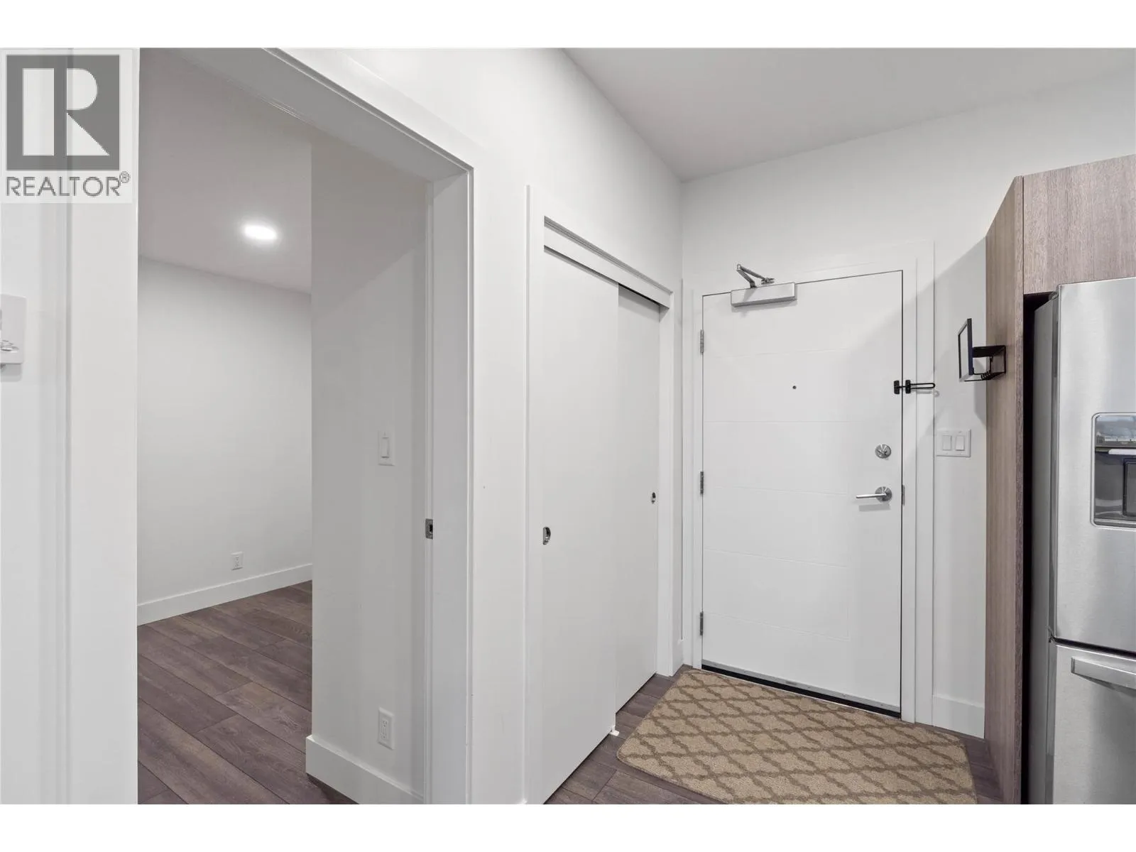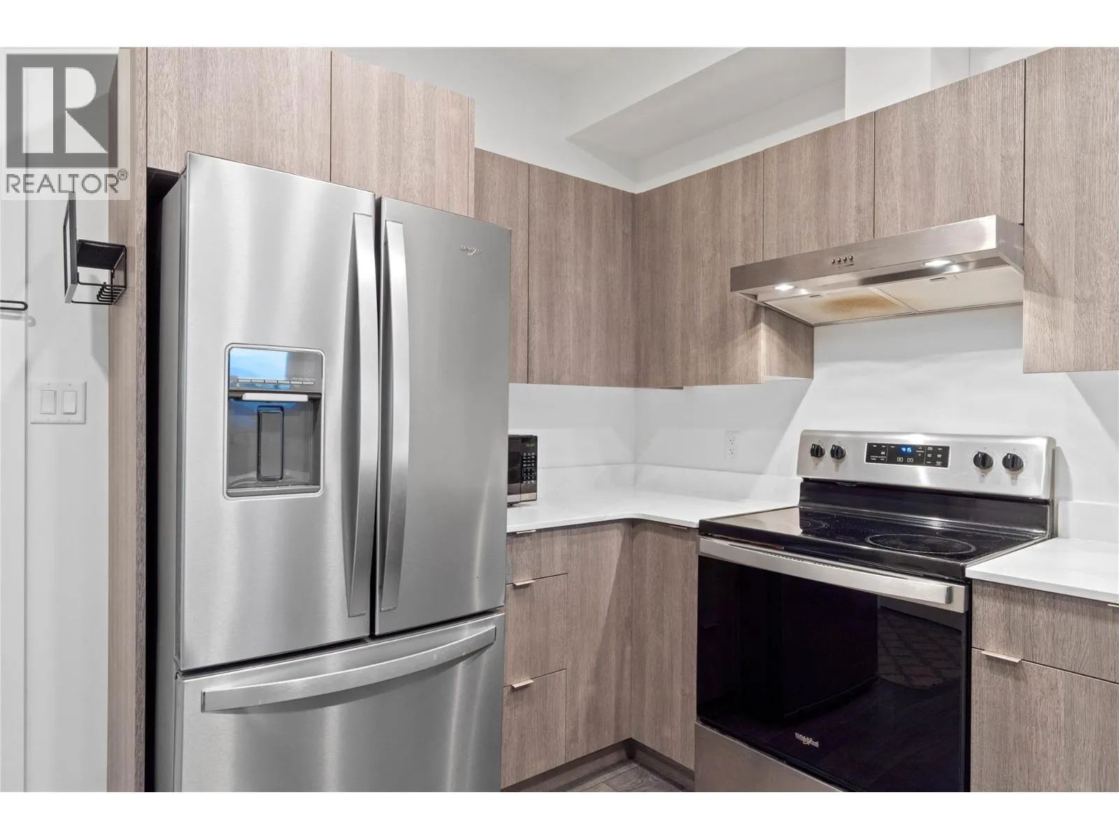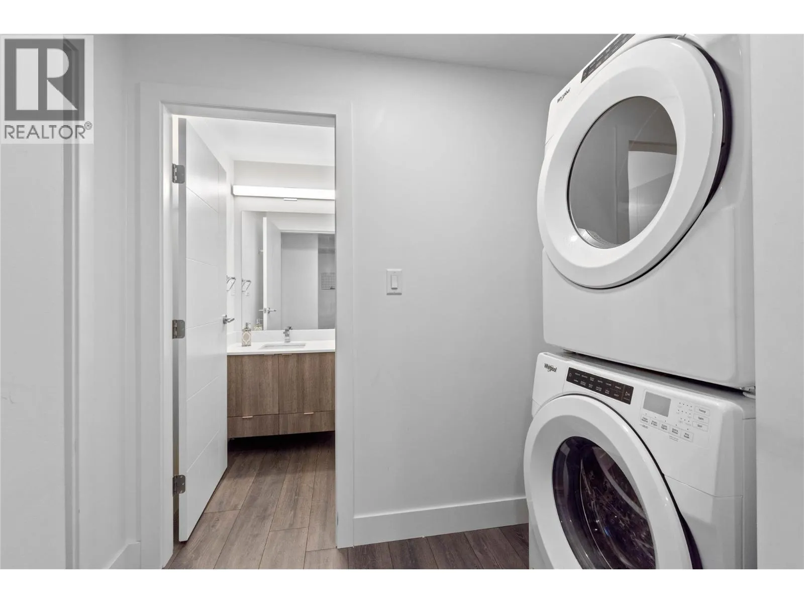 Stunning modern condo with a view! Central location in downtown. Full north view of downtown and the mountains. 4 years old and under warranty for the building envelope and foundation. Quick possession is possible - owner/family occupied. Close to parks, transit, entertainment, dining and the weekly seasonal farmer's market. Featuring 1 bedroom with the view, a full bathroom, plus a spacious den. 9' ceilings with an open design and quality, easy care flooring. Bright kitchen with quartz counters, stainless appliances, and eating bar. Airy living room with access to the large covered patio overlooking the mountains. In unit laundry. Furnishings are negotiable. Central heating and air conditioning. Secure storage locker is 3'2""x4'2"" and conveniently located on the same floor. 1 underground parking stall. Access to the common roof top patio and common ""lightwell"" for a little fresh air! Rentals allowed and up to 2 pets. (id:27476)