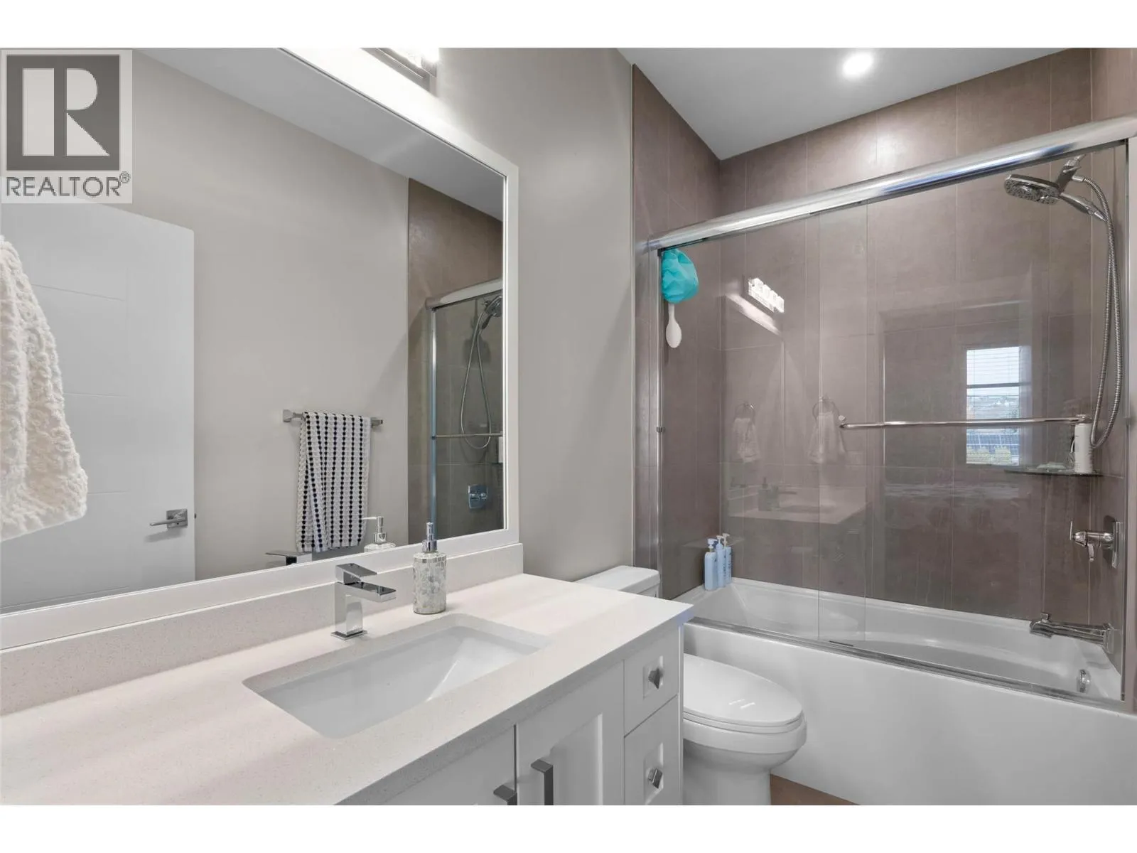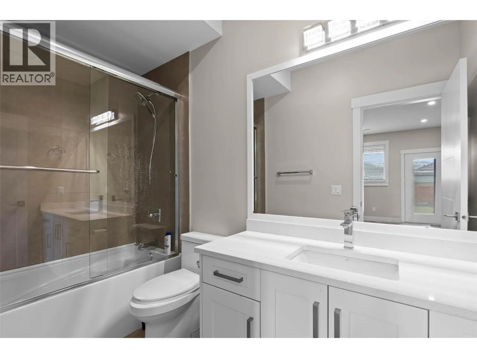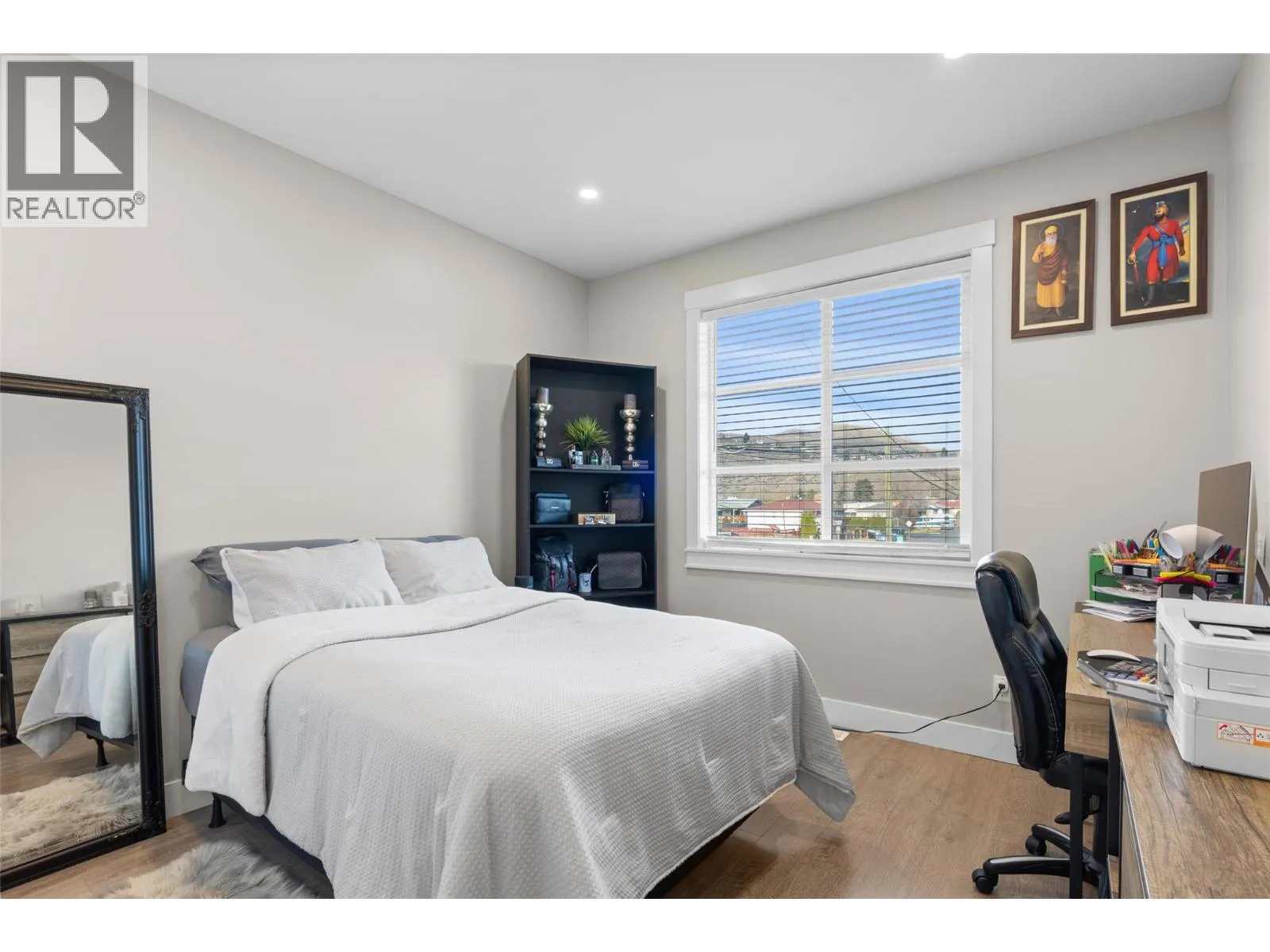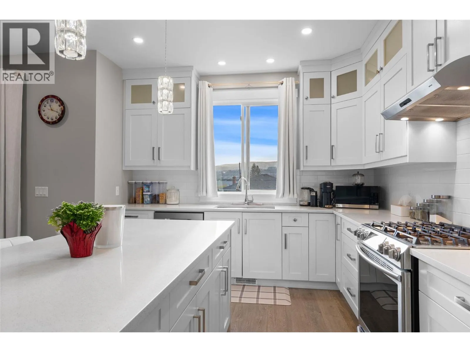 Welcome to this beautifully finished half duplex situated on a good size flat lot allowing plenty of room for the whole family and includes a two bedroom one bathroom in law suite. Located in the desirable North Shore neighborhood, this home offers a spacious, open-concept layout with high ceilings and modern high-end finishes throughout. The main level features a high-end kitchen complete with island, quartz countertops, white cabinetry and stainless steel appliances. Directly off of the kitchen & living room, step out onto the balcony overlooking the backyard and city views of Kamloops. Outdoor stairs conveniently lead to the fully fenced backyard perfect for kids & pets. Down the hall, you will find 3 bedrooms including the primary suite that features a walk-in closet and 4 piece ensuite, an additional bathroom and stylish, contemporary tones. The fully finished basement includes the laundry room, den and one bedroom, one bathroom in law suite with separate entrance. Double car garage, alley access to the yard to store your toys. Outside, enjoy a fully fenced and landscaped backyard, plus RV parking in the front. A great opportunity for families or investors alike -- Don't miss your chance to make this home yours! (id:27476)
