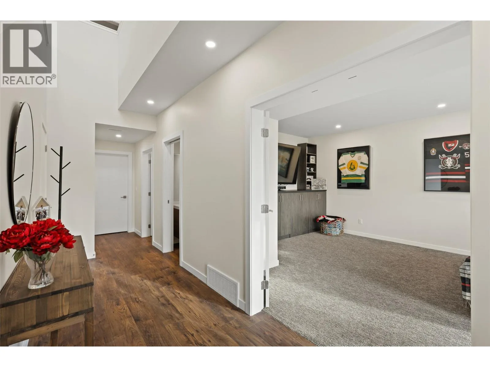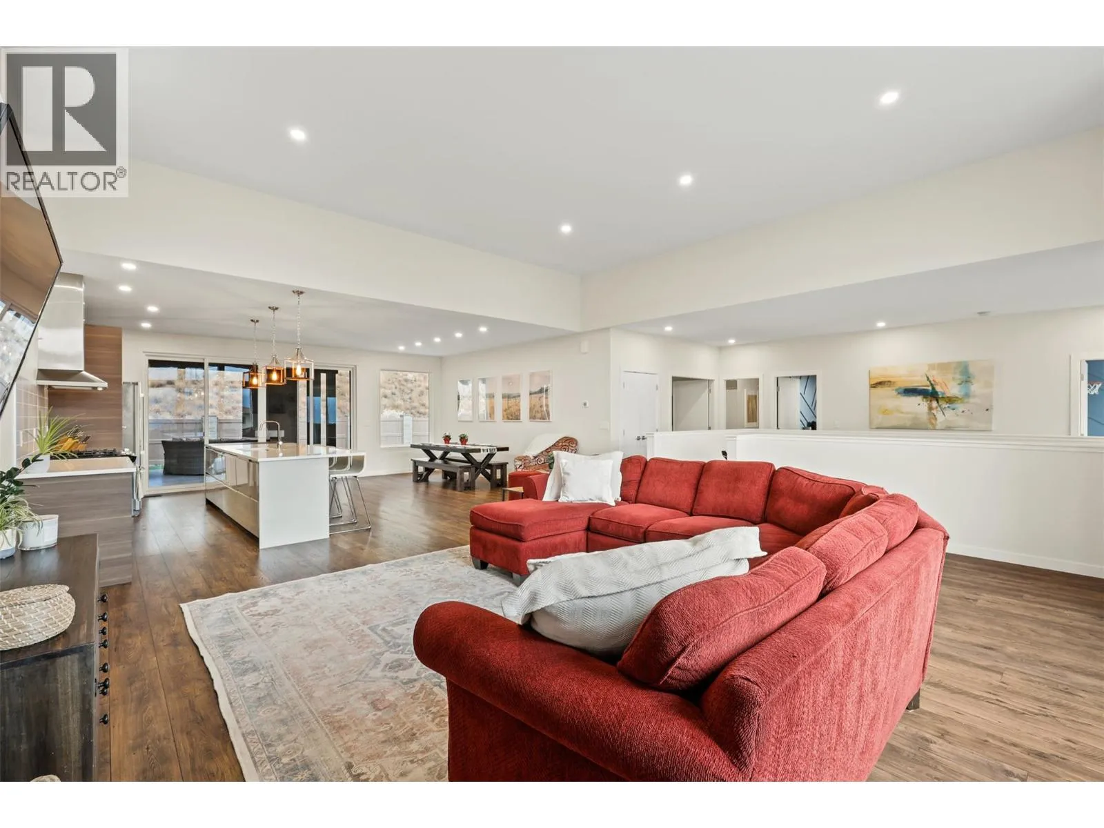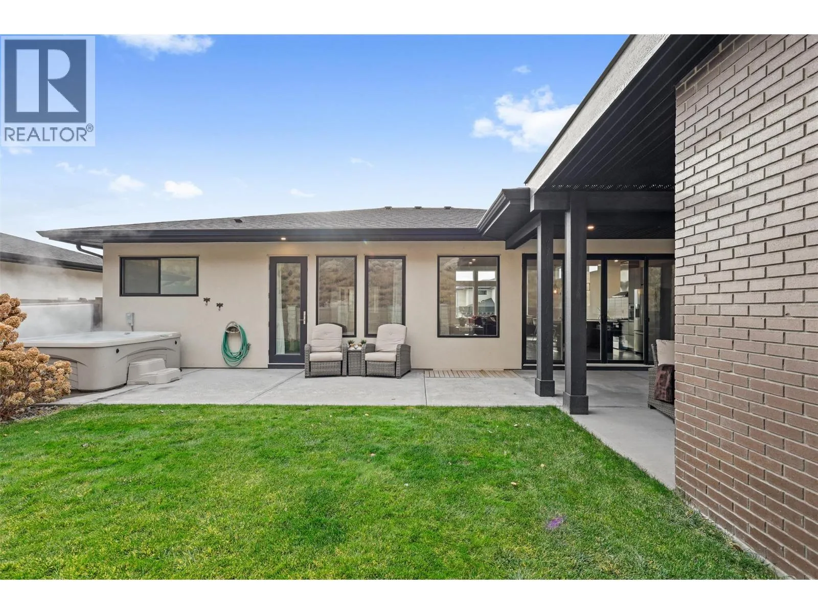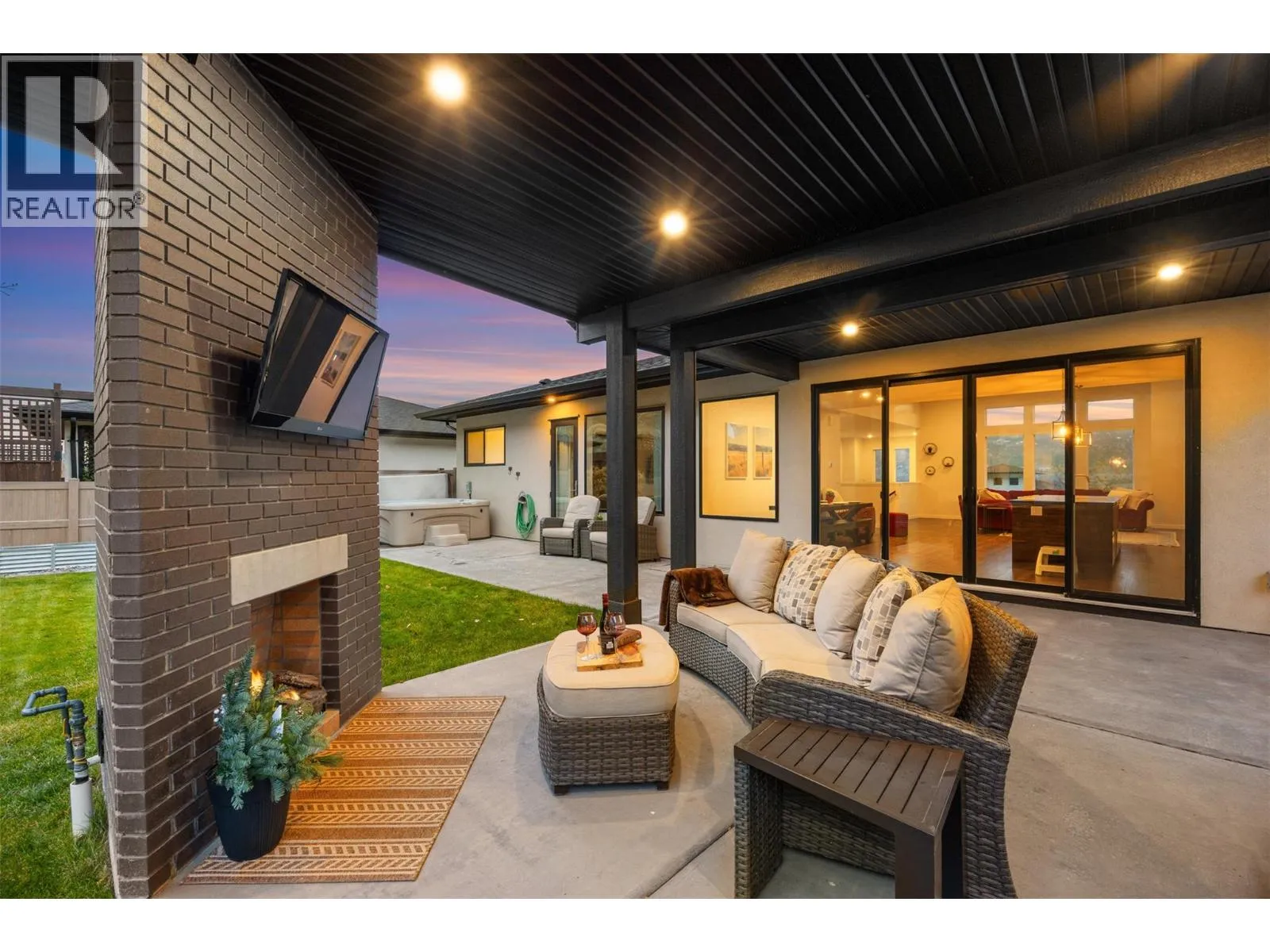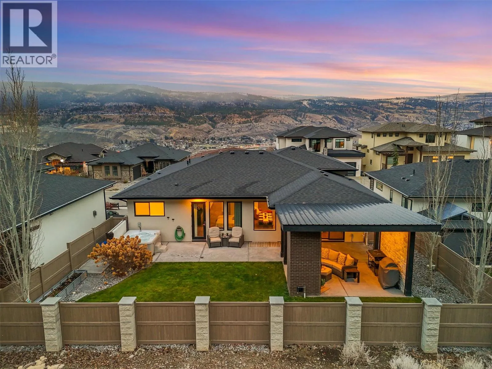 This modern 2019-built home is located in the highly regarded Sun Rivers community, known for its scenic setting and convenient access to amenities. The home offers a functional layout with quality finishes and a bright, open-concept main floor that connects the living room, dining area, and kitchen. The kitchen features a large island, sleek cabinetry, and stainless steel appliances, with direct access to the backyard patio. The primary bedroom is privately situated on the main level and includes a custom accent wall, walk-in closet, and a well-finished ensuite. Two additional bedrooms, a full bathroom, and a dedicated office complete the main floor. The lower level includes a spacious rec room, laundry room, powder room, and access to both the garage and an unfinished gym/storage area. The backyard and covered patio area are designed for everyday use, featuring a built-in fireplace, comfortable seating area, a hot tub, and space for outdoor dining and entertaining. Backing onto the natural hillside, the yard provides privacy and a quiet, relaxing atmosphere. Living in Sun Rivers offers walking paths, a strong sense of community, and quick access to the Bighorn Golf Course, restaurant, and clubhouse amenities. This home is ideal for buyers seeking modern construction, a practical layout, and inviting outdoor space in one of Kamloopsâ most desirable communities. (id:27476)