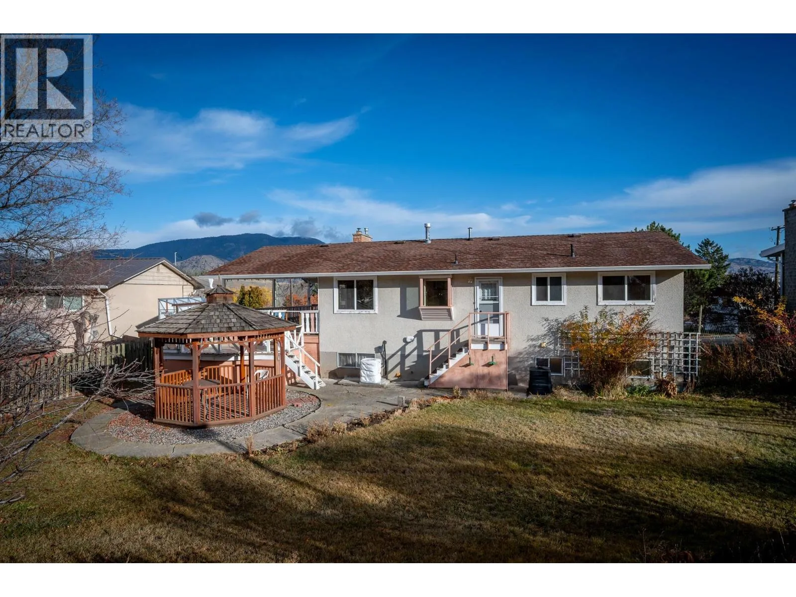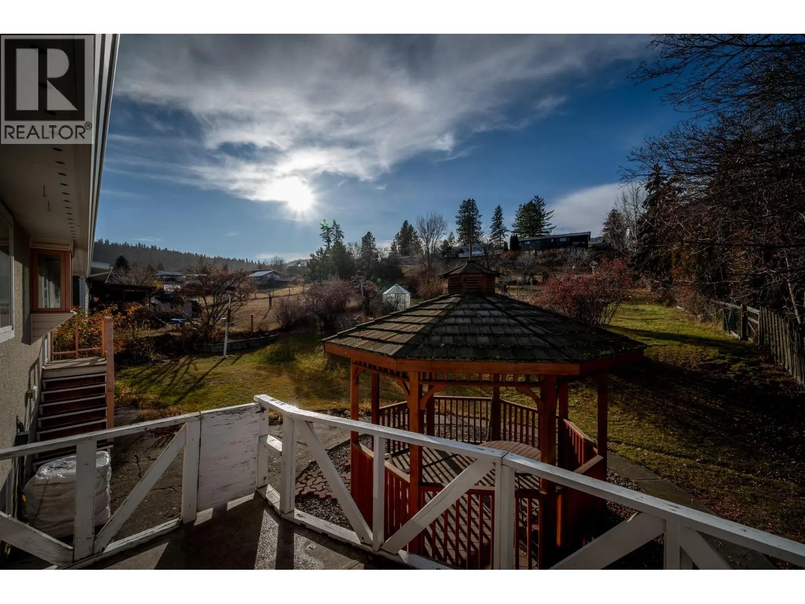 Bring your dream home to life in Barnhartvale with this well-cared-for home on an expansive 18,000 sq ft lot offering suite potential, where you can enjoy the functional layout today while modernizing to your needs. The main floor features a spacious living room with a cozy gas fireplace and a dining area with kitchen access. The kitchen provides plenty of counter and cabinet space, and the dining room opens onto a large 25' x 13' covered patio perfect for entertaining. Two bedrooms and a 4-piece bathroom complete the upstairs. Downstairs youâll find a summer kitchen with in-law suite potential, a generous rec room with another gas fireplace, a 3-piece bathroom, and bedroom. There is also laundry and an unfinished workshop with carport access on the lower floor. Recent updates include a 2014 roof, 2019 furnace and AC, and a new hot water tank. Outside, the huge yard boasts fruit trees, bushes, a gazebo, and a garden area. This home is located on a welcoming street in the heart of Barnhartvale within walking distance to the school. (id:27476)