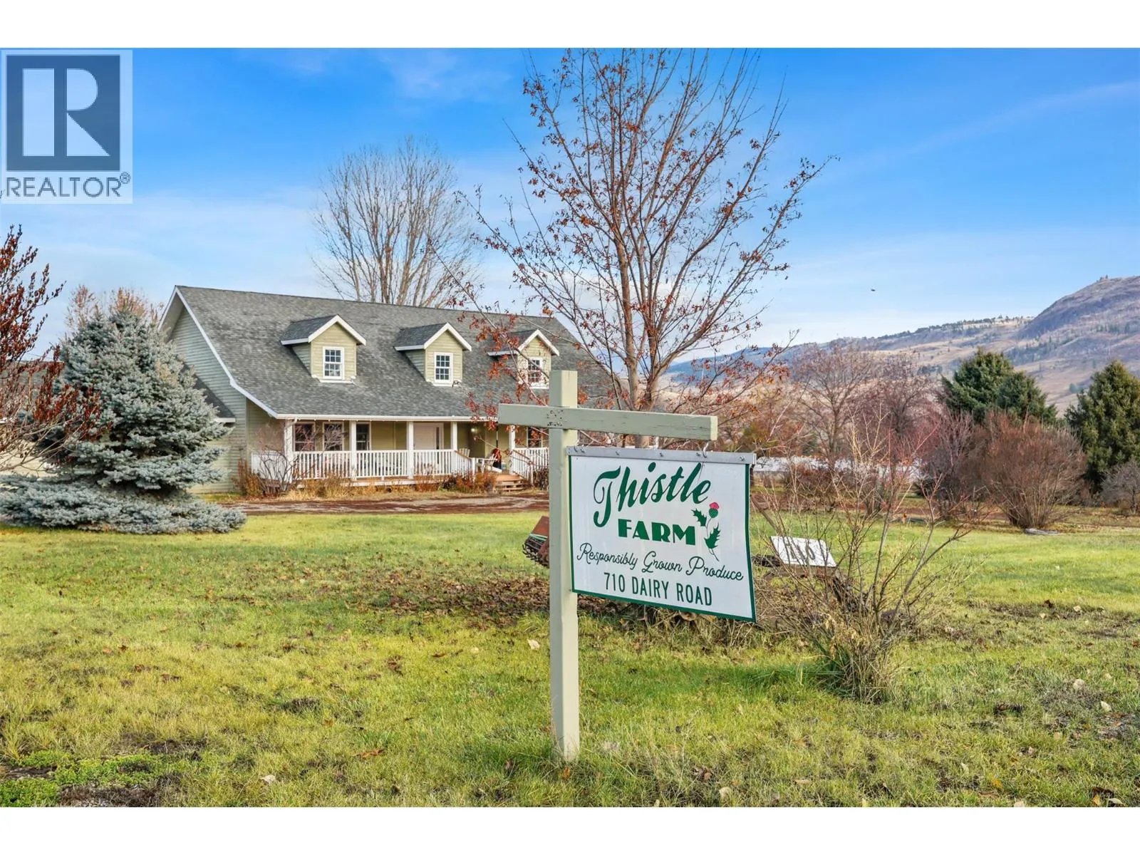 Welcome to the home of the locally renowned Thistle Farms! This incredible property sits on 10 flat, fully usable acres, with approximately 7 acres currently in farming operations. Itâs a true turn-key setup for anyone looking to start a new agricultural venture or expand their existing operation. Uniquely situated within city limits, this acreage offers both rural seclusion and a beautiful nighttime view of the city lights. The main home is a beautiful country residence with over 5000 sq. ft. of living space and features a charming wrap-around deck with timeless character throughout. The accessory building includes a full prep kitchen, along with a finished upper floor ideal for ranch hands, staff, or guests. The property is serviced by city water for the homes, while irrigation is supplied through the Noble Creek Society, giving you reliable water for your farming needs. Additional perks include separate gas and hydro meters for both the main and accessory buildings. This property has also been proudly known as the host of the locally famous Harvest Dinner every fallâan iconic community tradition. Whether you're looking to expand your farm, start a new operation, or enjoy the country lifestyle on a remarkable estate, 710 Dairy Road is ready to welcome you. Message the listing agent for more details or to schedule a private tour! (id:27476)