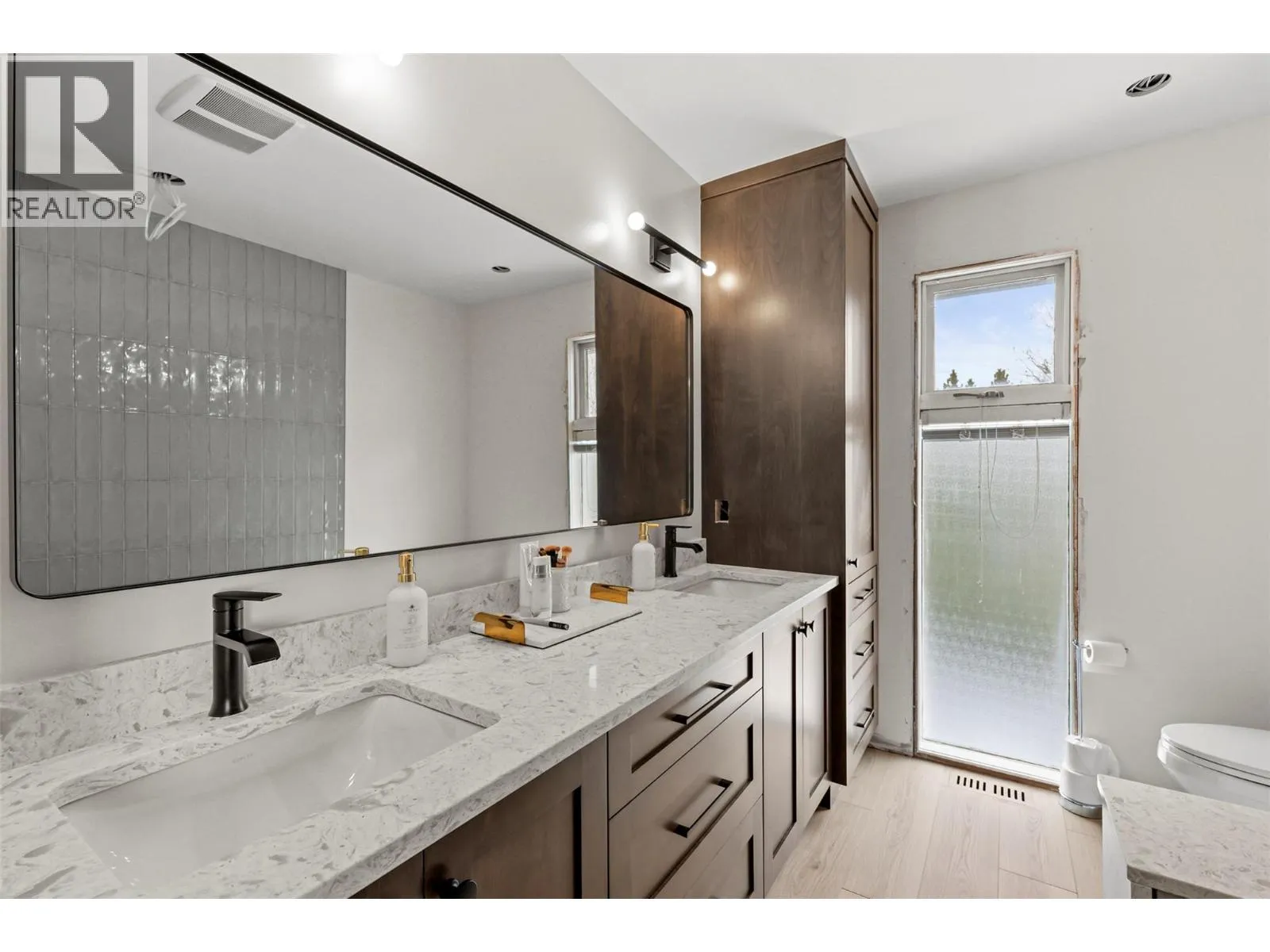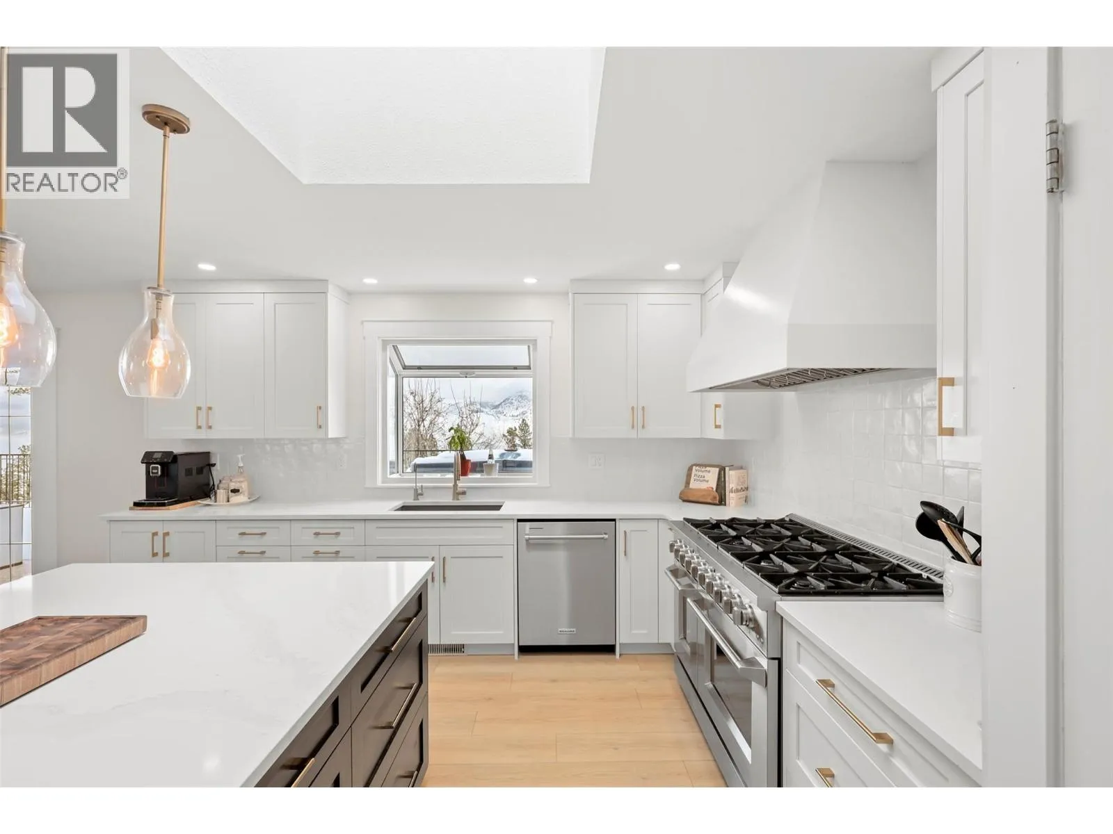 Donât miss this stunning 4-level split in High Country Estates which has been substantially updated over the past 3 years. As you walk inside youâll find a large entryway which opens up to the open concept living rm & kitchen. Youâll fall in love with the immaculately renovated kitchen by Living Kitchens featuring high-end appliances w/ 8 burner gas range, built-in Kitchen-Aid fridge drawers, & Thermador fridge which blends seamlessly into the cupboards. A coffee/wine bar & a large island completes this kitchen which must be seen to be appreciated. Off the kitchen is a sunken living rm with spectacular views of the city & a large deck with hot tub. Upstairs is a beautifully renovated 5pc bathrm + 3 bedrms including the primary bedrm with walk-in closet and newly renovated 4pc ensuite bathrm w/ tiled shower. Below the main are 2 additional bedrms, a brand-new 4pc bathrm, and the most amazing laundry room in Kamloops with a full array of shaker-style cabinets done in a captivating colour, undermount sink, & new washer/dryer (2023) with folding countertop above. The basement level has a large footprint and is currently used as a large media room with projector TV on one side and a playroom on the other side. There is also a gym space and a large office downstairs. The walkout basement is flooded with natural light and also features a large 3pc bathrm. Outside the large, 0.45-acre lot gives space between & no expense was spared on the new concrete driveway with ample space to park and turn around at the bottom. The flat backyard has lots of room for kids and dogs to play. Other updates in recent years include new furnace, a/c unit, leaf guard gutters, garage door, hot water tank, and new floors throughout much of the house. Donât miss this one of a kind home, book your showing today. (id:27476)