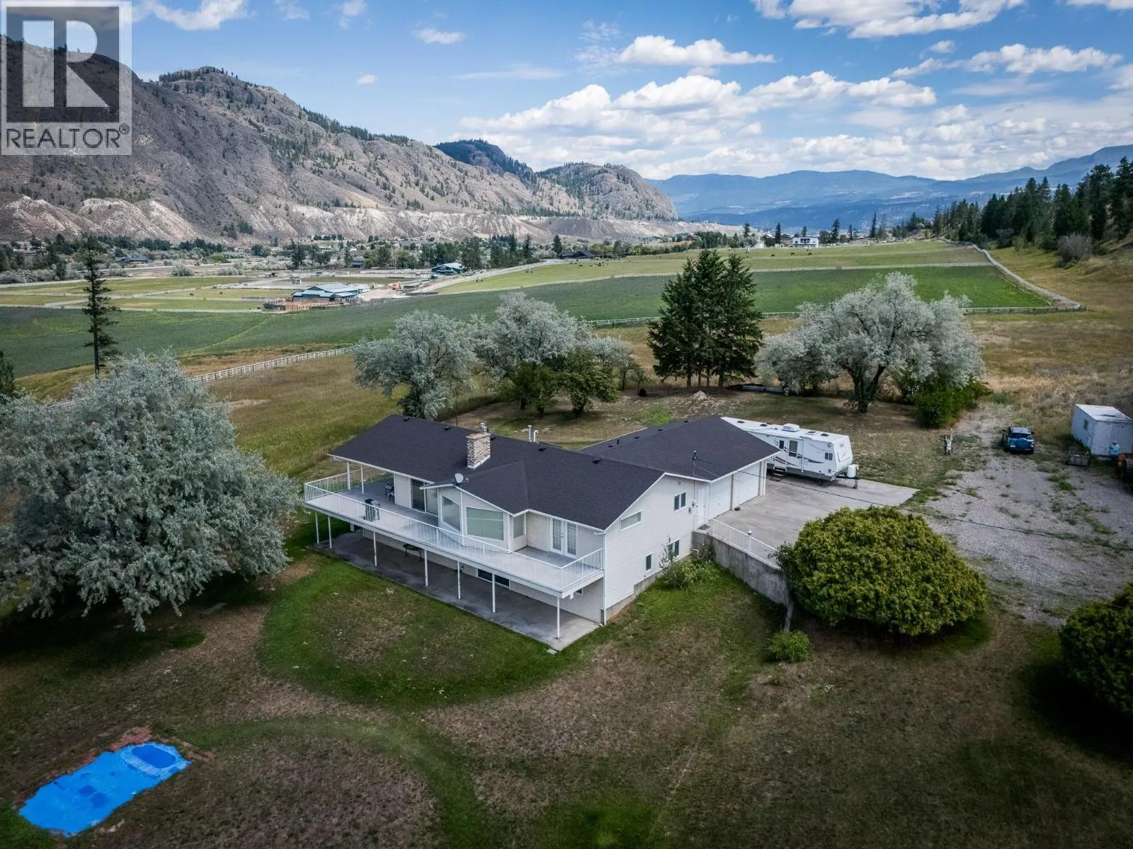 Incredible opportunity to own a 22.76 acre property just 20 mins from city center. Enjoy the stunning views of the South Thompson River Valley on this beautiful parcel zoned AF1 and all in the ALR. This 3,100sq.ft. home is ready for the new owners personal touches. It offers 5 bedrooms, 4 bathrooms and 2 fireplaces. The main floor boasts a great open concept kitchen/living space with primary & ensuite, a wraparound covered deck, and a daylight basement with a large rec room for your gym or games room plus an additional 4 more bedrooms. The basement could be suited as a mortgage helper or inlaw suite. Plenty of parking w/attached 2-car garage, and large concrete pad. This property also includes a 3066 sq.ft. heated/insulated shop (42x73) with secured 2-acre compound, oversize machine shed, and double-wide Atco trailer. This property has mostly flat, usable land with potential for horses, hay, or a riding arena. Well produces approx. 18 US gal/min. Excellent live/work setup or income-generating potential. (id:27476)