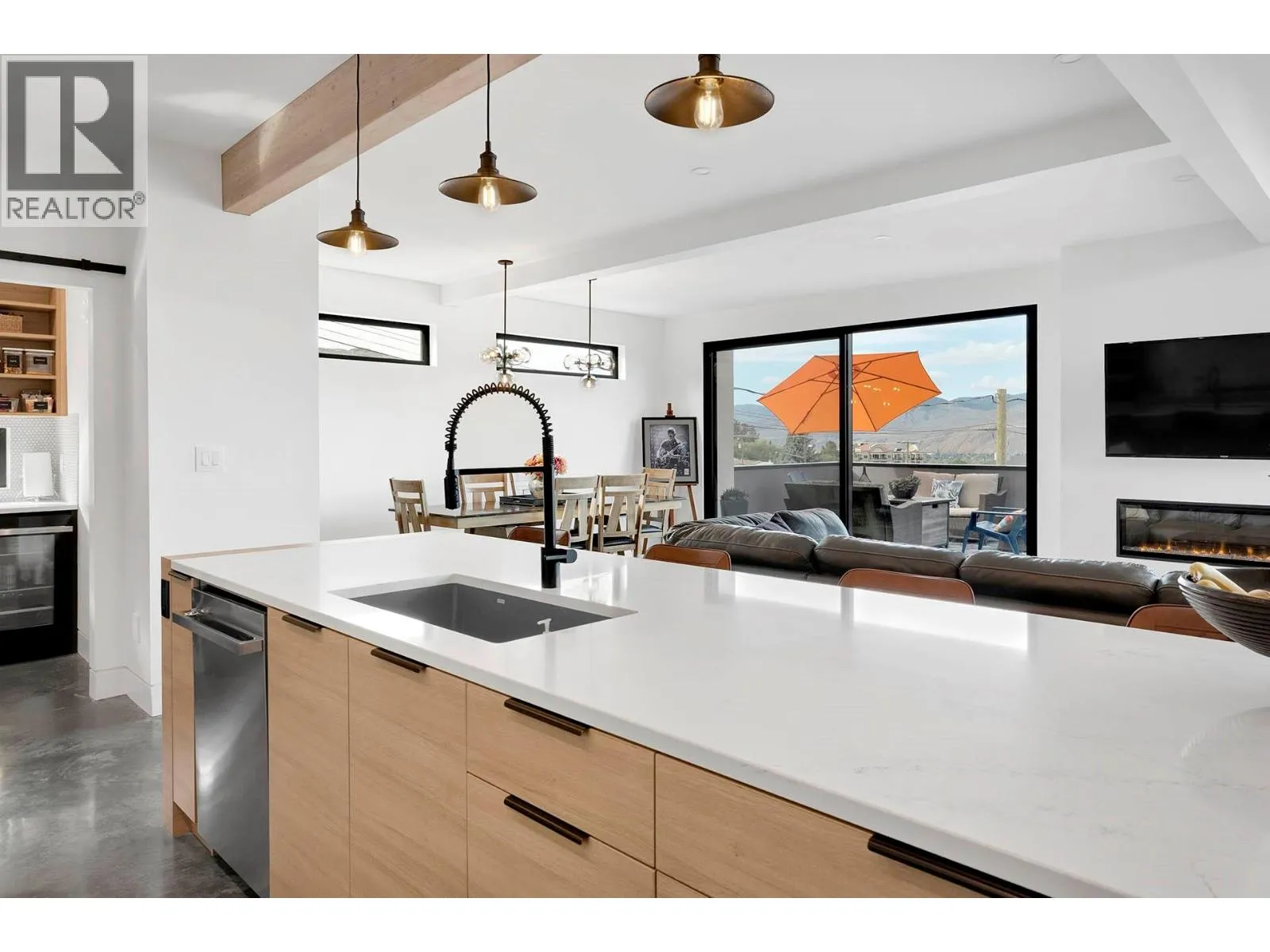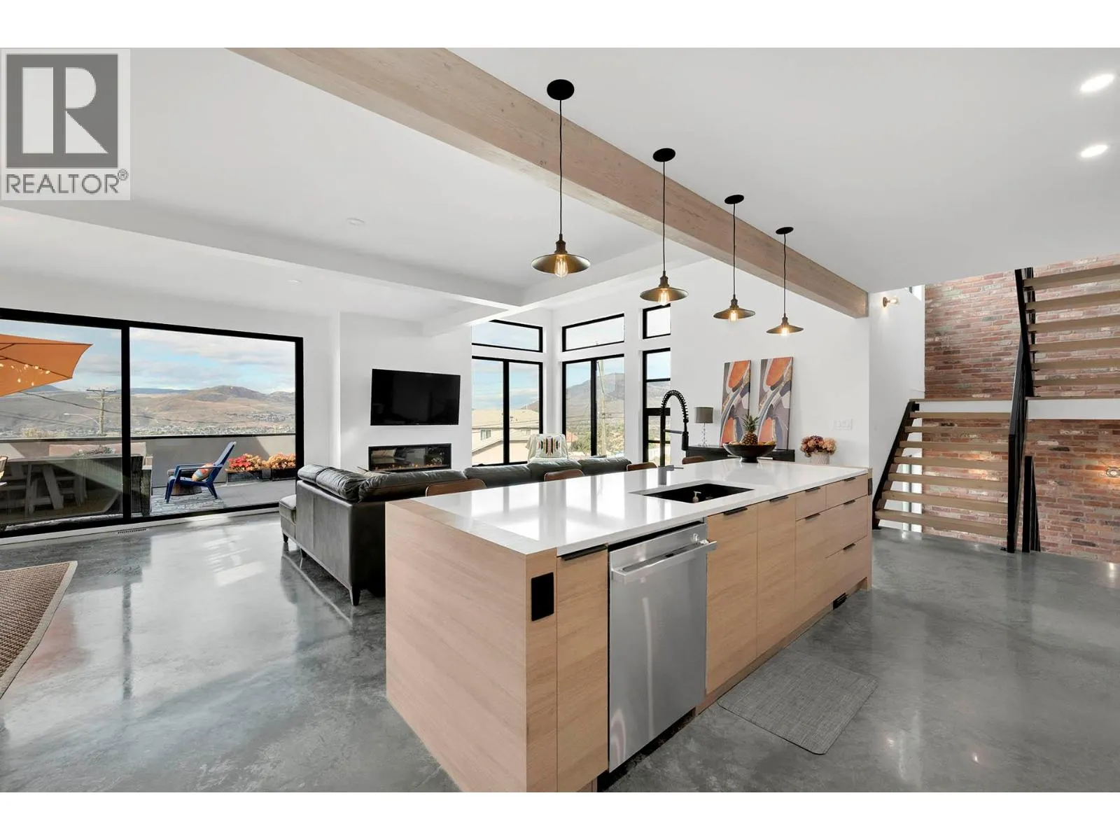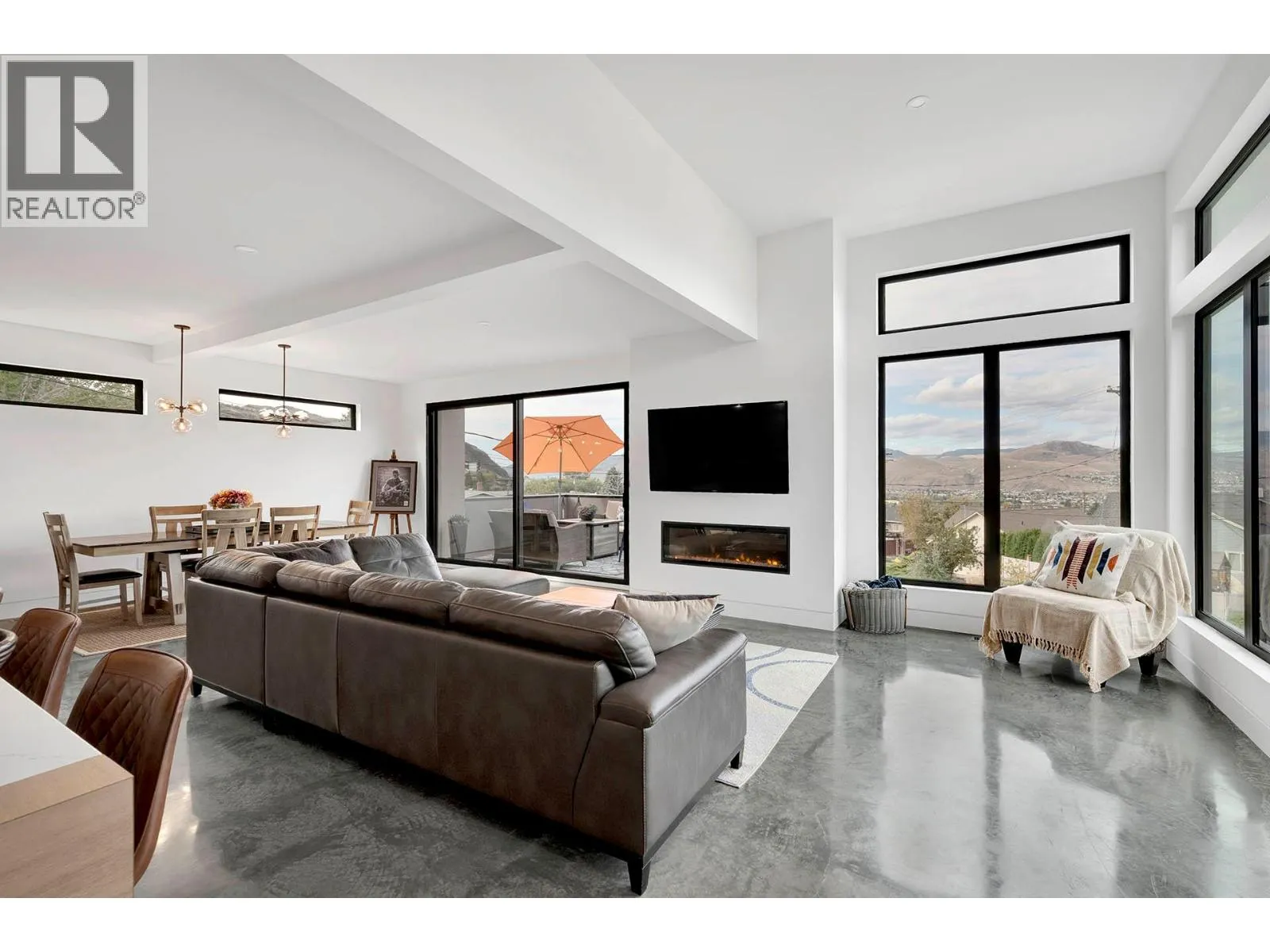Stunning custom-built executive Sahali home offering elevated living in a prime central Kamloops location, just minutes from Thompson Rivers University and Royal Inland Hospital. This modern residence captures breathtaking views of the North and South Thompson Rivers from multiple outdoor living spaces.The main level features a bright, open-concept design with a chef-style kitchen showcasing high-end appliances, flowing seamlessly into the living and dining areas. Polished concrete floors with in-floor radiant heating add both style and comfort. Also on the main floor are the primary bedroom with ensuite and walk-in closet, powder room, laundry, and a generous butlerâs pantry. Step onto the deck equipped with natural gas hookup for a BBQ. The upper level offers three spacious bedrooms, a full bathroom, and a large family or flex space opening to a second deck with hot tub and seating area. The lower level includes an additional bedroom ideal for an office or storage, radiant heat flooring, and a mechanical room with boiler, forced-air furnace, and air conditioning for year-round comfort. The lower level also has a daylight two-bedroom legal suite with in-suite laundry which is perfect for multi-generational living or provides excellent rental income. Additional features include a double garage and extra parking for suite occupants. Book your showing today to view this exceptional home, its a must see! (id:27476)
