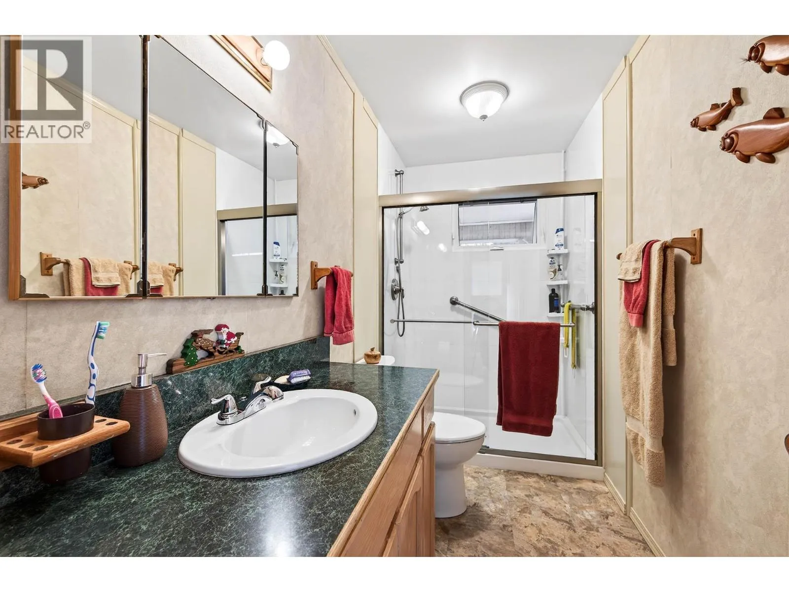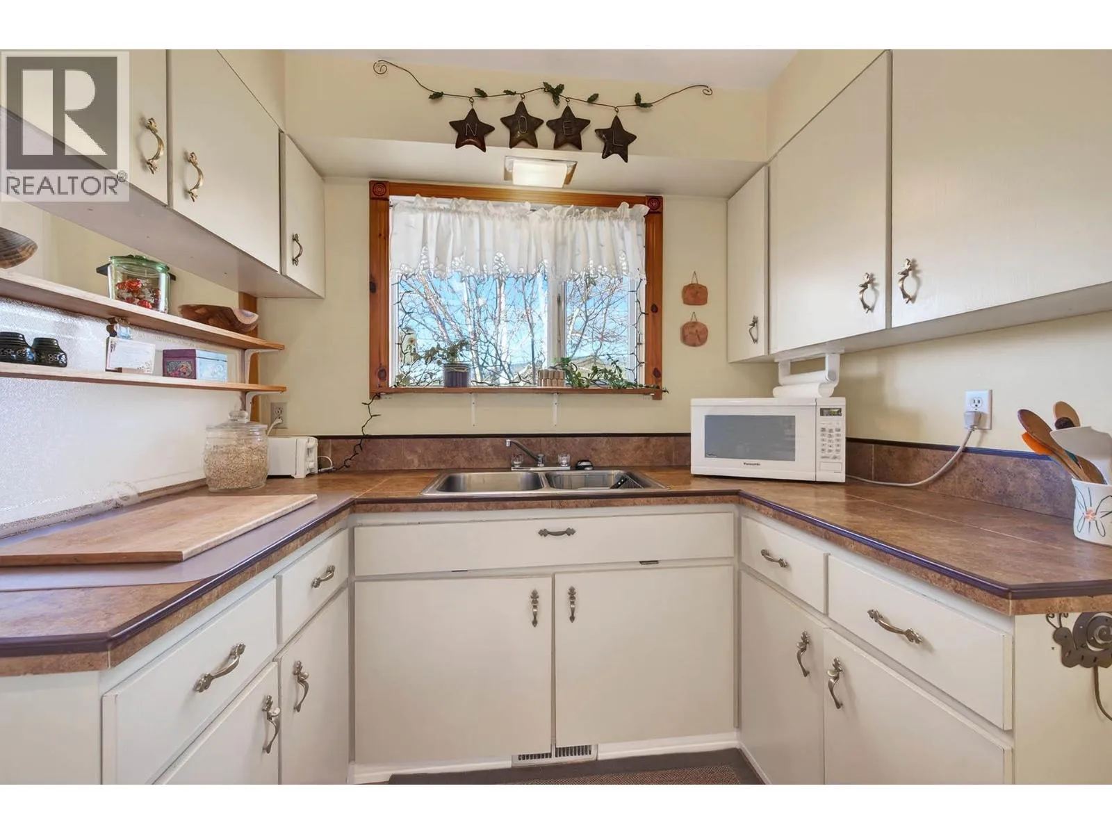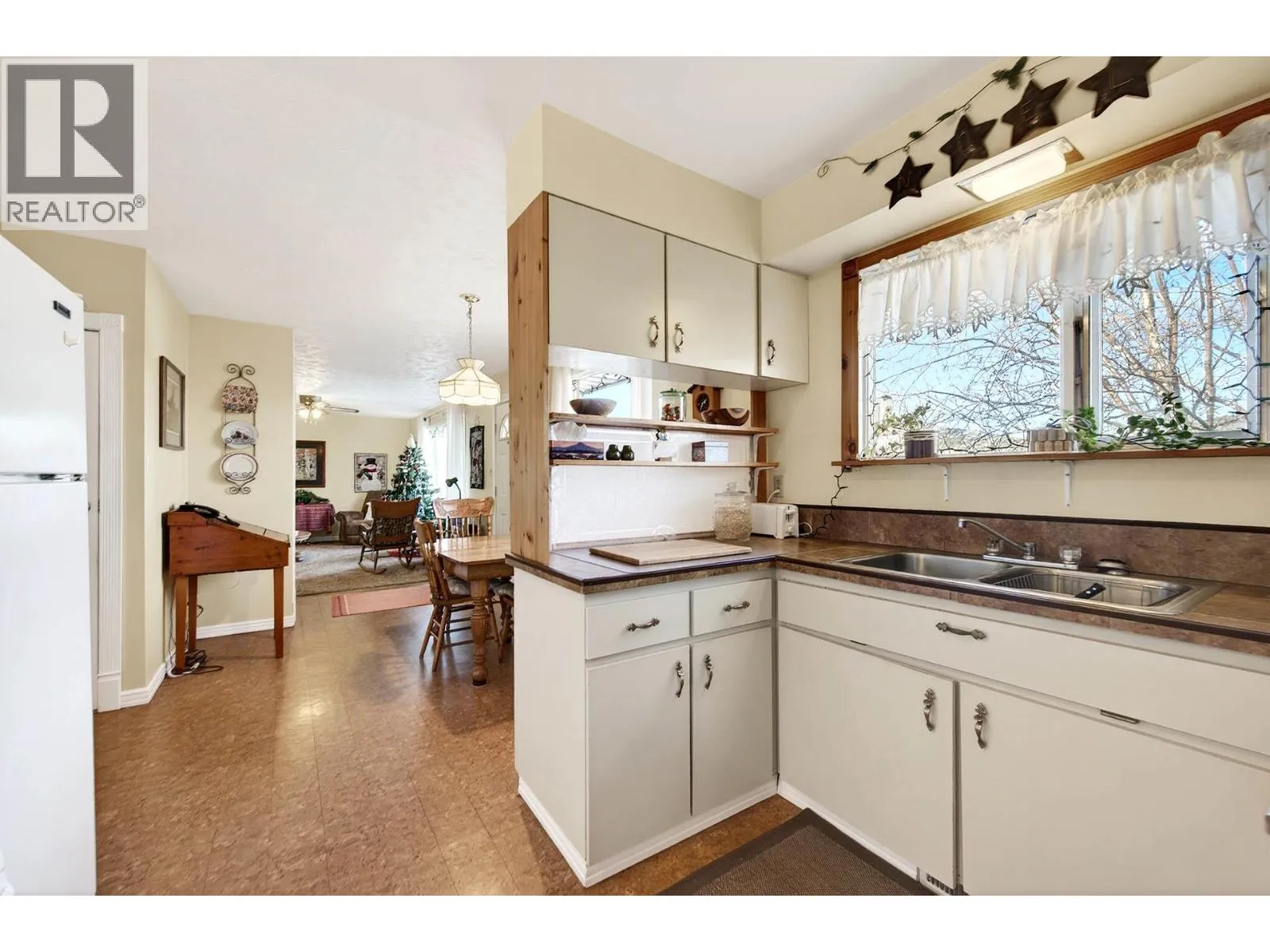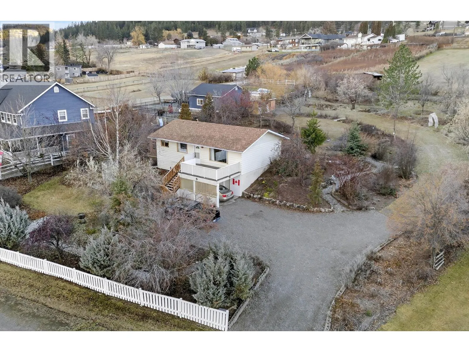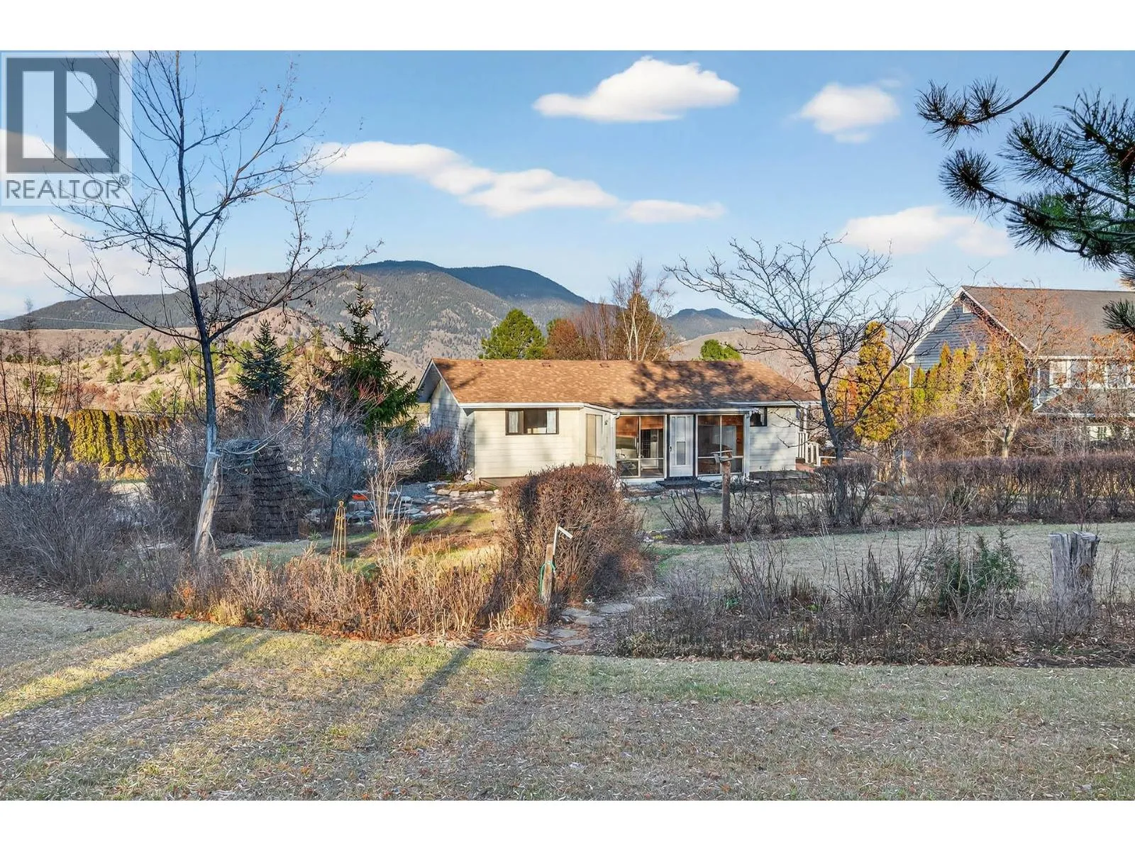 Barnhartvale home on 1.33 acres, beautifully landscaped with trails, plants, tress, arbours and a pond. Sunroom in back of house overlooking backyard with garden door into the house. 3 bedrooms up and bathroom up with oak vanity, boot room off kitchen all lovingly cared for. Basement is fully finished with a 3 piece bathroom and space for a media and rec room plus storage. Could be additional bedroom downstairs with minor reno. Updates to roof, furnace, eavestroughing and front deck and stairs and some flooring. Shed in back of property and alot of fencing done. Strong potential for subdivision as house is on one side of the property. (id:27476)