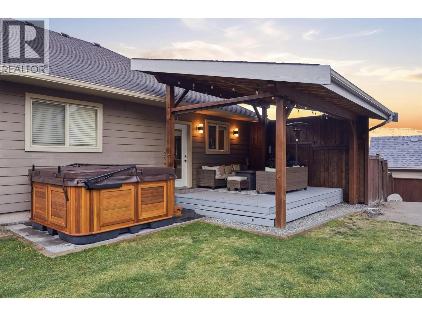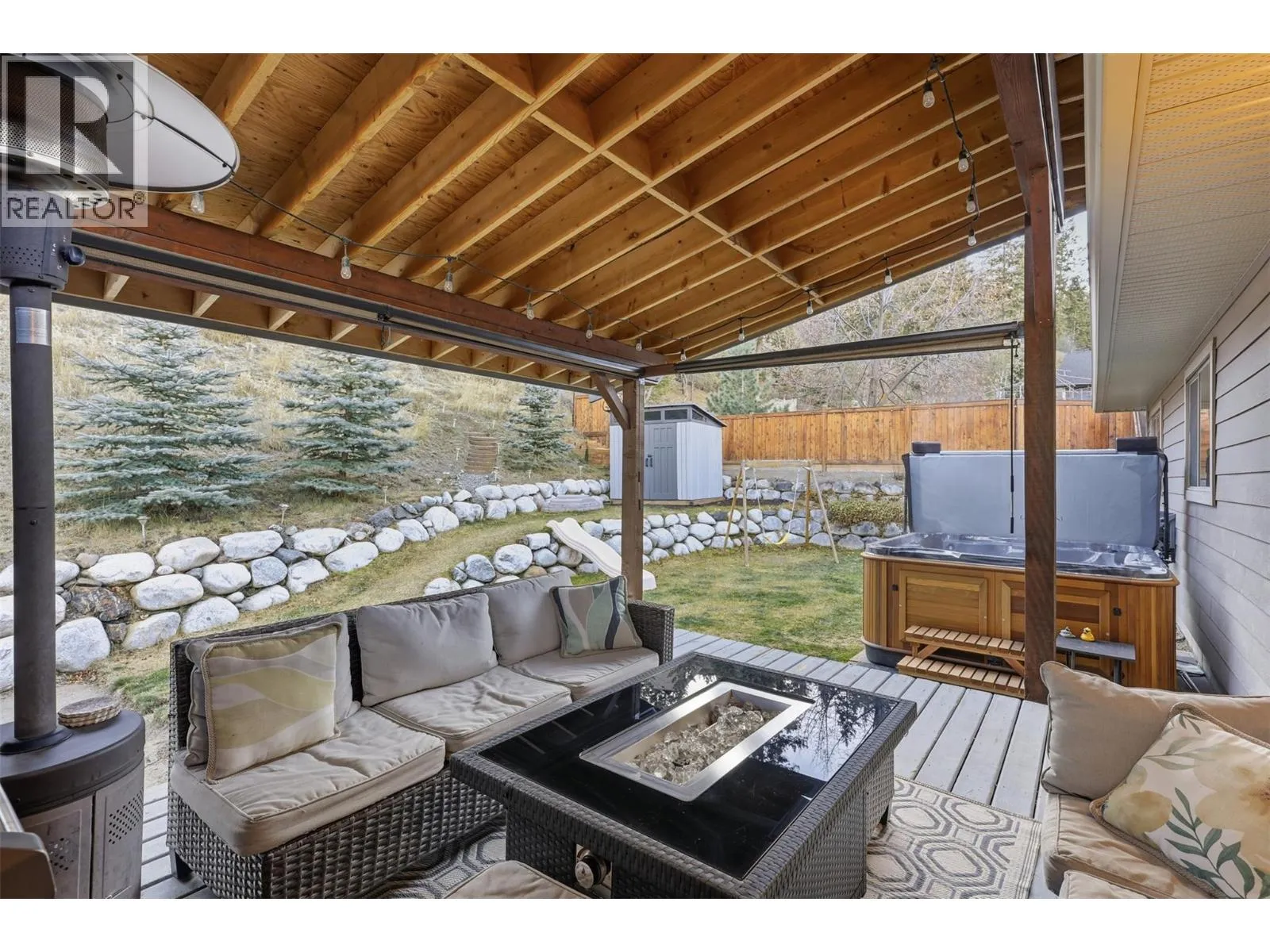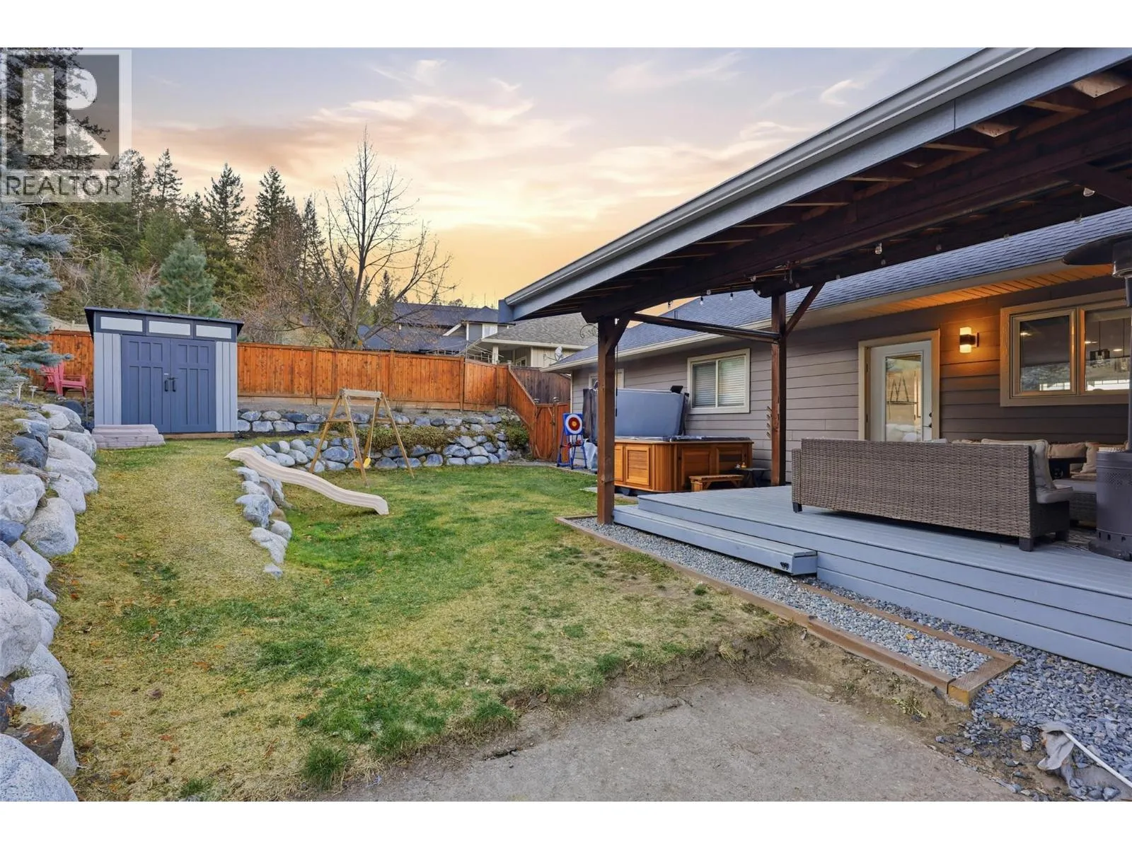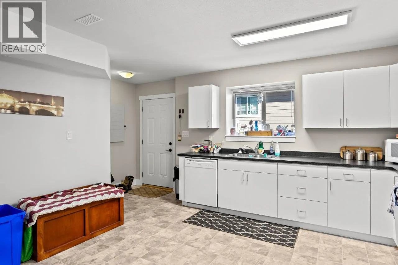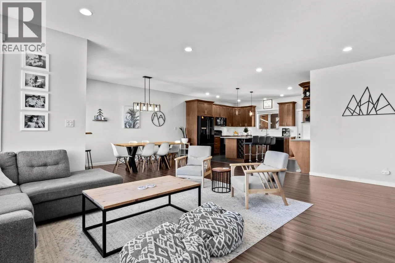 This exceptional home offers everything on your wish list â striking curb appeal, a private and usable yard with beautiful views, 200-amp service, RV parking, oversized garage, HE furnace, on-demand hot water, income suite and more. Step inside to an airy open-concept main living area filled with natural light, anchored by a true chefâs kitchen featuring warm shaker cabinetry, light countertops, tile backsplash, dual sinks and recently updated appliances with plenty of space for family and entertaining. Outside, your personal retreat awaits with a spacious tiered yard, covered patio, shed, a new 16â x 8â pool pad, and 220V power ready for a hot tub. The main home offers 3 bedrooms, den, plus a sun/playroom, providing ample room for a growing family. The primary suite impresses with a large ensuite complete with double vanity, tiled shower, walk-in closet and private access to the enclosed porch â perfect for quiet mornings or sunset views. Opportunities continue with the one-bedroom suite, featuring separate laundry, sound-bar insulation, and its own sub-panel, currently occupied by a wonderful tenant. (id:27476)